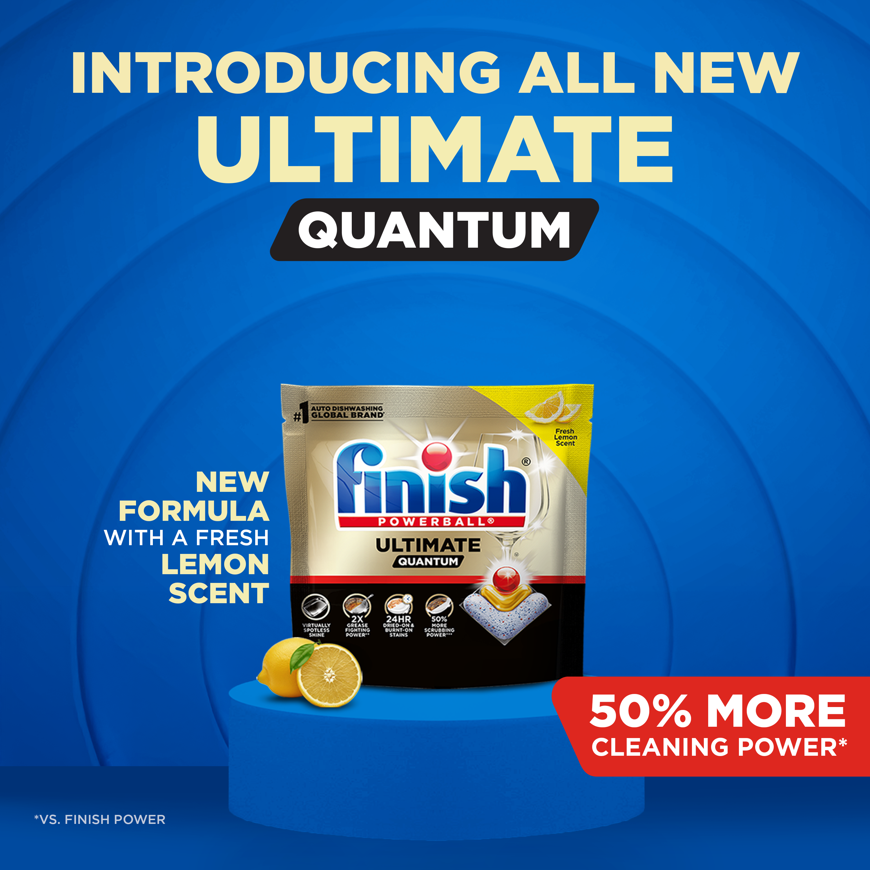 - IMPROVED FORMULA: Finish Ultimate Quantum dishwasher pods deliver 50% MORE CLEANING POWER* with an upgraded formula designed to remove stubborn stains and deliver our best clean yet.