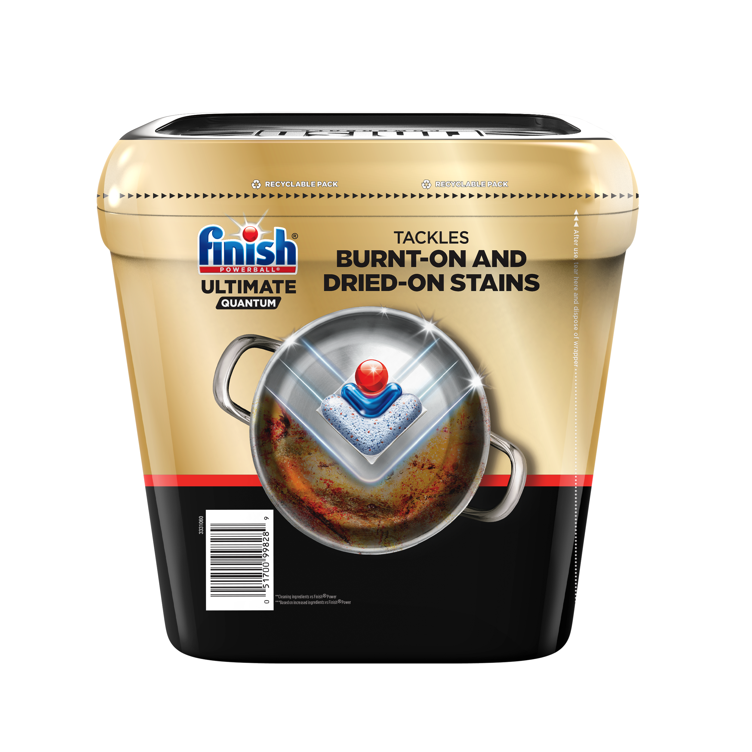 - OUR MOST POWERFUL CLEAN: Finish Ultimate Quantum delivers superior cleaning performance* with 24HR dried-on and burnt-on stain removal, 50% more scrubbing power**, 2X grease-fighting power***, and virtually spotless shine for your toughest loads.