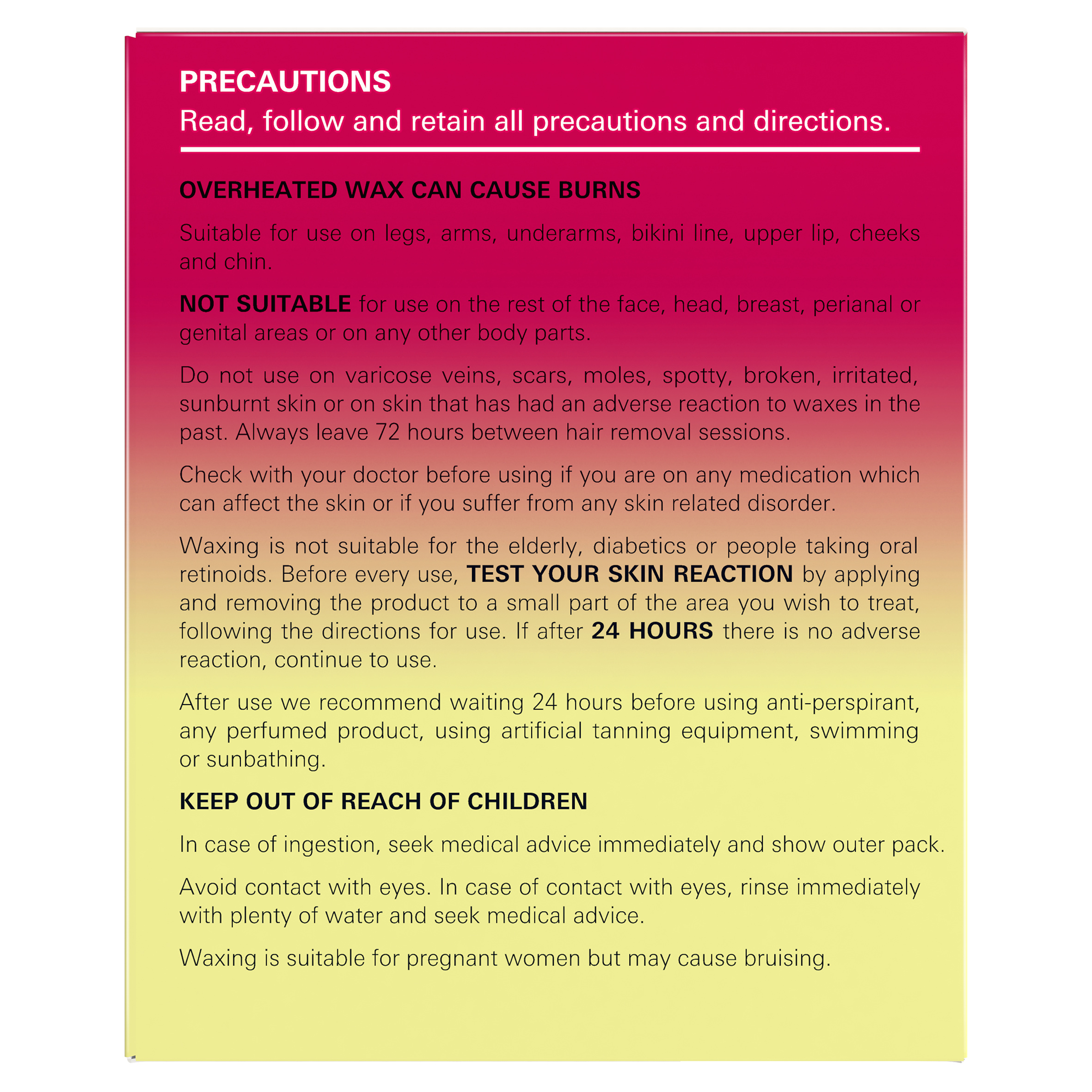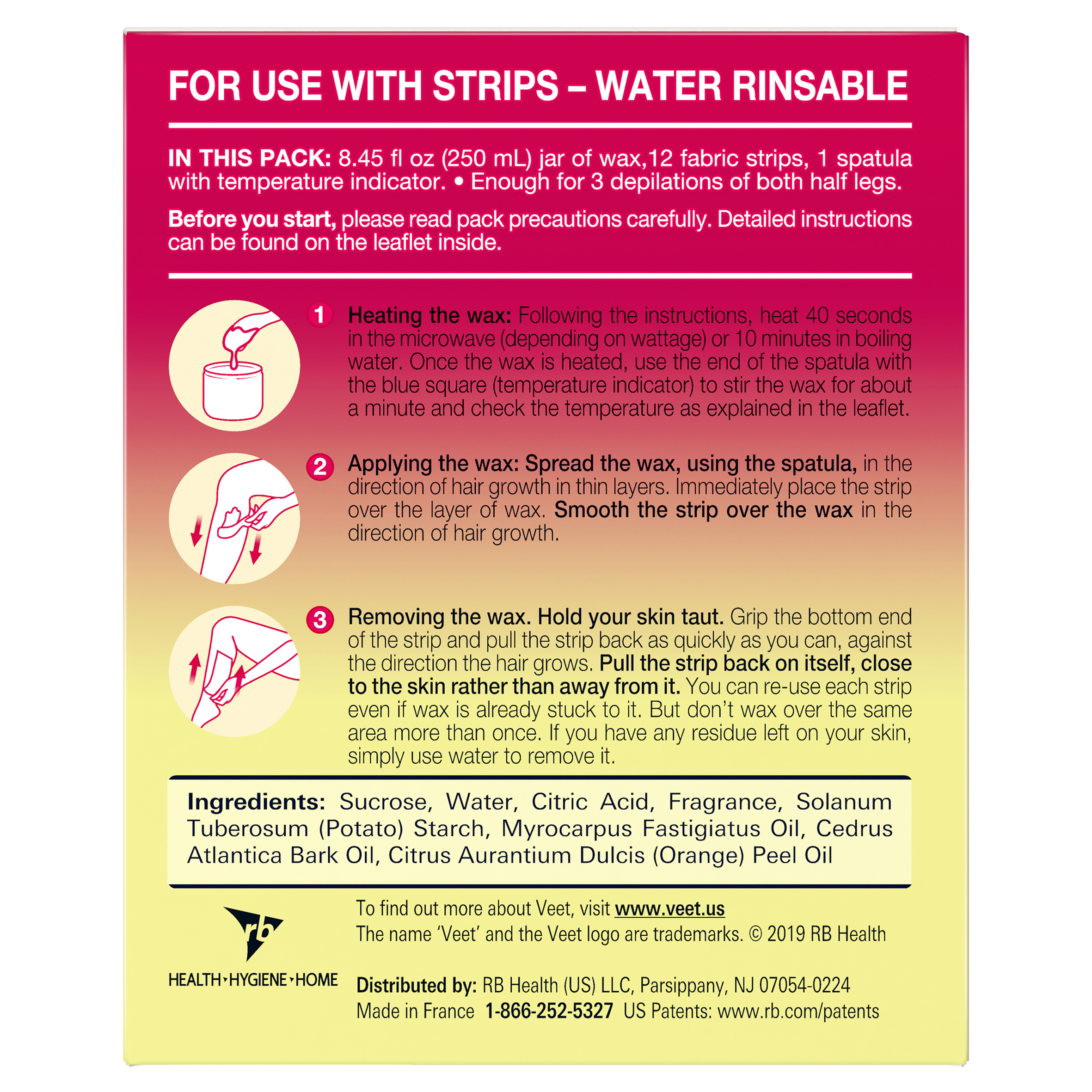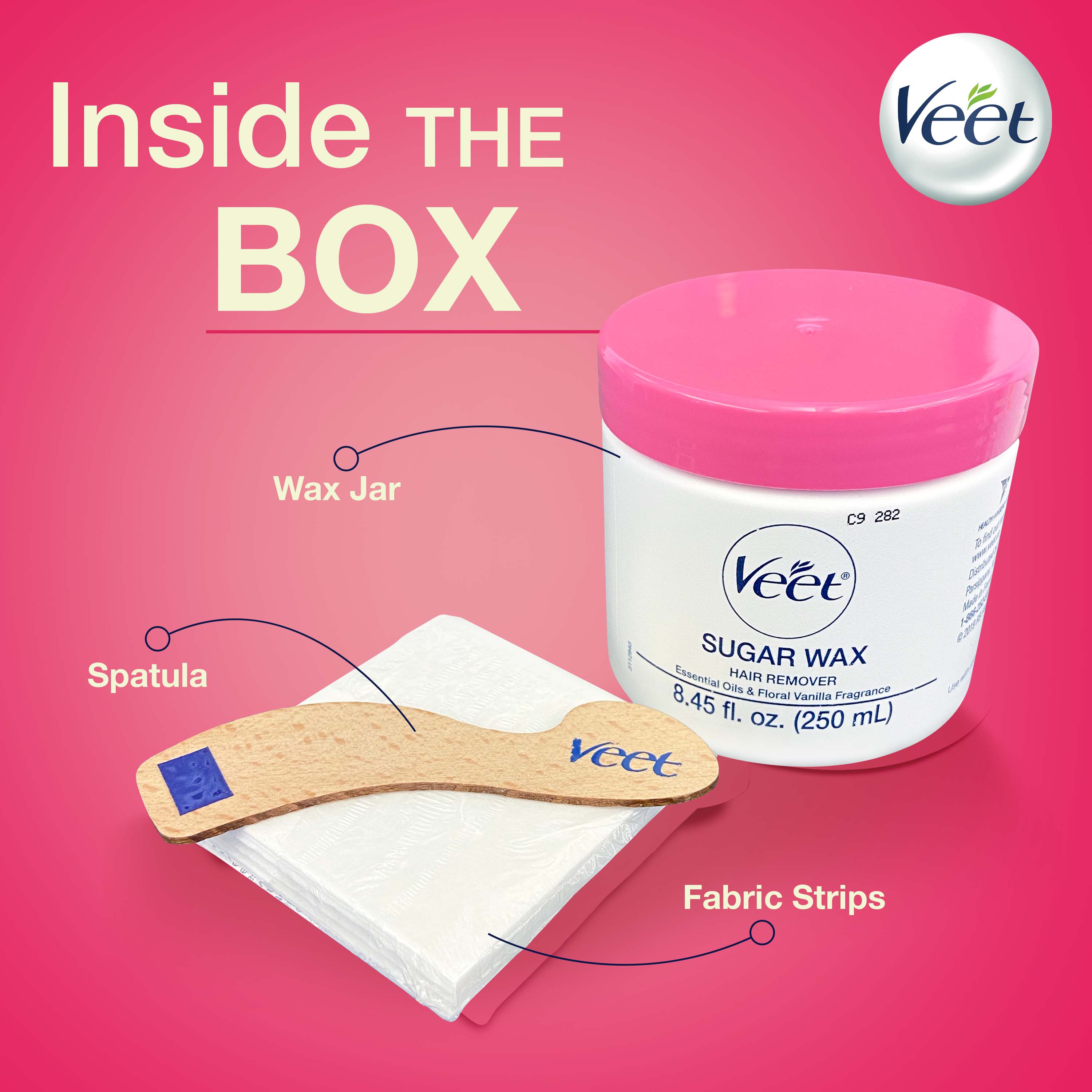 - [TEMPERATURE INDICATOR]: Veet Sugar Wax can be microwaved or heated in boiling water prior to using. Includes spatula with temperature indicator to apply the wax and remove hair