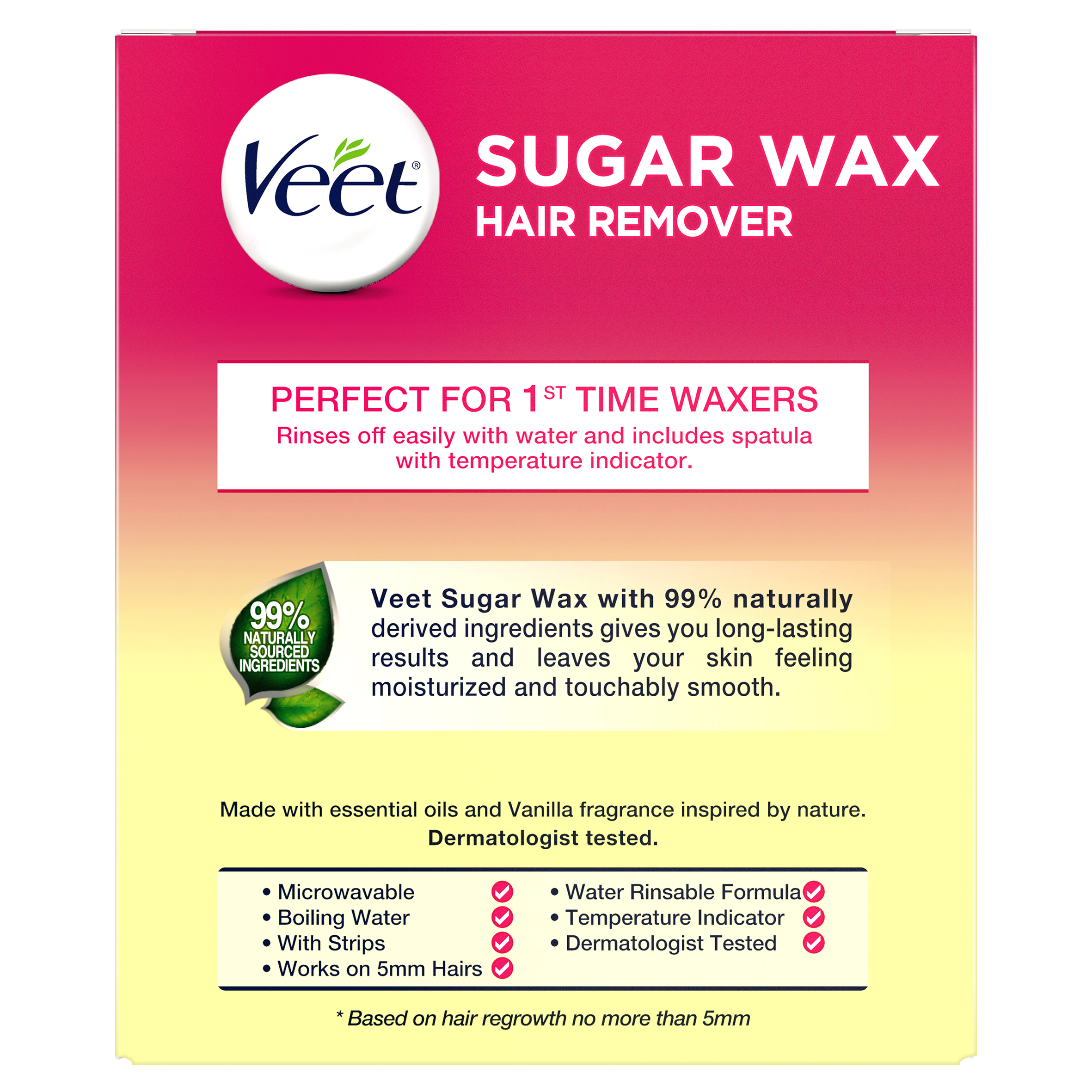 - [PERFECT FOR 1st TIME WAXERS]: Veet sugar wax is perfect for 1st time waxers and effectively removes hair, which is at least 5mm