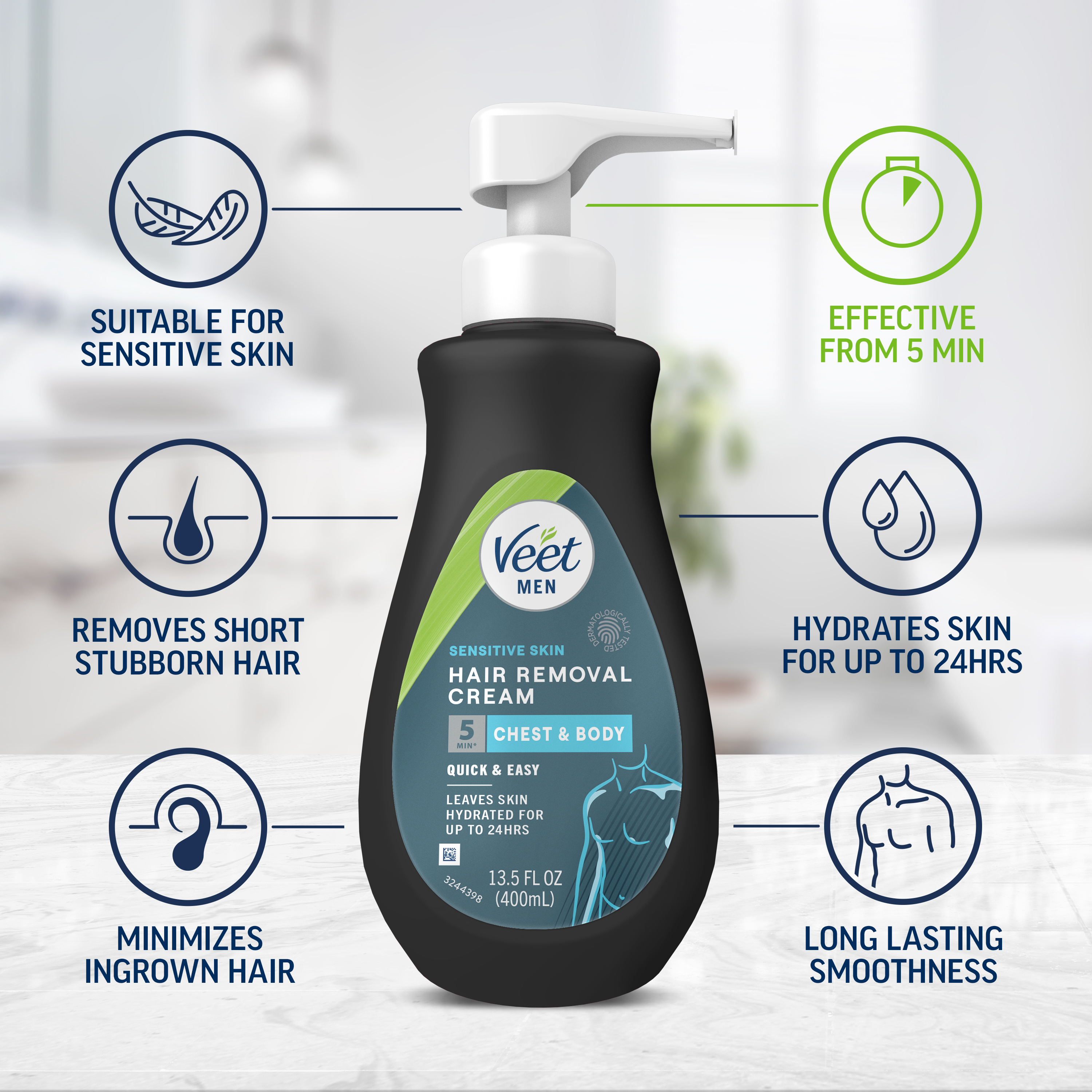 - LONG-LASTING RESULTS: Quick and easy application is only half the story. Veet Men's depilatory cream keeps your skin smooth and hydrated for up to 24 hours so your skin can stay smooth and hair free for days.