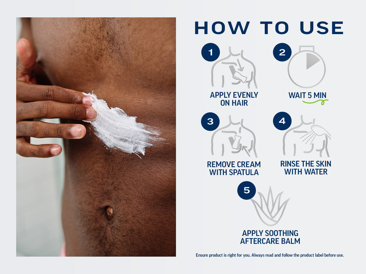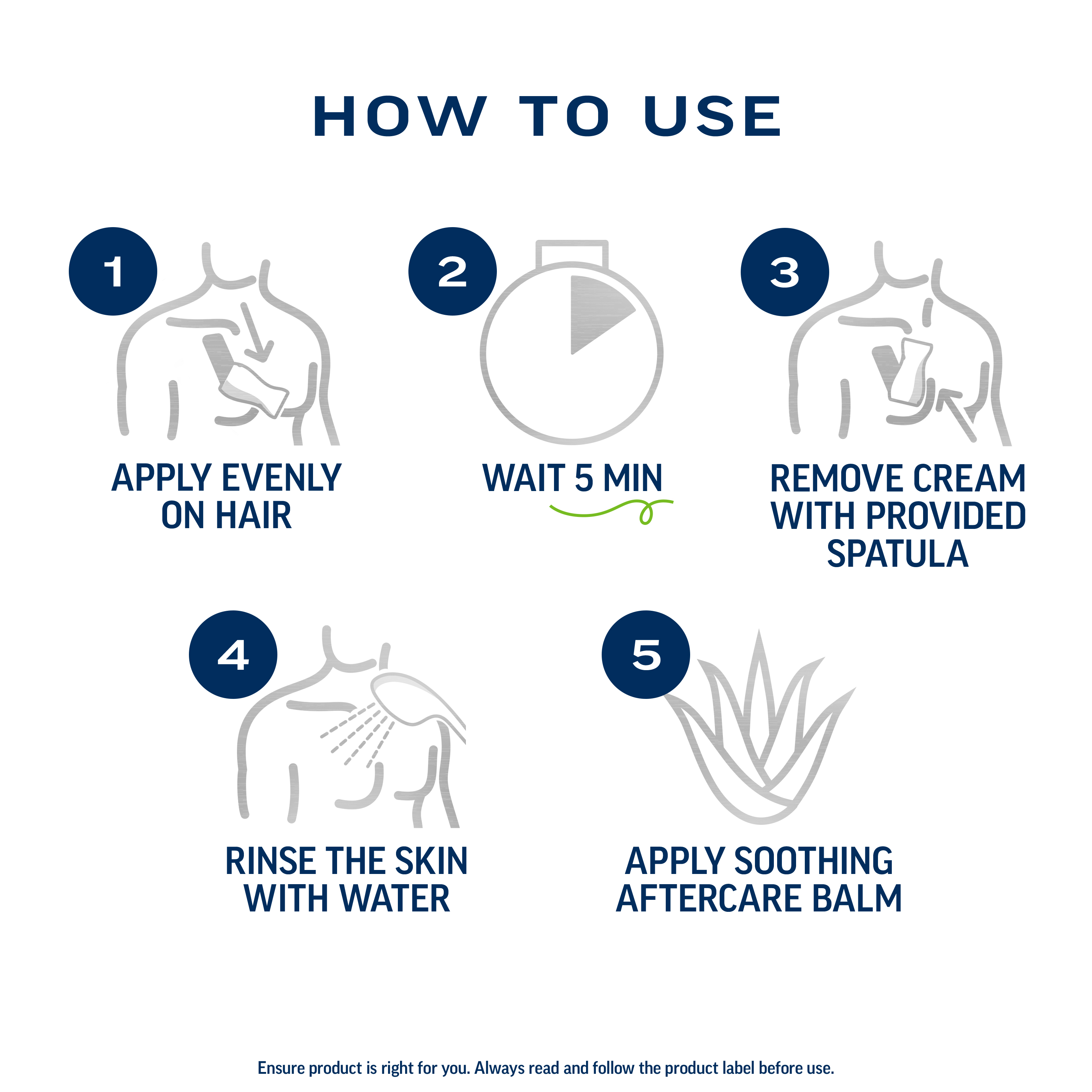 - QUICK AND EASY HAIR REMOVAL FOR MEN: Veet's hair remover cream is easy to apply, starts working in as little as 5 minutes, and is easy to remove with our included hair removal spatula