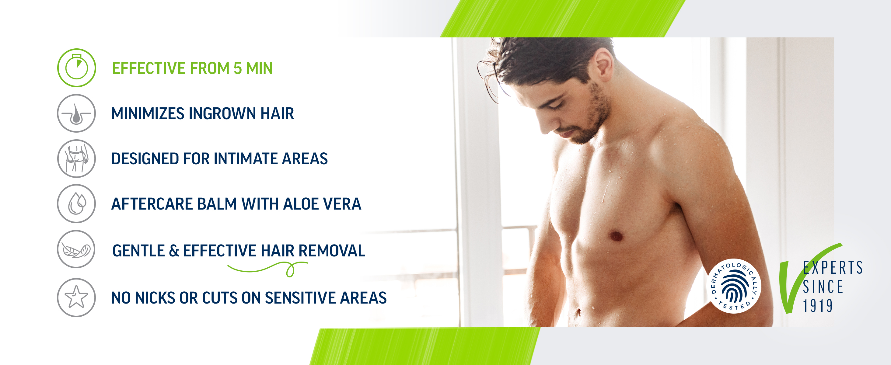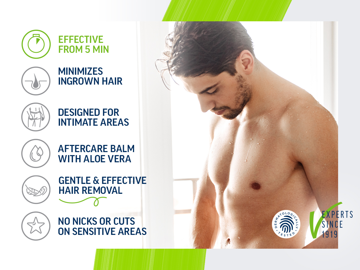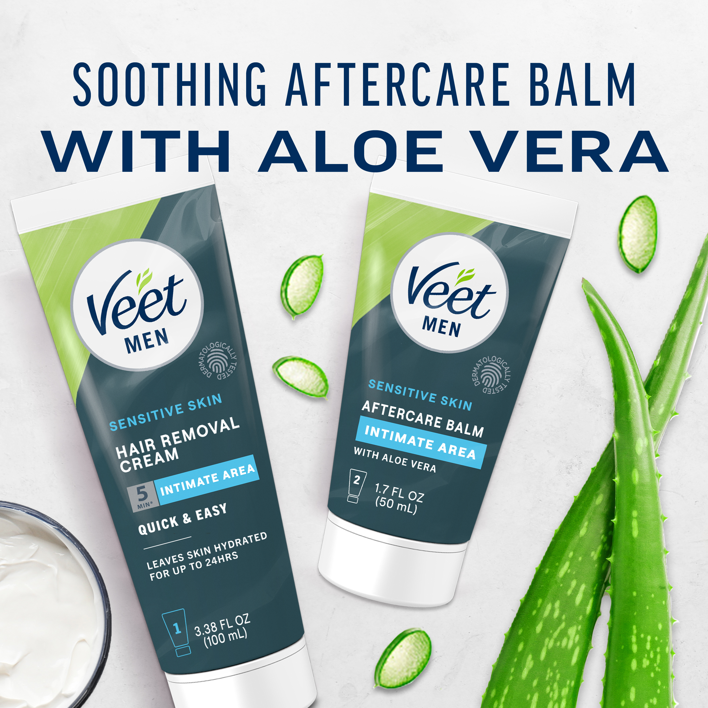- MEN'S SENSITIVE SKIN FORMULA: Veet's intimate area hair removal cream & aftercare balm are dermatologically-tested and formulated for sensitive skin
