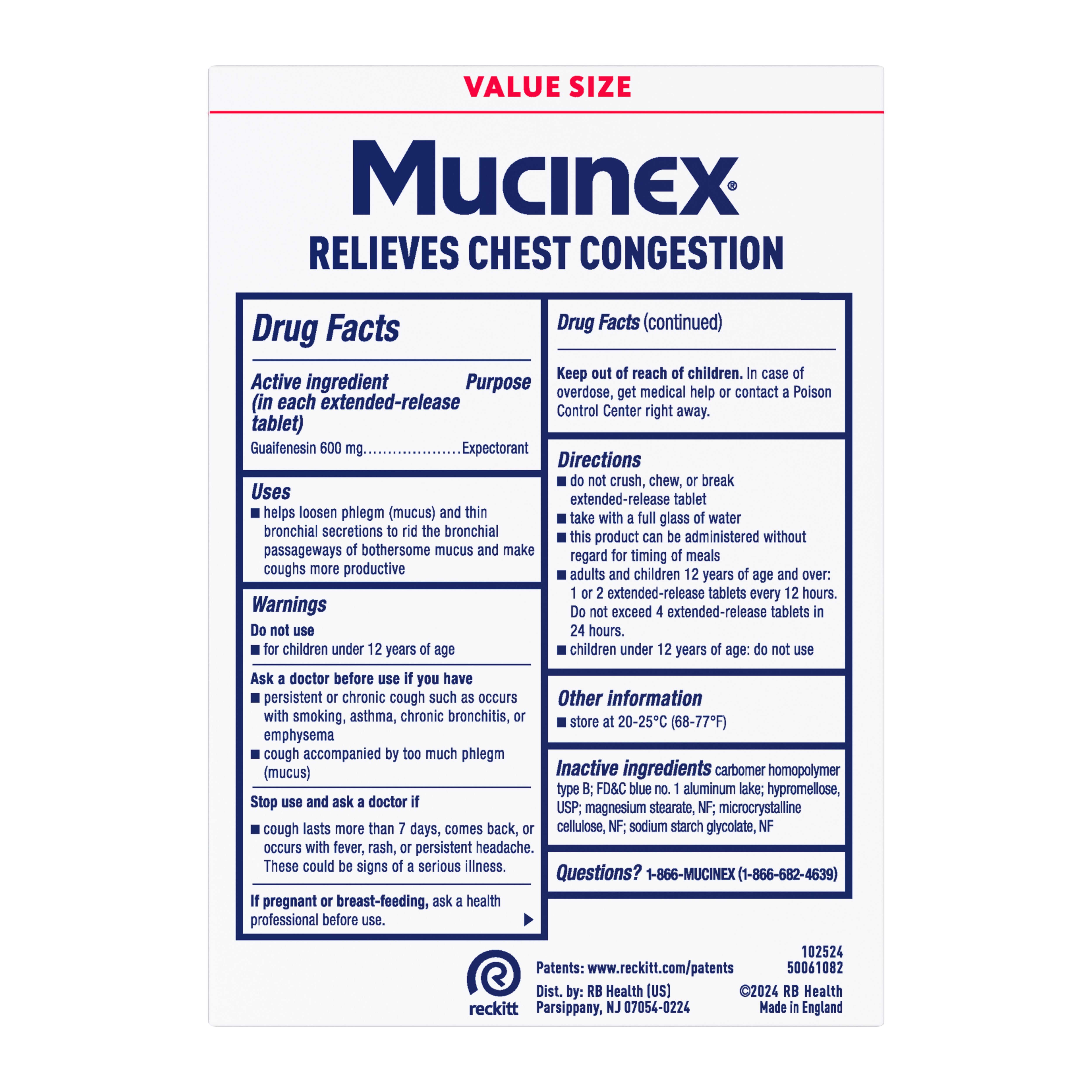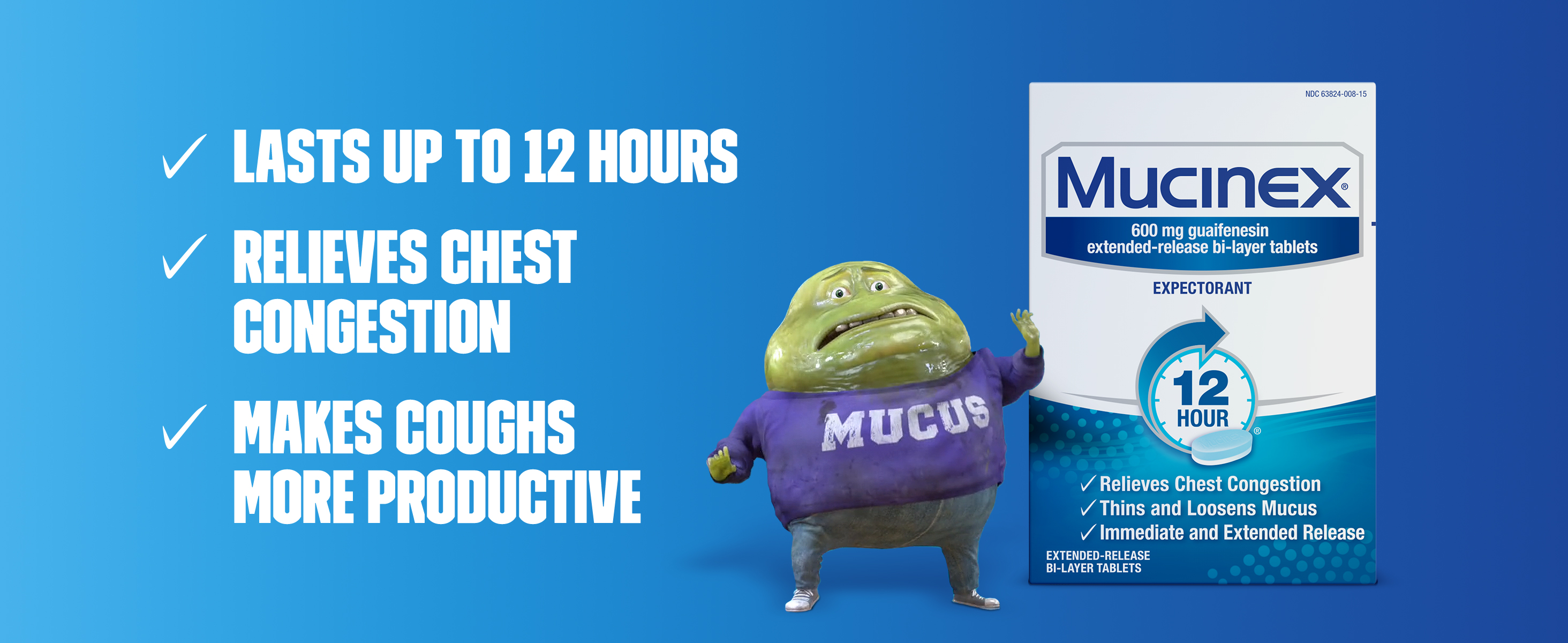 - EXCESS MUCUS RELIEF: Mucinex 12hr extended-release tablets pack a powerful punch with 600 mg guaifenesin expectorant, providing you with long-lasting chest congestion relief