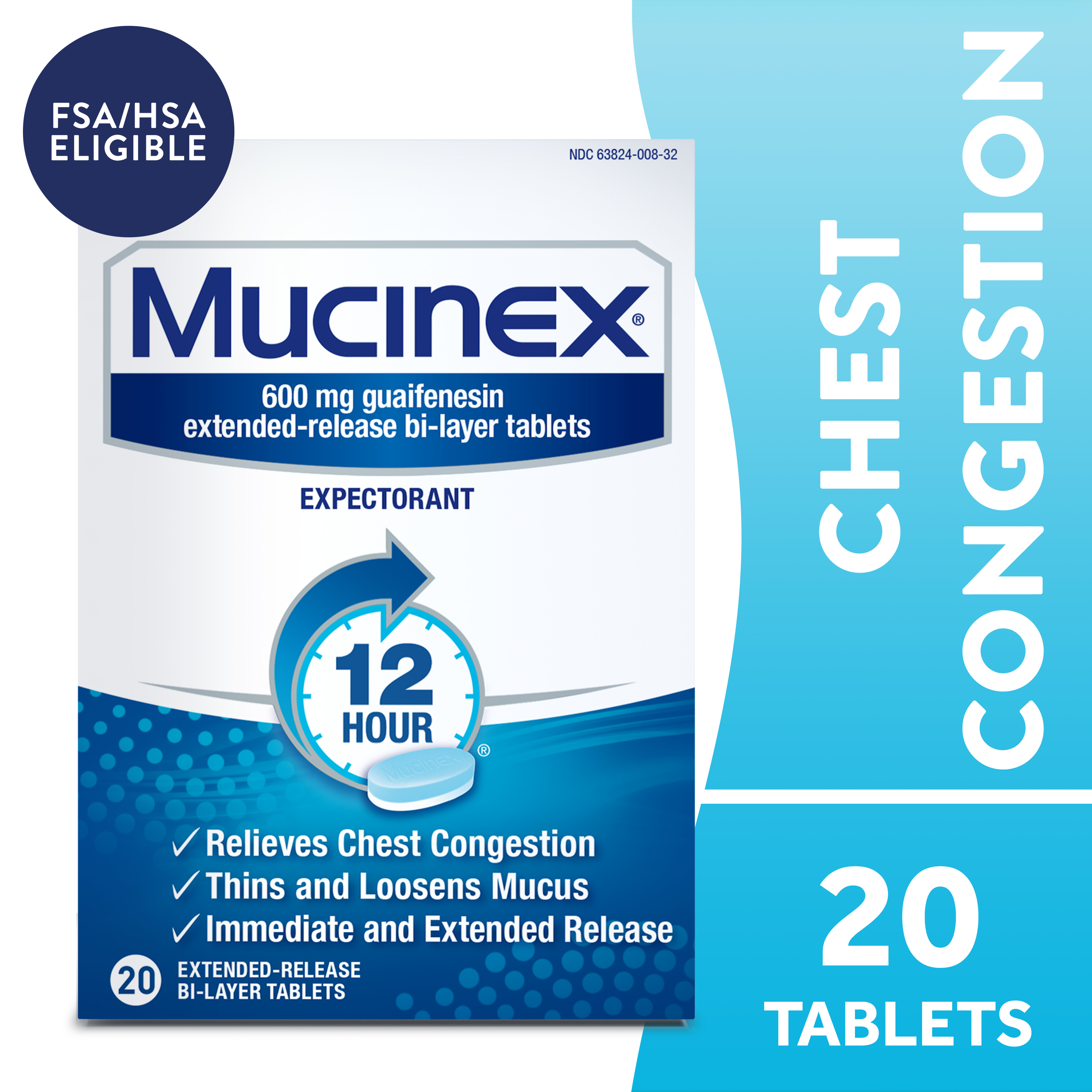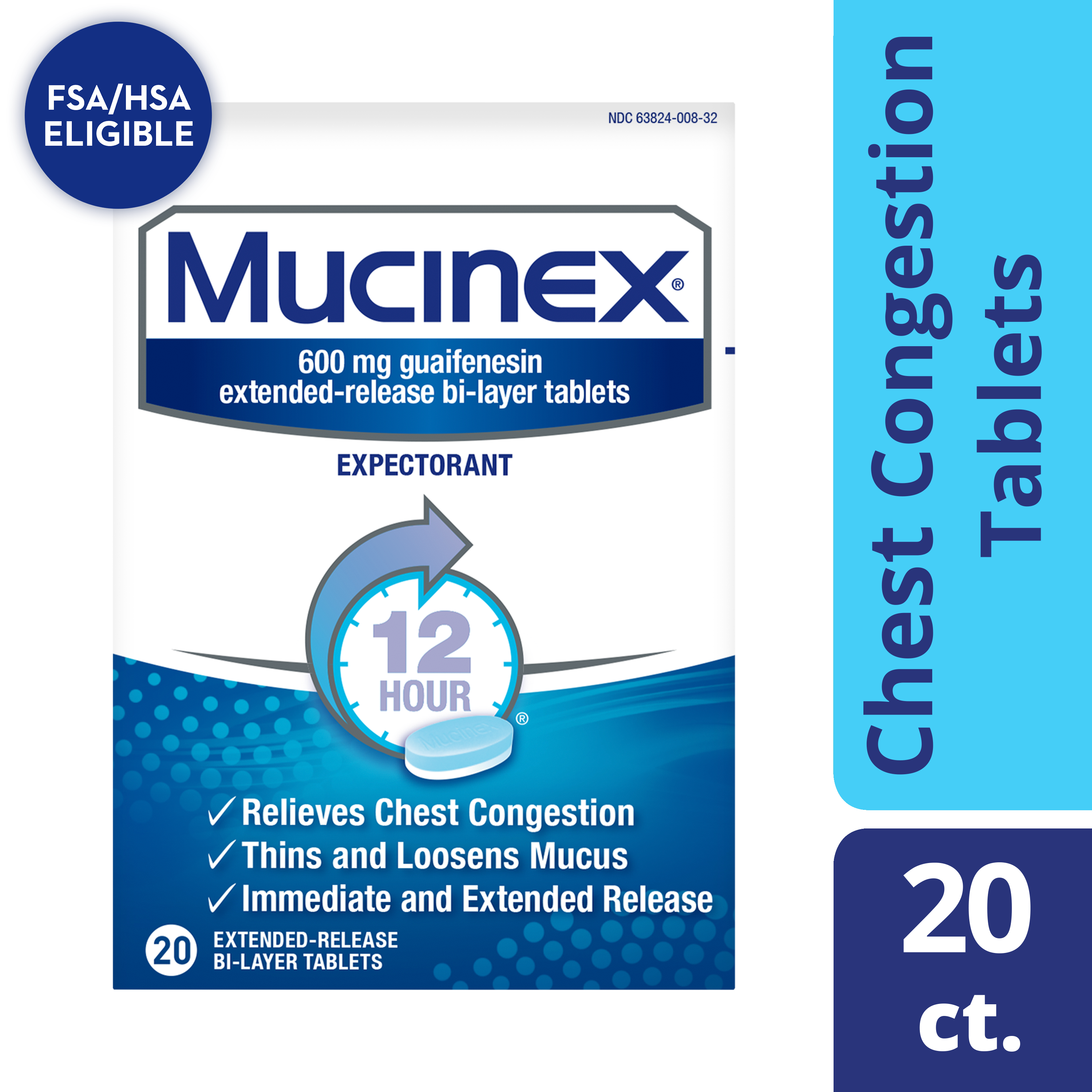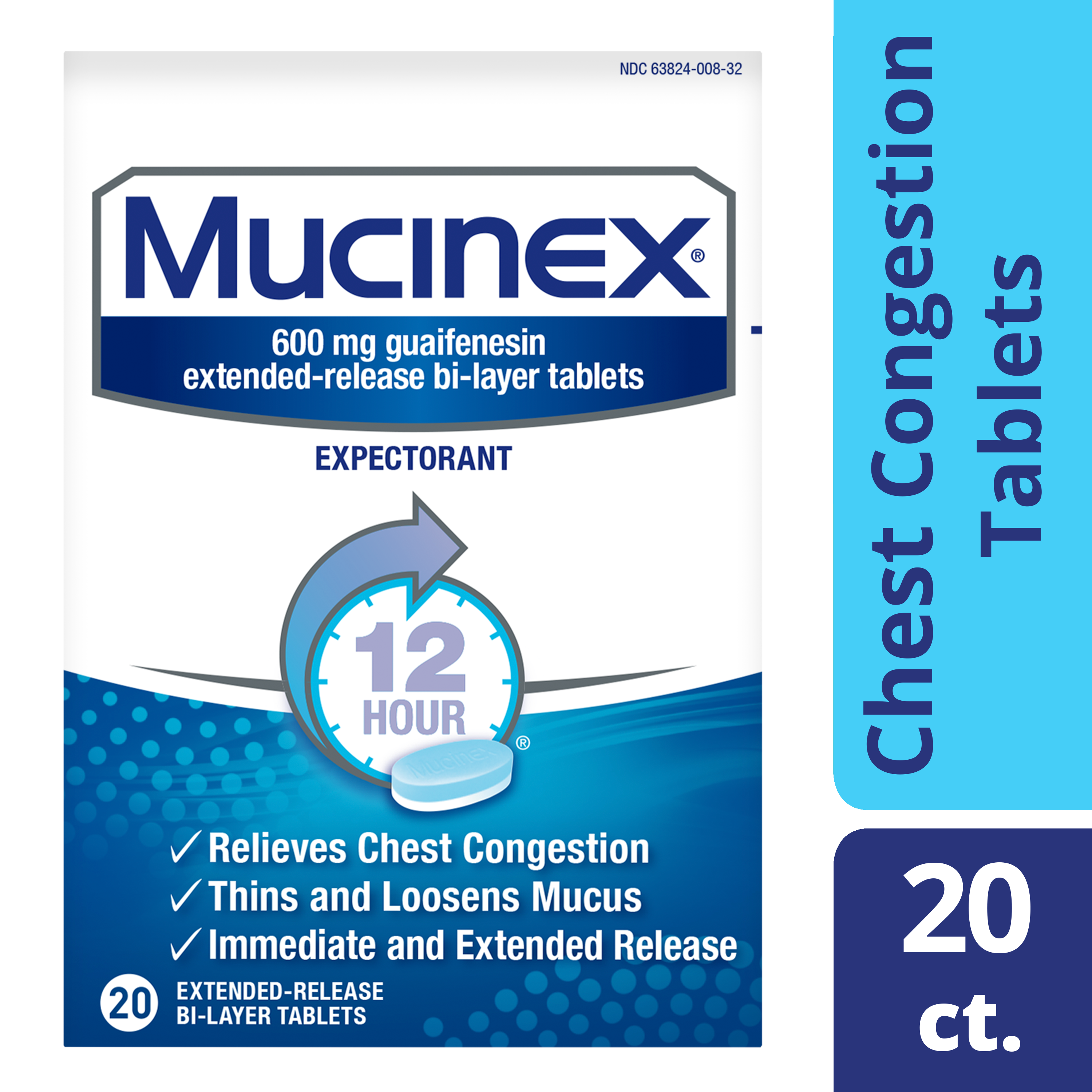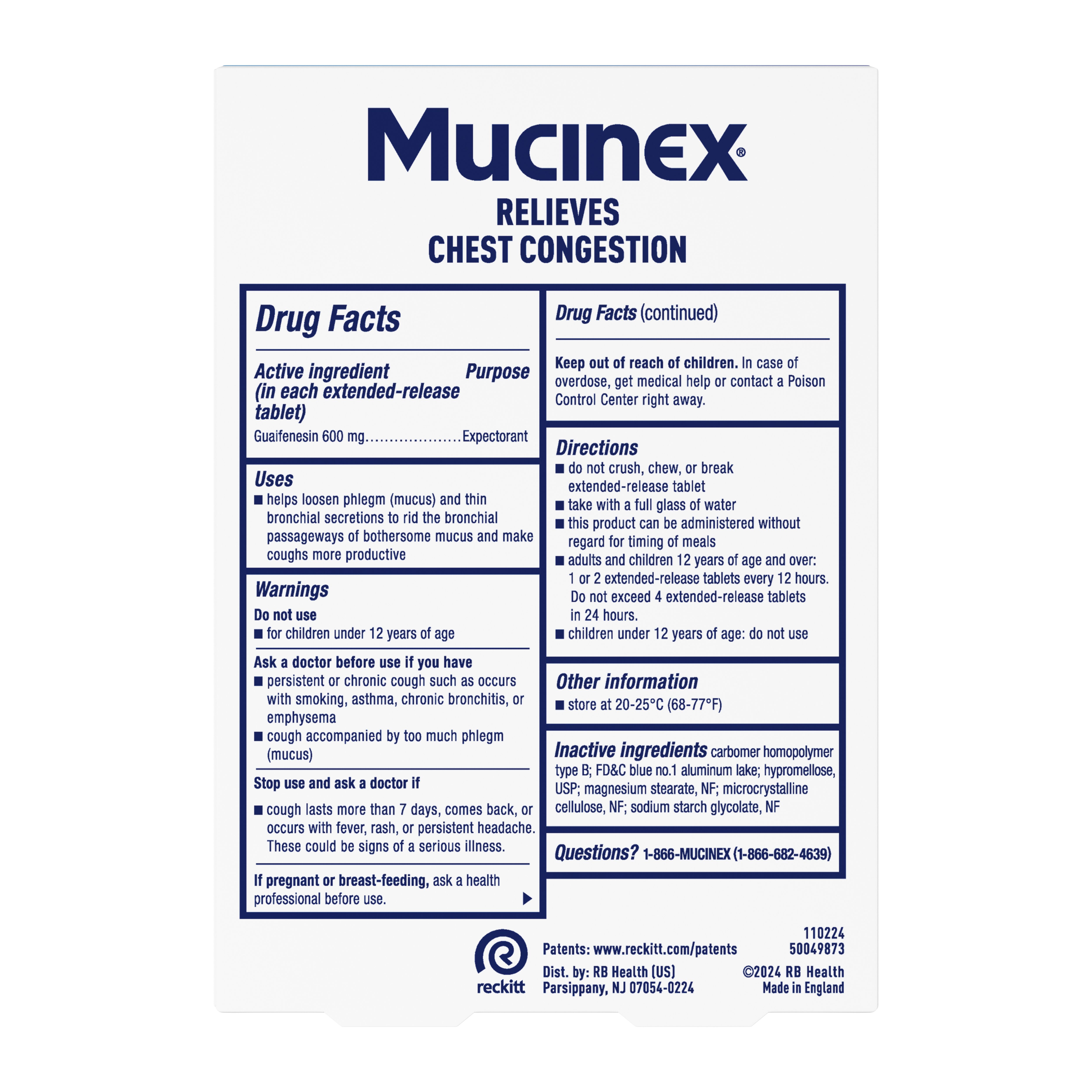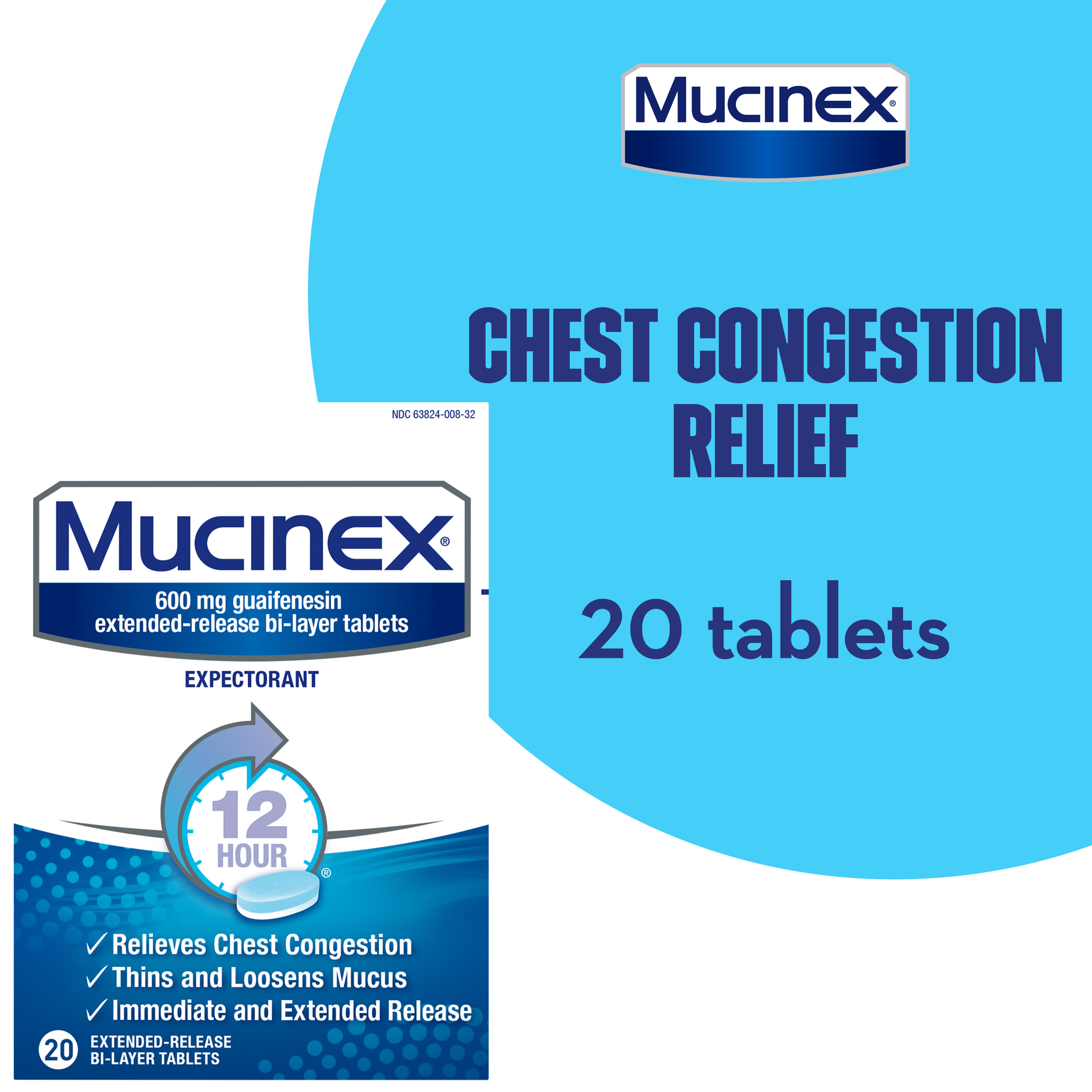 - EXCESS MUCUS RELIEF: Mucinex 12hr extended-release tablets pack a powerful punch with 600 mg guaifenesin expectorant, providing you with long-lasting chest congestion relief