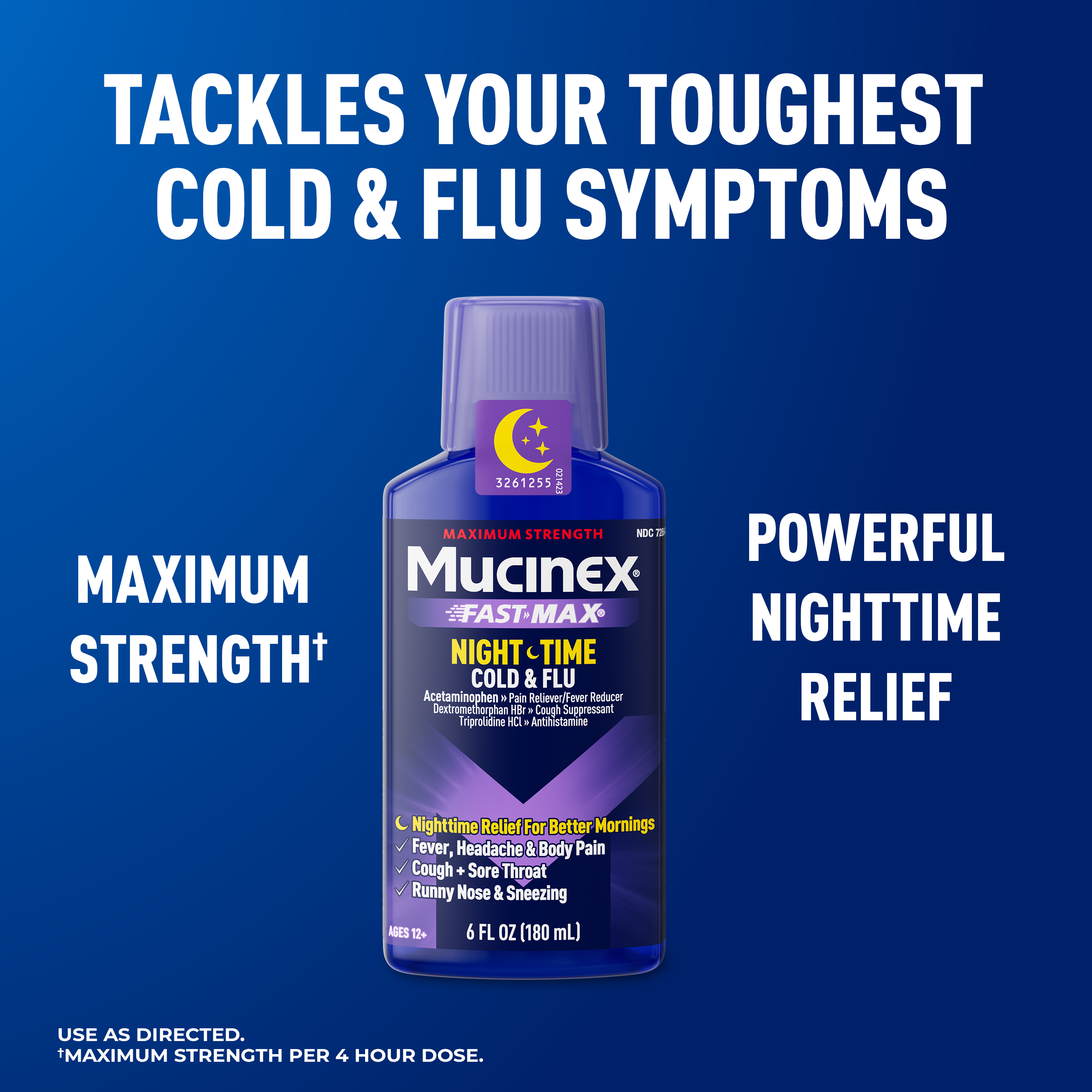 - COLD & FLU RELIEF: Mucinex Nightshift Cold & Flu helps reduce fever, relieve pain, headache, cough, runny nose, sneezing and sore throat