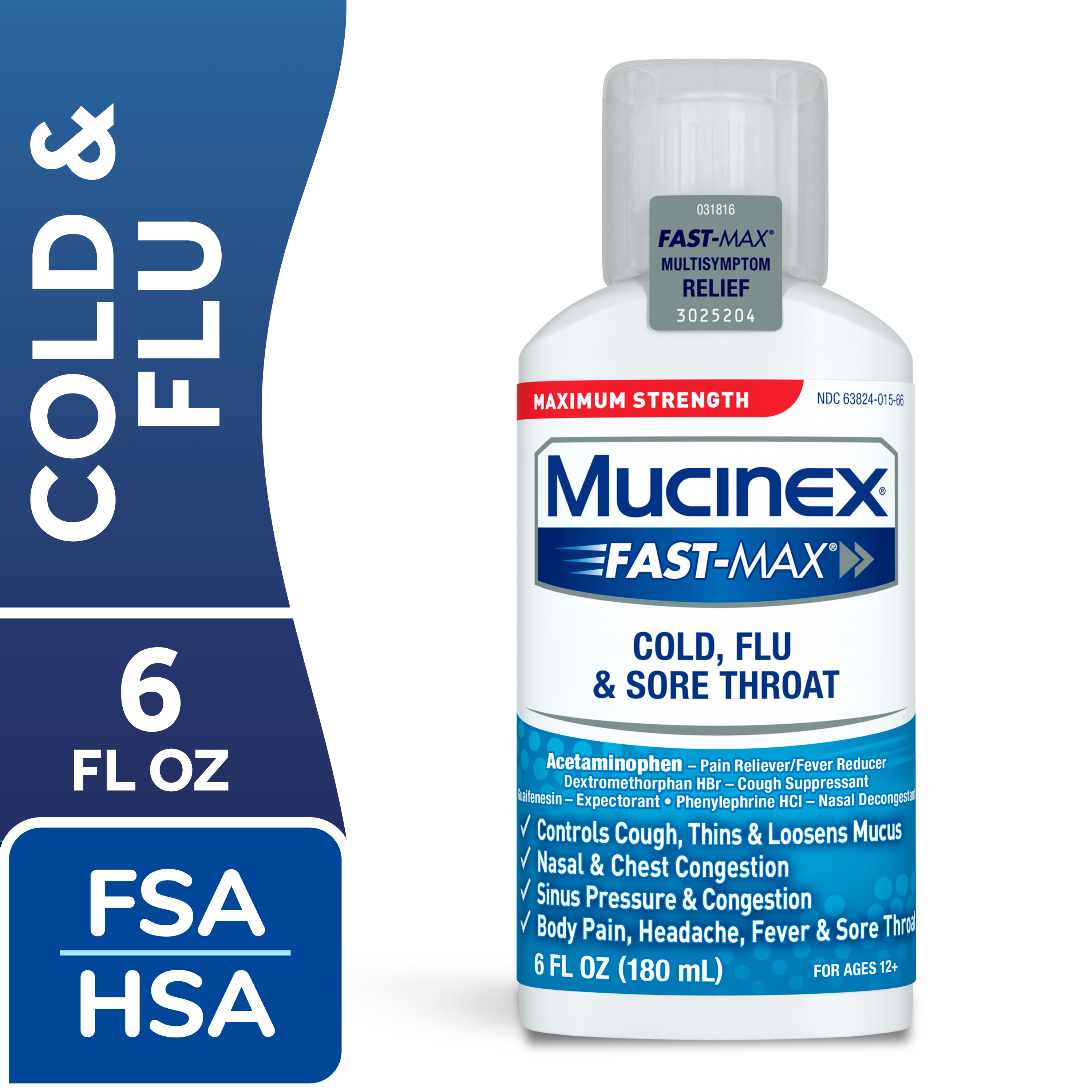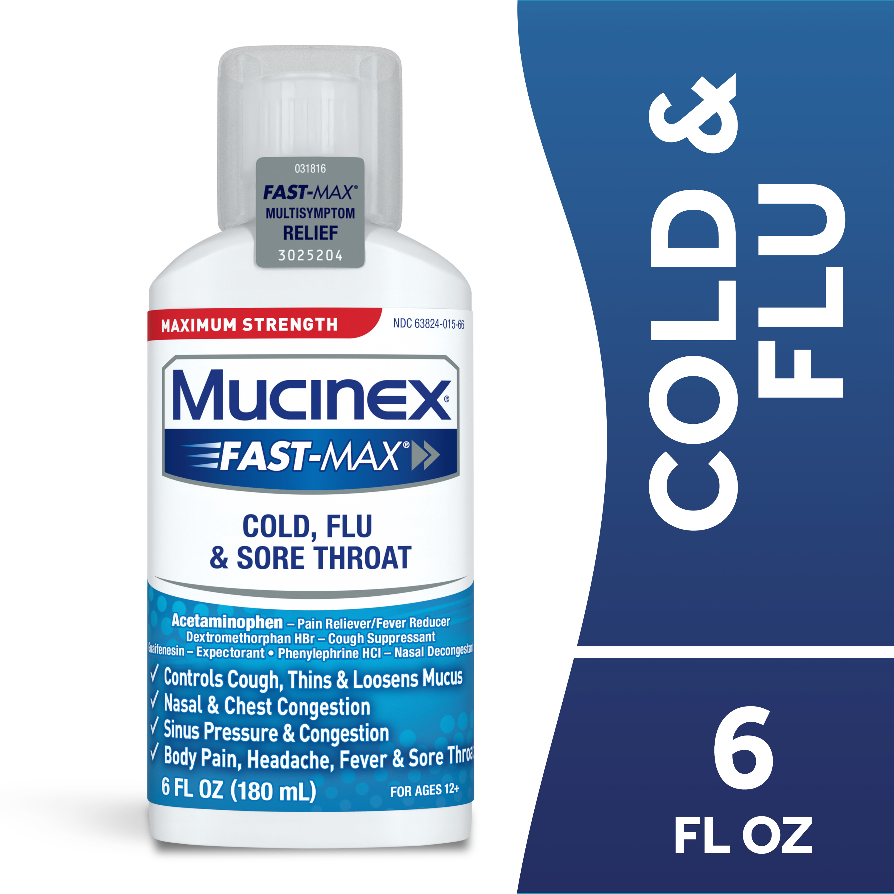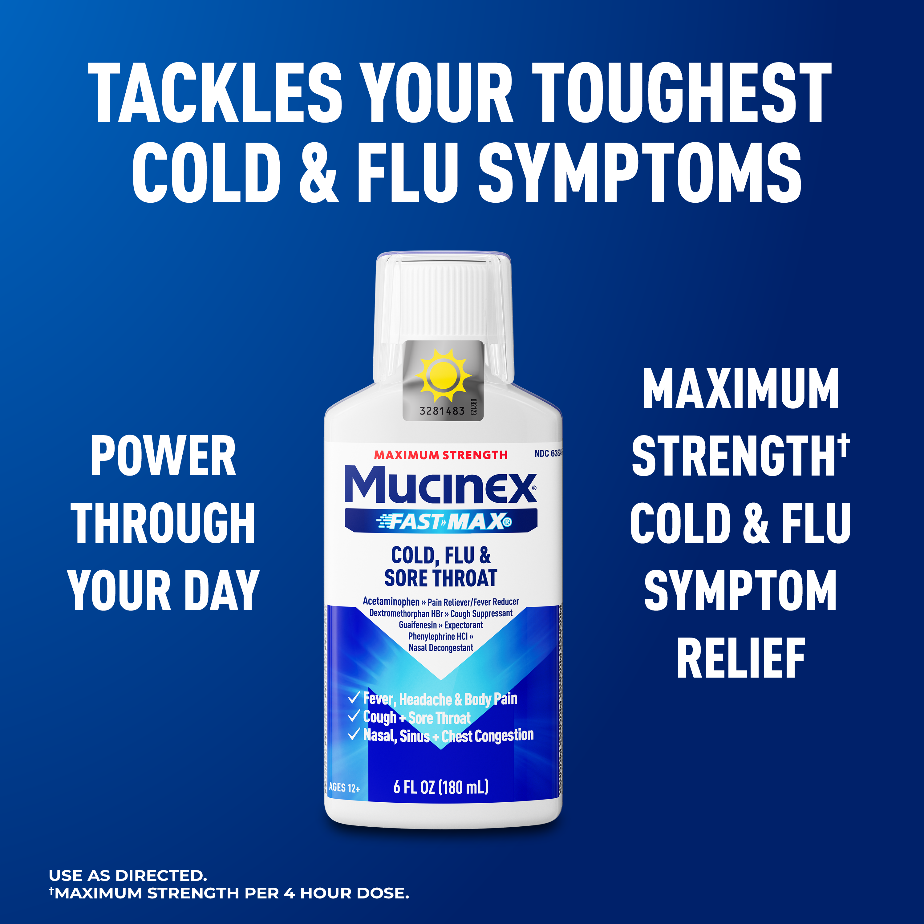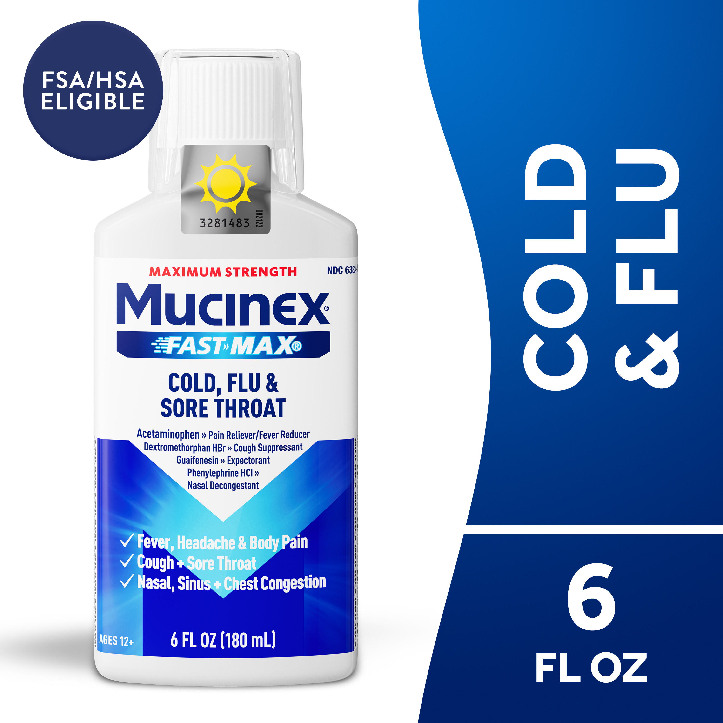 - MAXIMUM STRENGTH RELIEF: Maximum Strength Mucinex Fast-Max Cold, Flu & Sore Throat helps reduce fever, relieve cough, sore throat, stuffy nose, chest & nasal congestion, headache and minor aches and pains