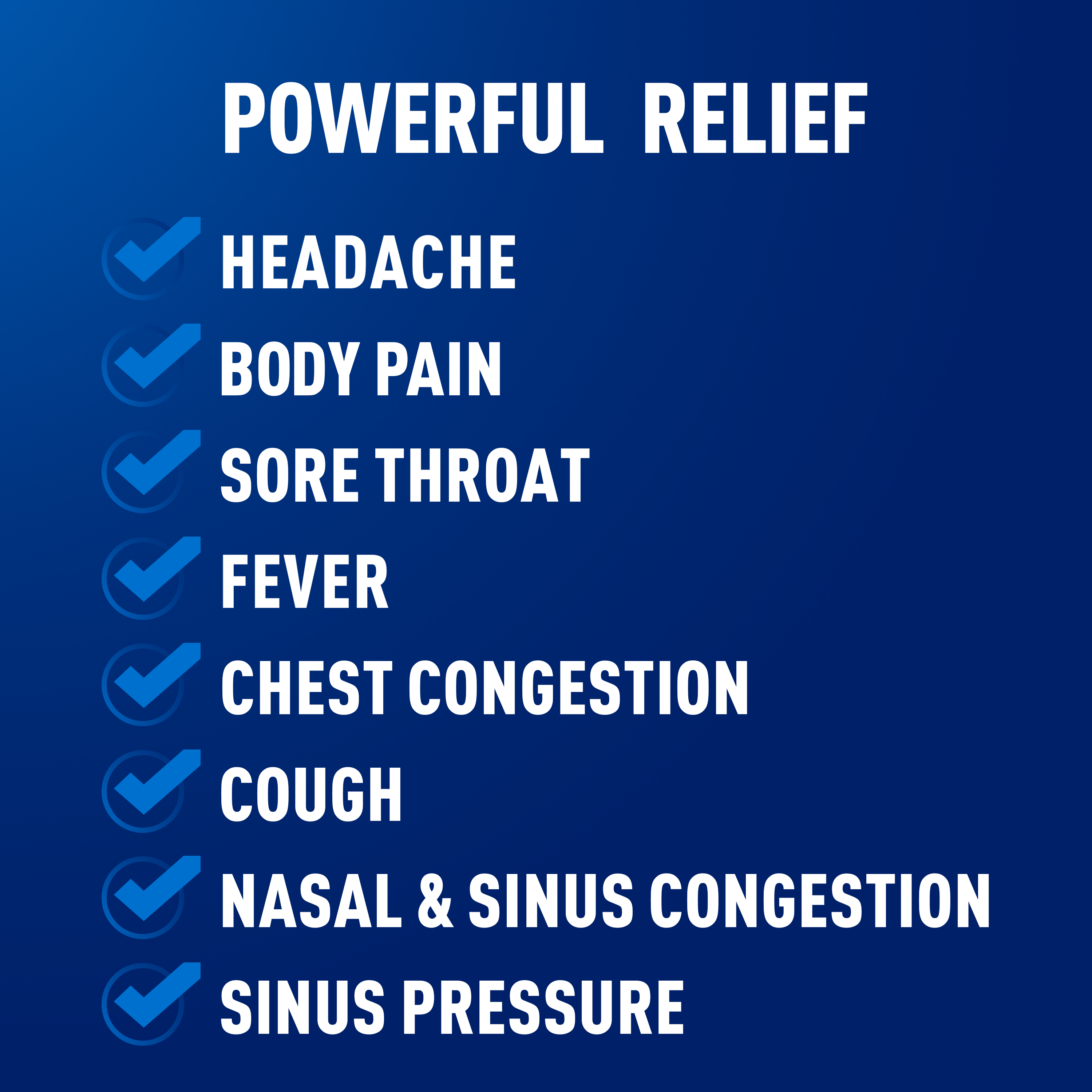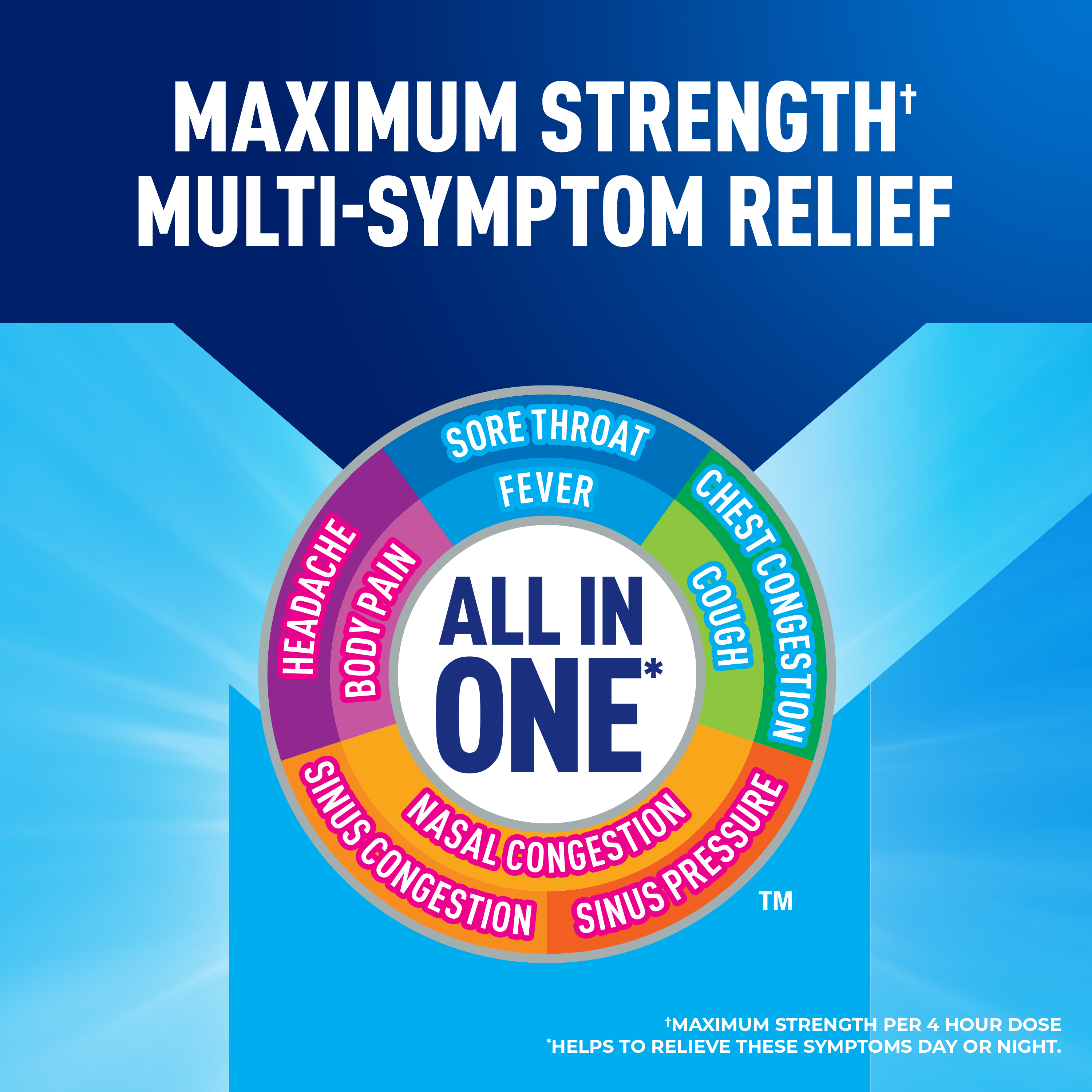 - MAXIMUM STRENGTH RELIEF: Maximum Strength Mucinex Fast-Max Cold & Flu All In One helps reduce fever and relieve cough, sore throat, stuffy nose, chest & nasal congestion, headache and minor aches and pains