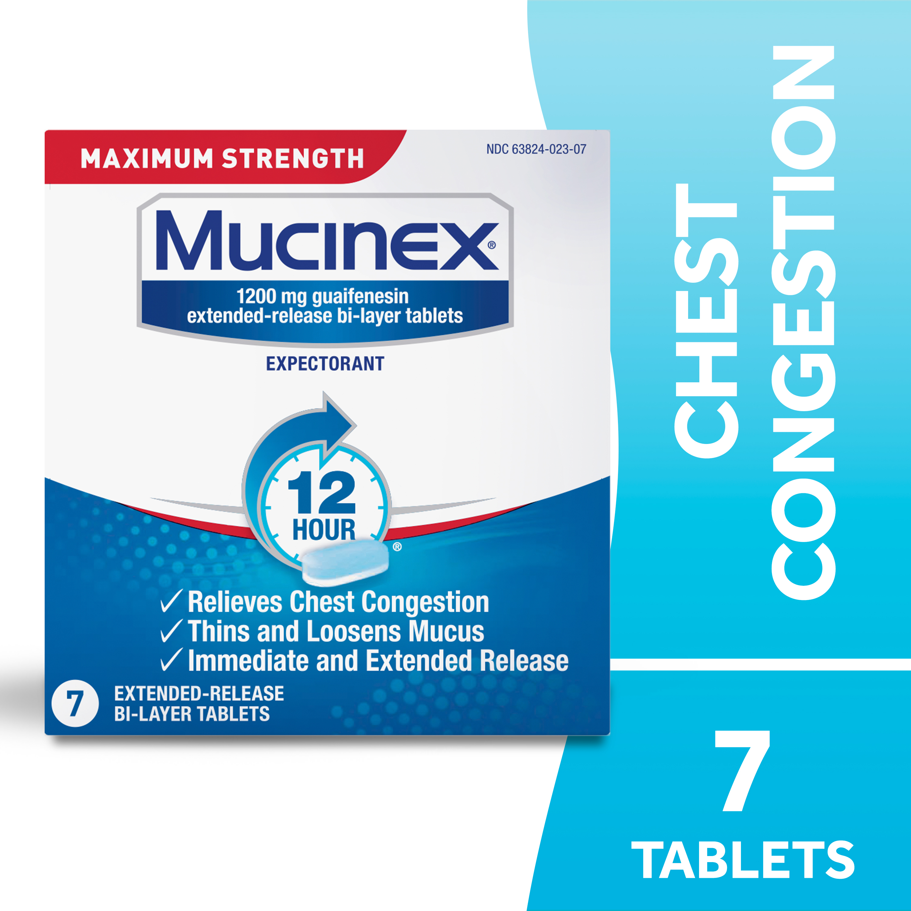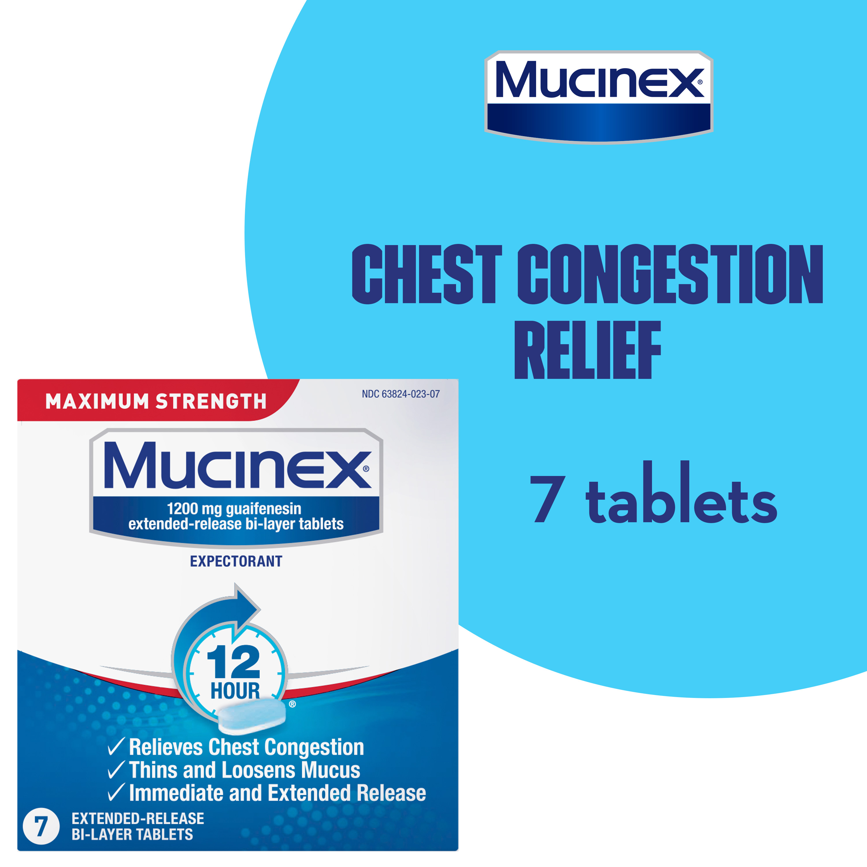 - EXCESS MUCUS RELIEF: Maximum Strength Mucinex 12hr extended-release tablets pack a powerful punch with 1200 mg guaifenesin expectorant, providing you with long-lasting chest congestion relief