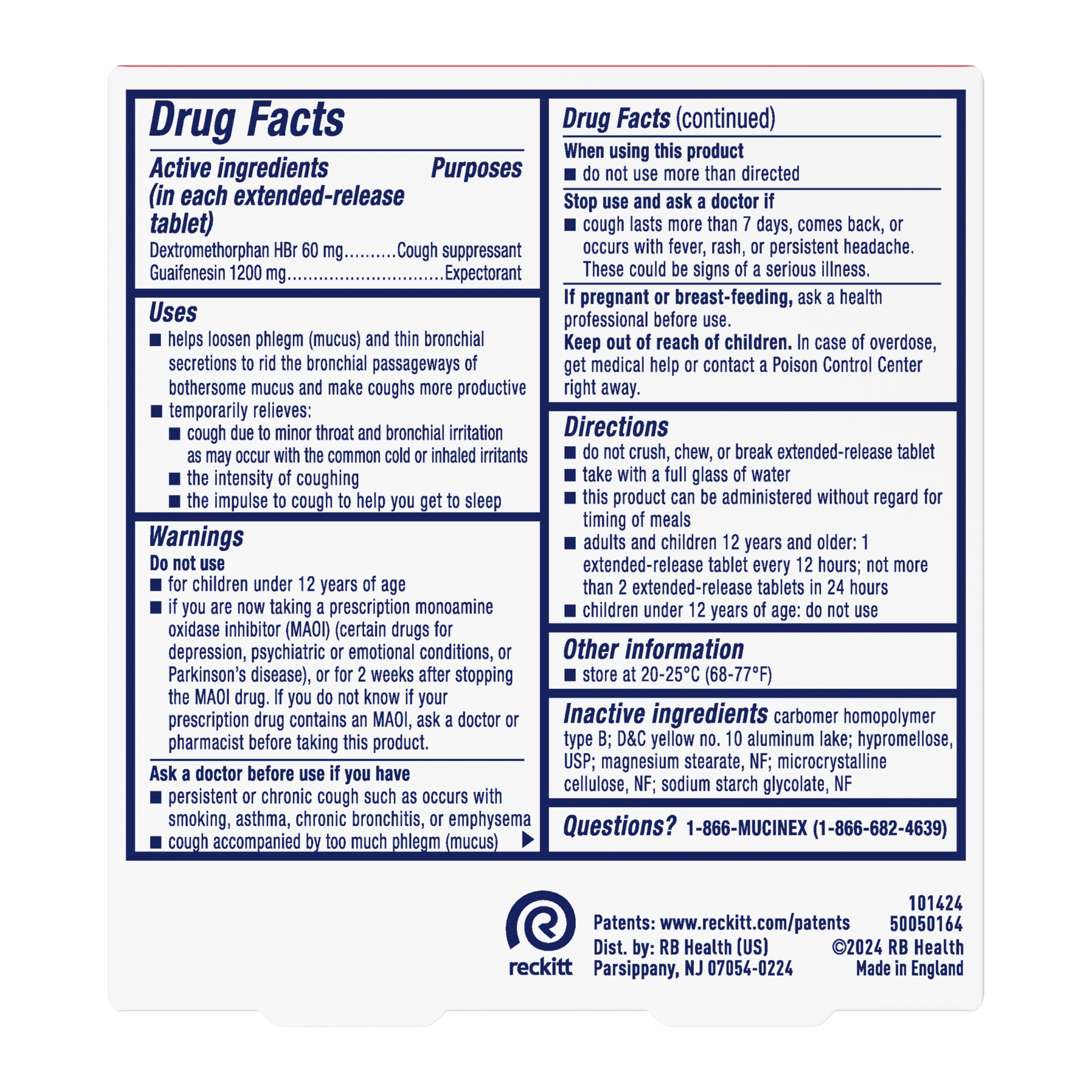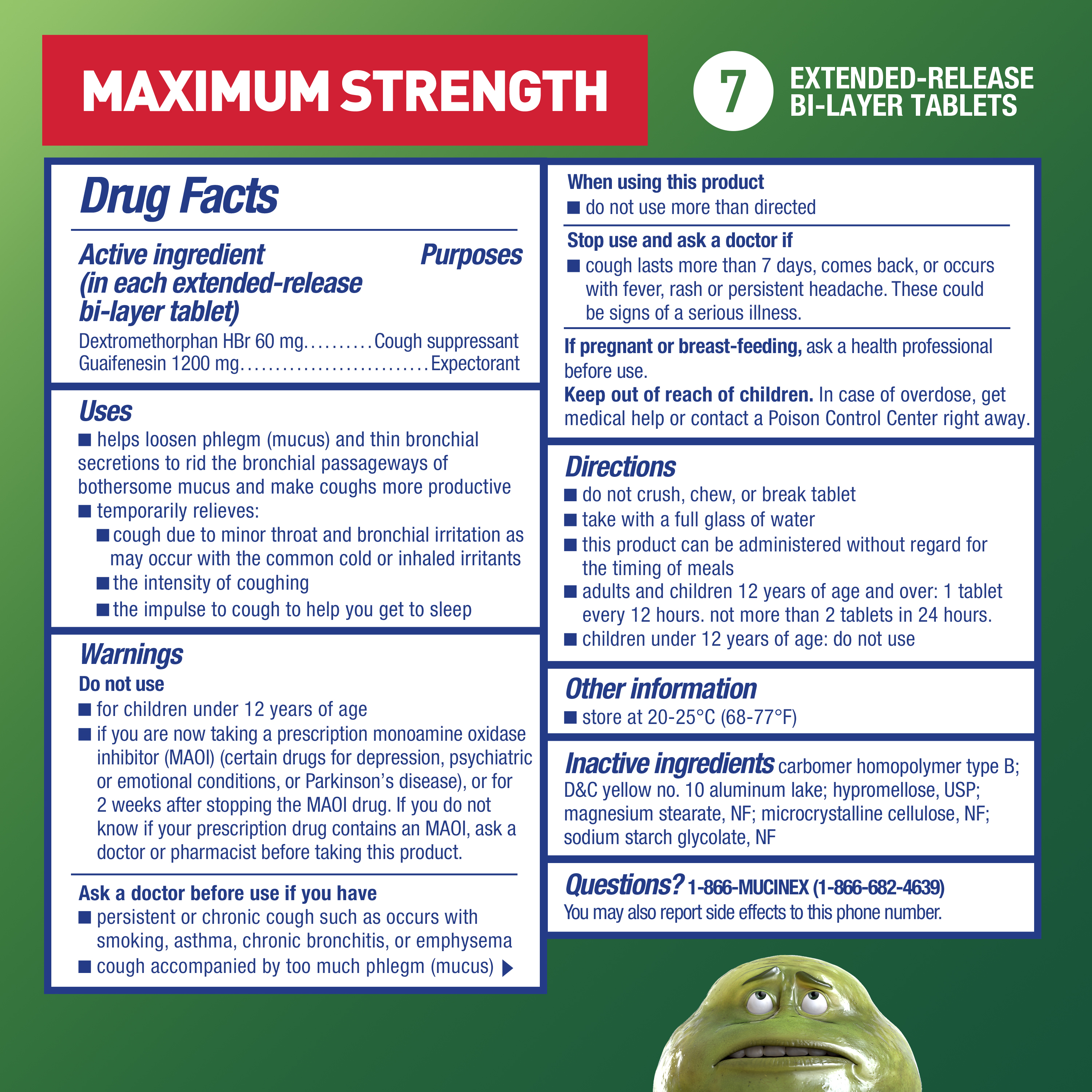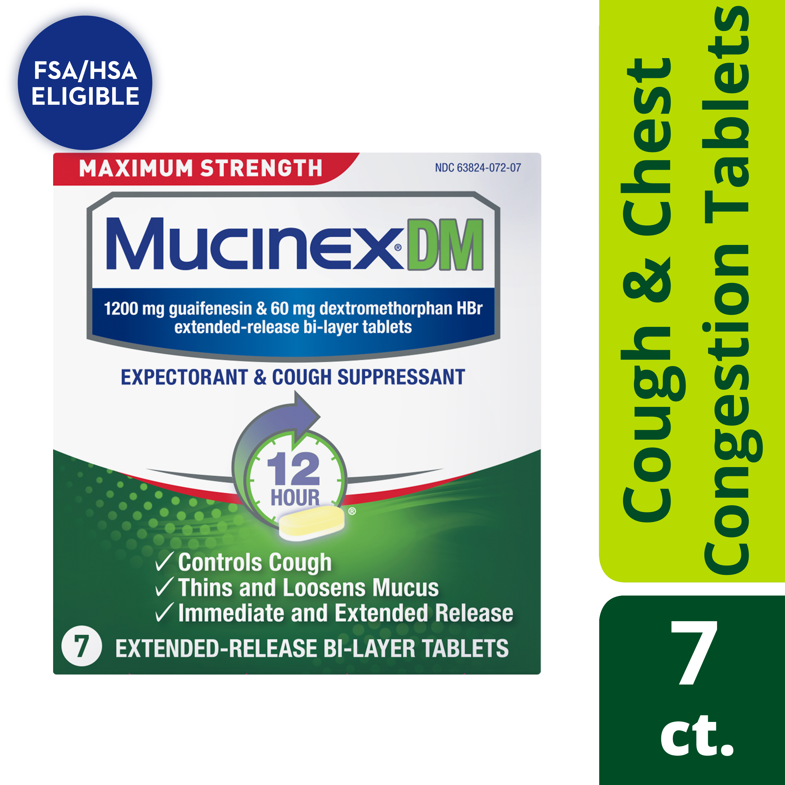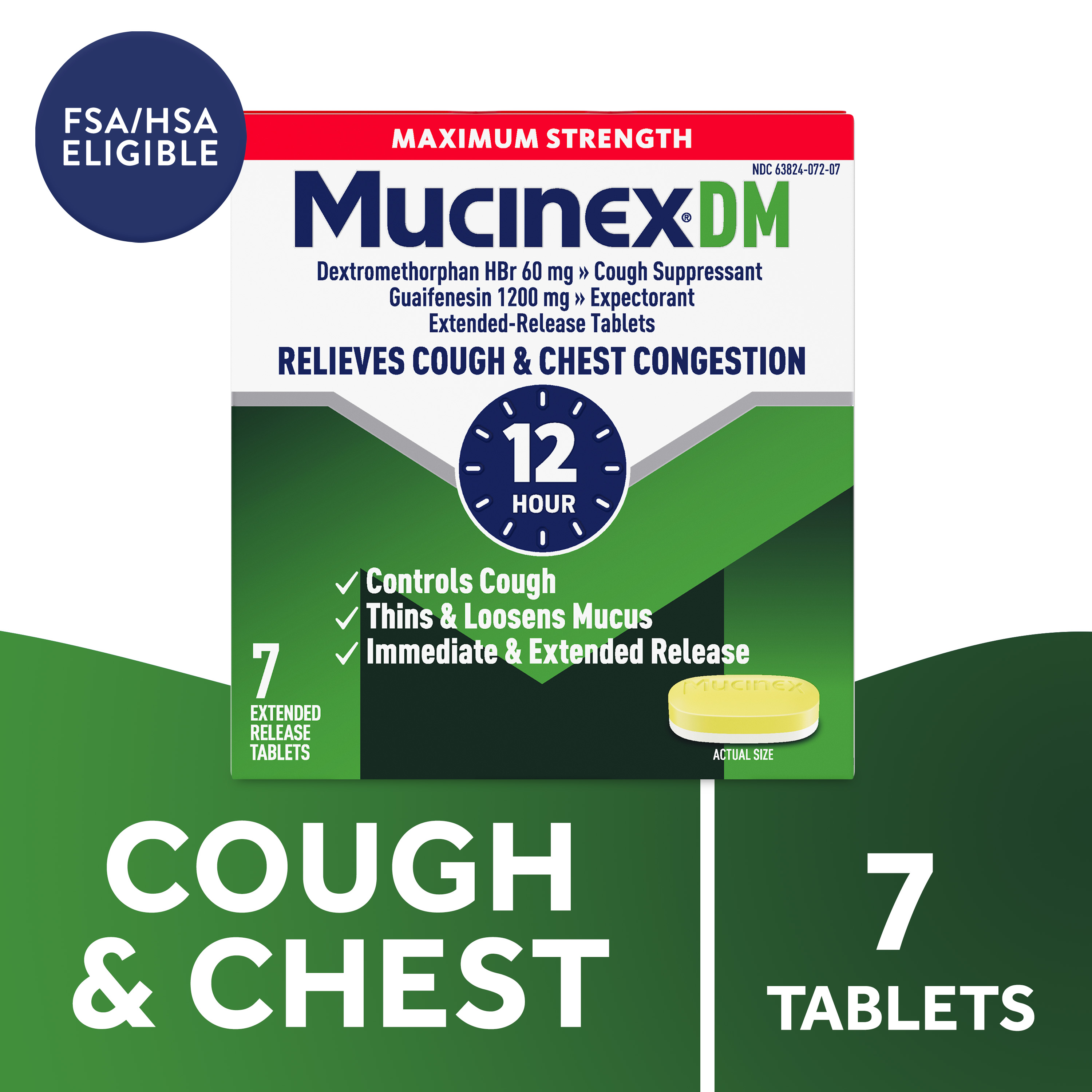 - EXTENDED RELEASE GUAIFENESIN & DEXTROMETHORPHAN HBr: Experience long-lasting symptom relief with Maximum Strength Mucinex DM 12 hr extended-release 1200 mg guaifenesin and 60 mg dextromethorphan HBr tablets