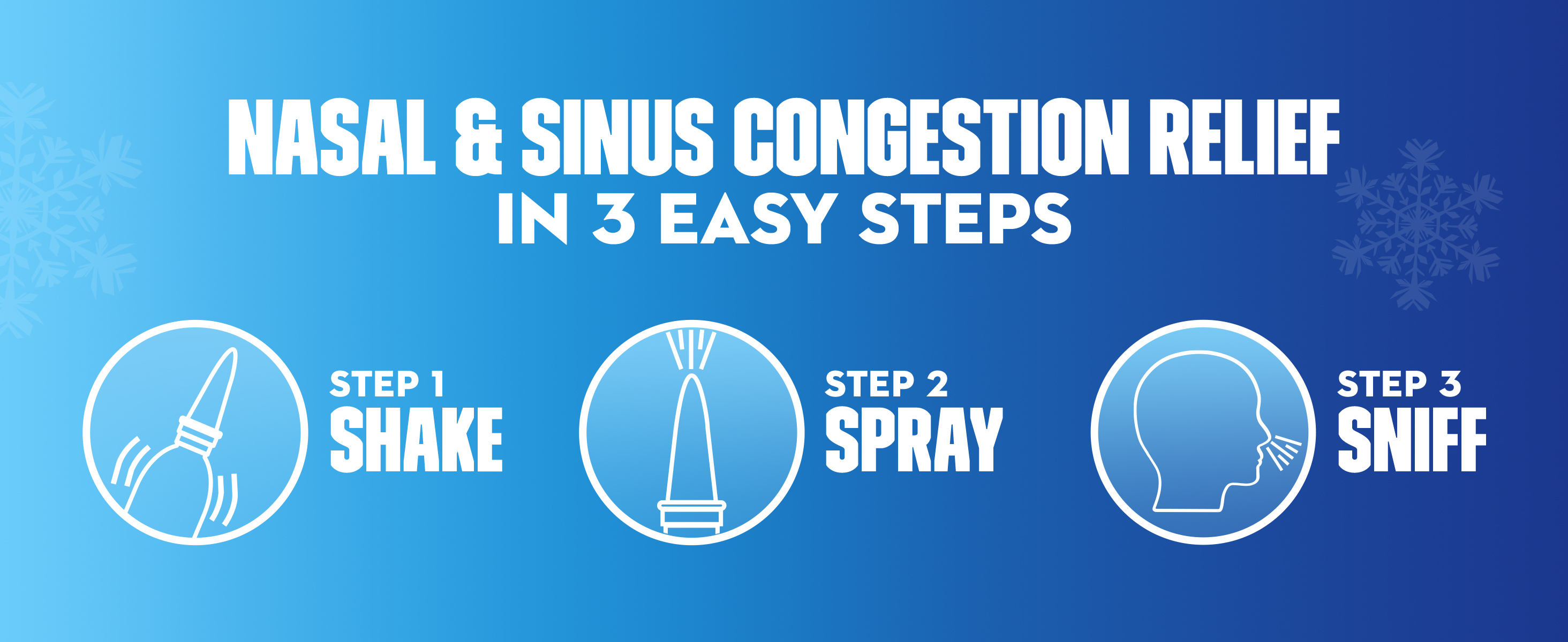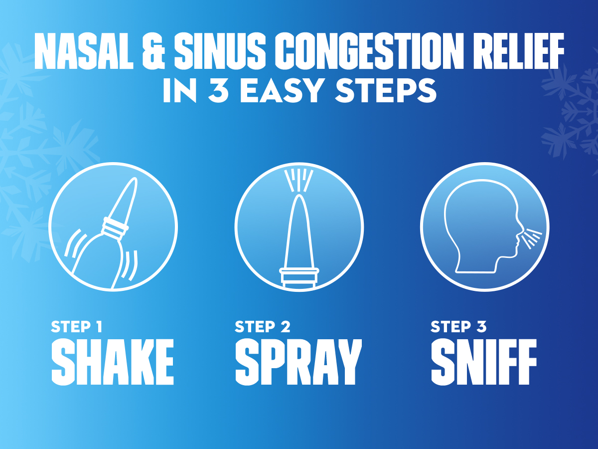 - NASAL SPRAY DECONGESTANT: A blast of Oxymetazoline HCI, a powerful topical nasal decongestant, and a cooling menthol sensation that starts working immediately and provides nasal and sinus congestion relief for up to 12 hours