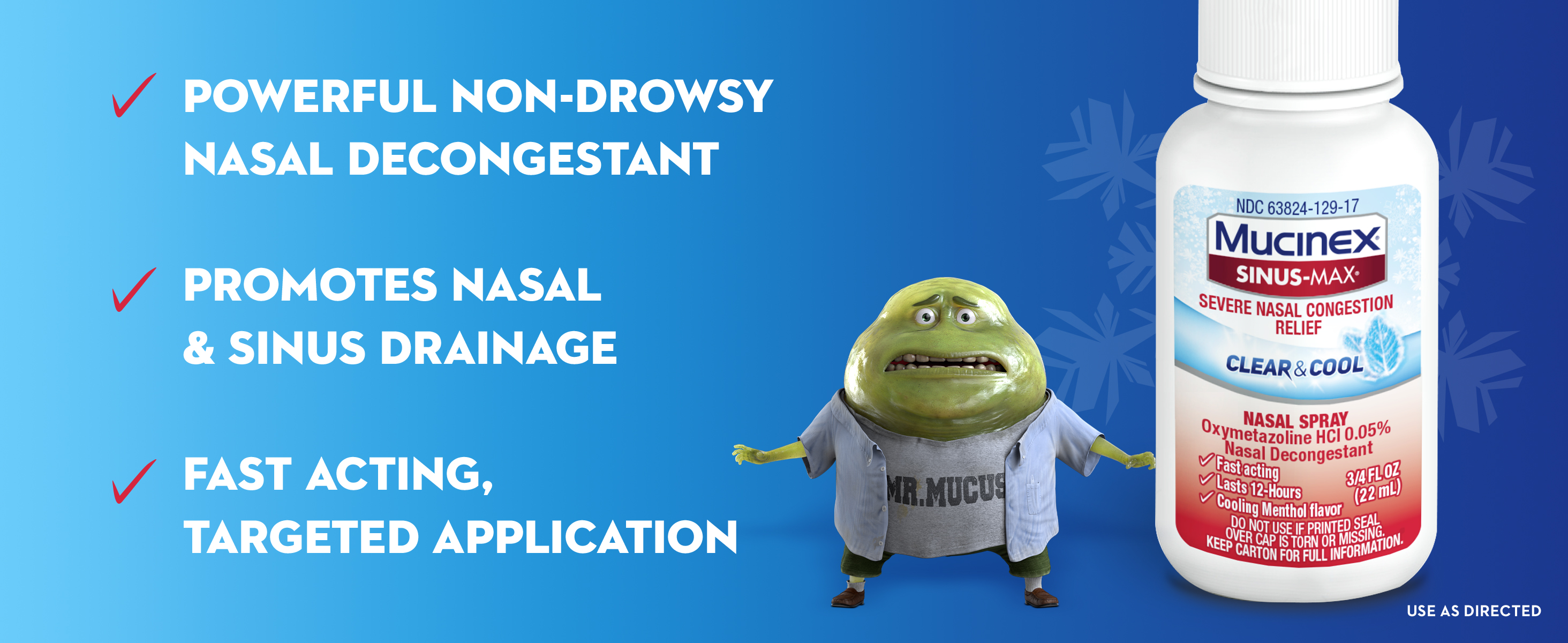 - MUCINEX® OVER-THE-COUNTER NASAL SPRAY: Mucinex® Sinus-Max Severe Nasal Congestion Relief helps relieve nasal congestion, sinus congestion, and sinus pressure