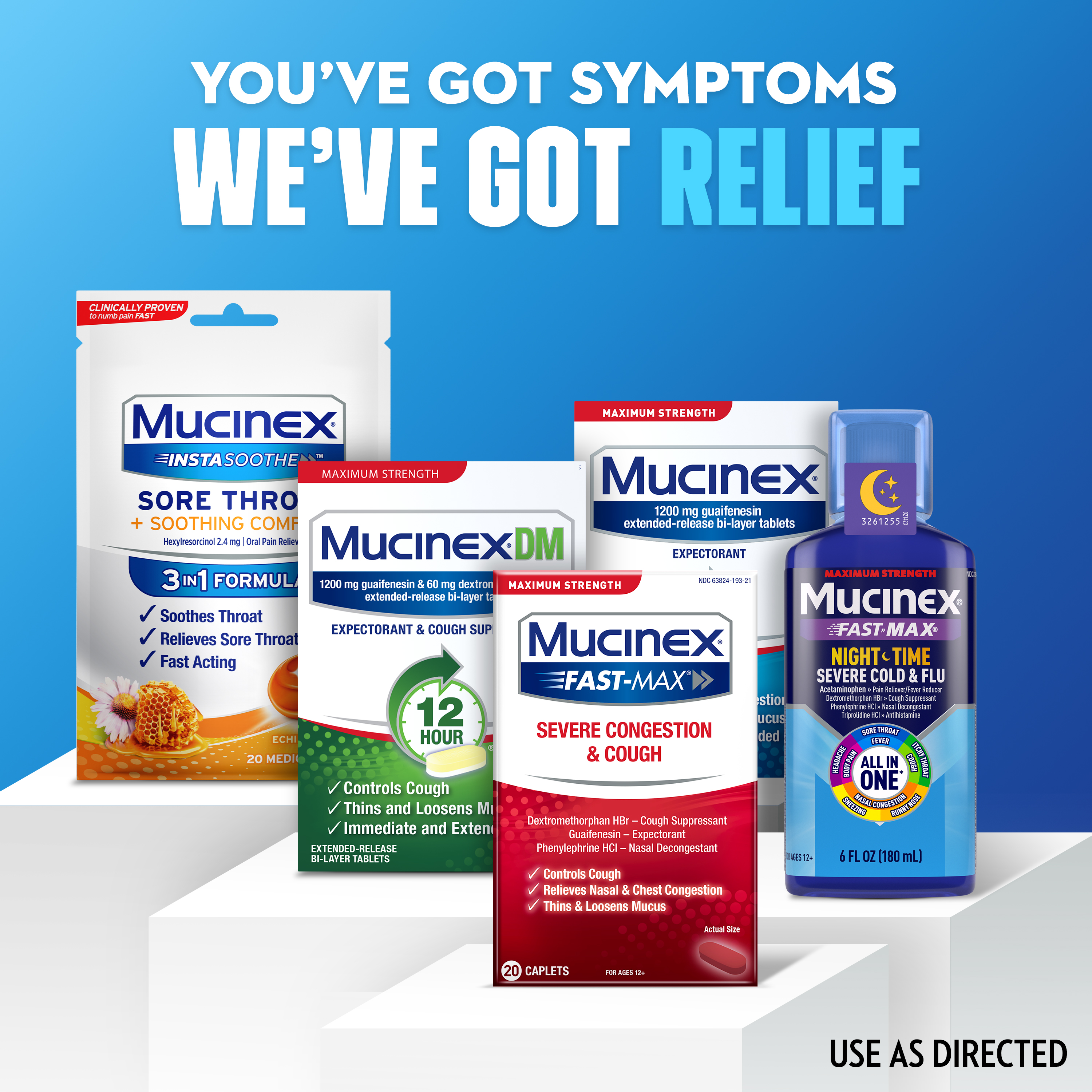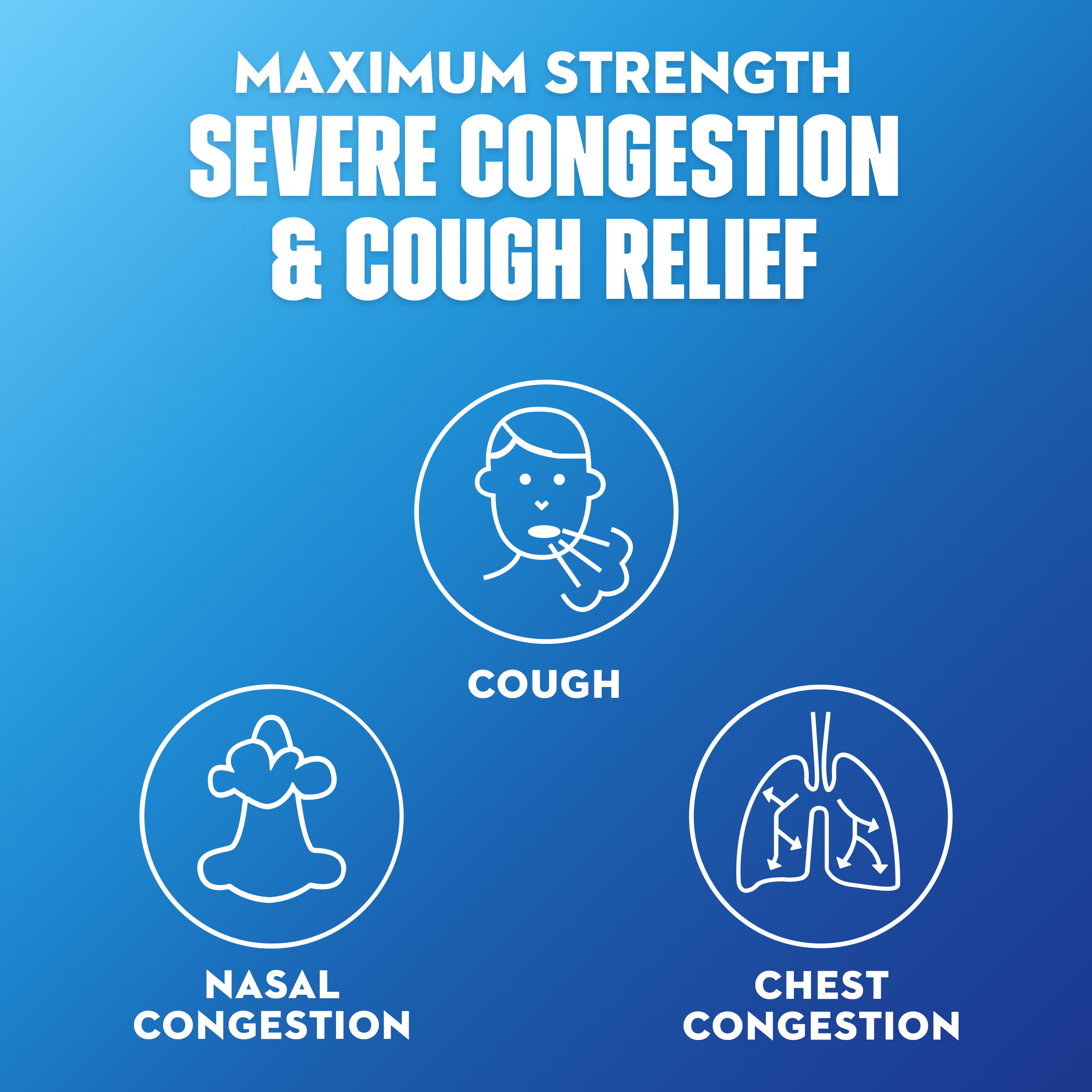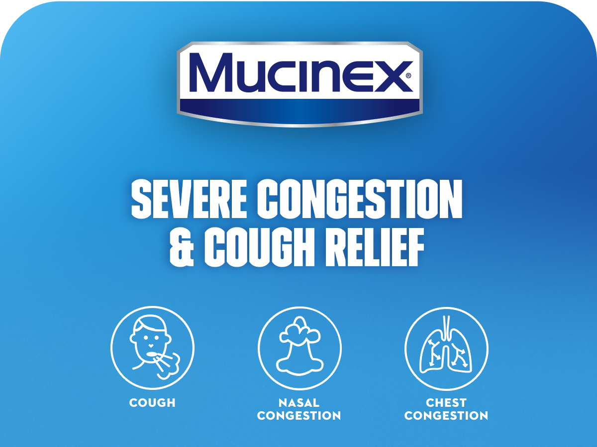 SYMPTOMS RELIEVED: Maximum Strength Mucinex Fast-Max Severe Congestion & Cough helps relieve cough, thins and loosens mucus and relieves chest and nasal congestion
