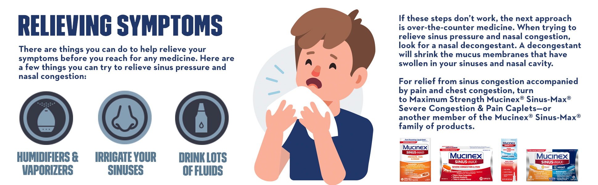 - MAXIMUM STRENGTH MUCINEX SINUS-MAX NIGHT: Helps relieve pain, sinus pressure, nasal congestion, cough, and runny nose & sneezing