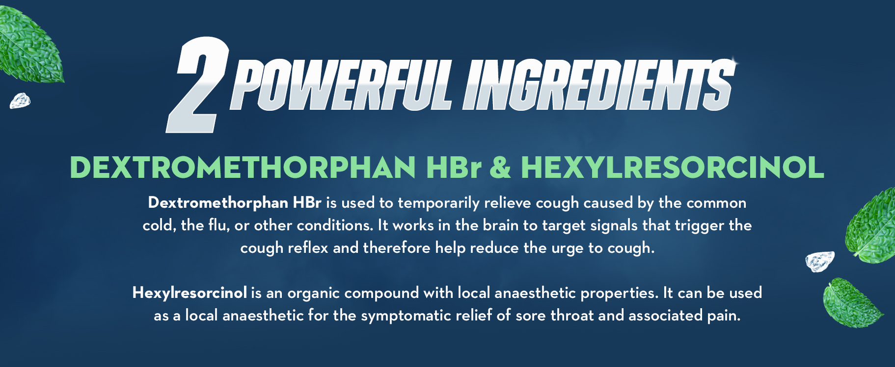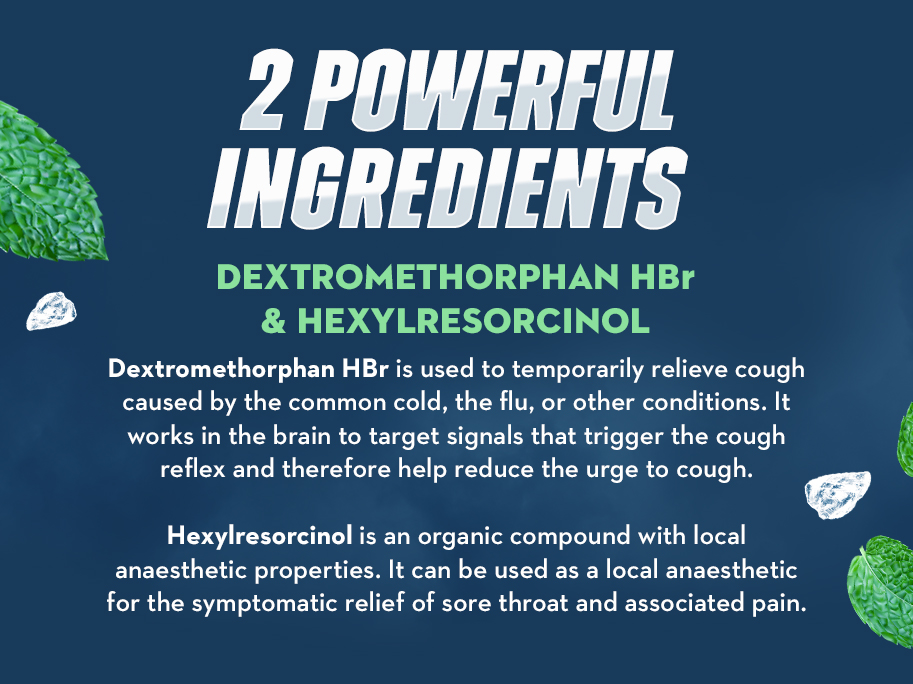 - ALPINE HERBS & FRESH MINT FLAVOR SORE THROAT DROPS: These sore throat + cough medicated drops are powered by a unique formula containing Dextromethorphan HBr & Hexlyresorcinol, not menthol like other cough drops