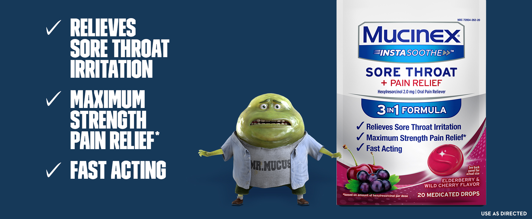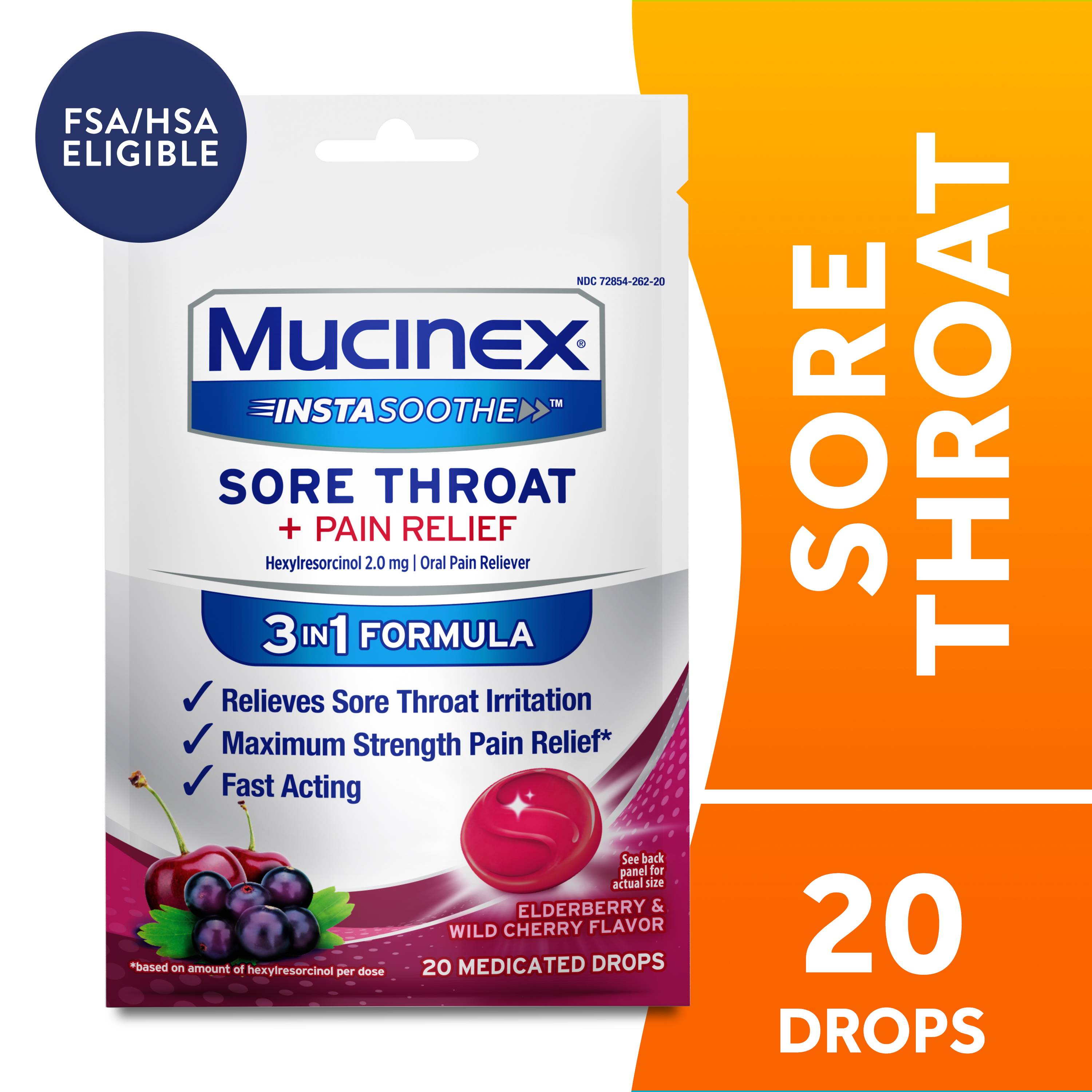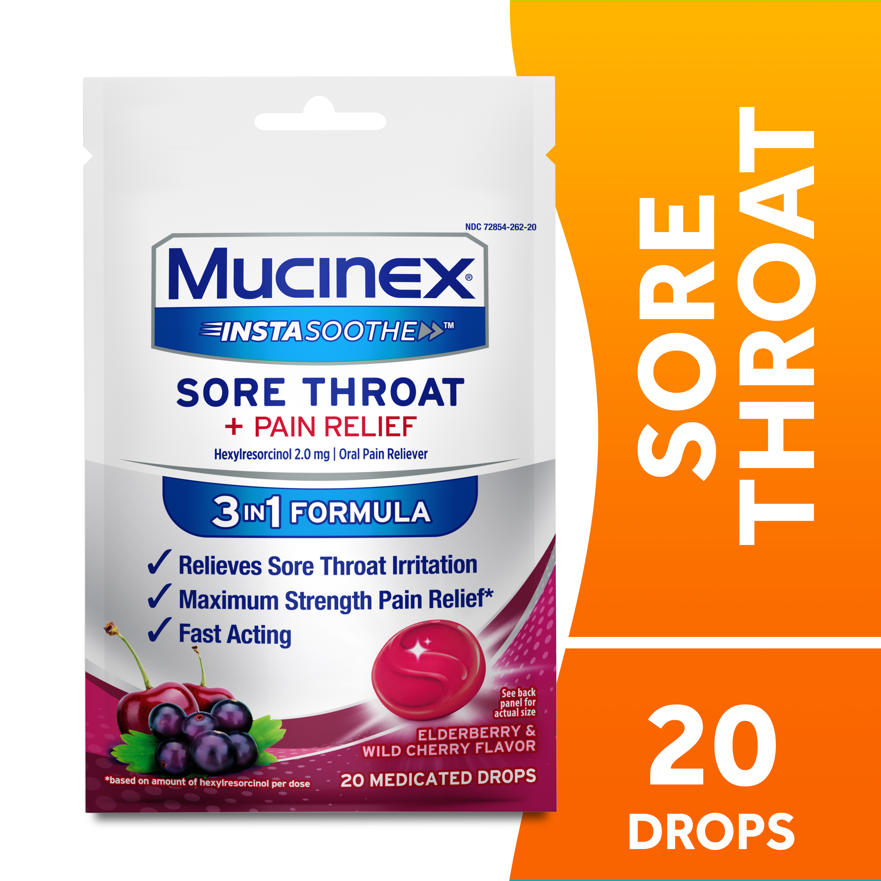 - FAST ACTING SORE THROAT LOZENGES: Mucinex Instasoothe Sore Throat Drops provide rapid relief that lasts & lasts