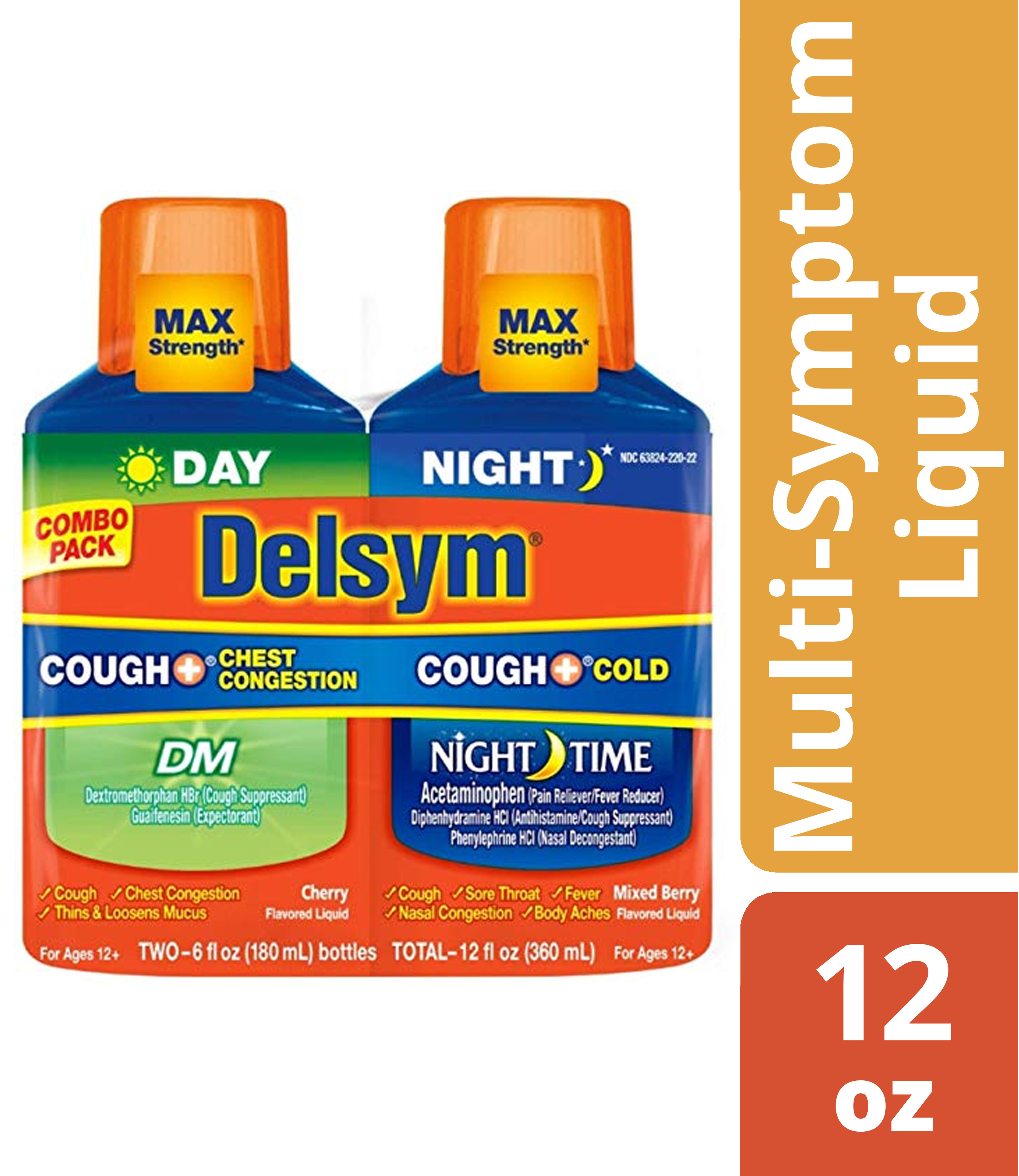 DELSYM Adult Liquid - Day Night Cough Plus Chest Congestion DM/Cough & Cold 3/(2x6) oz.