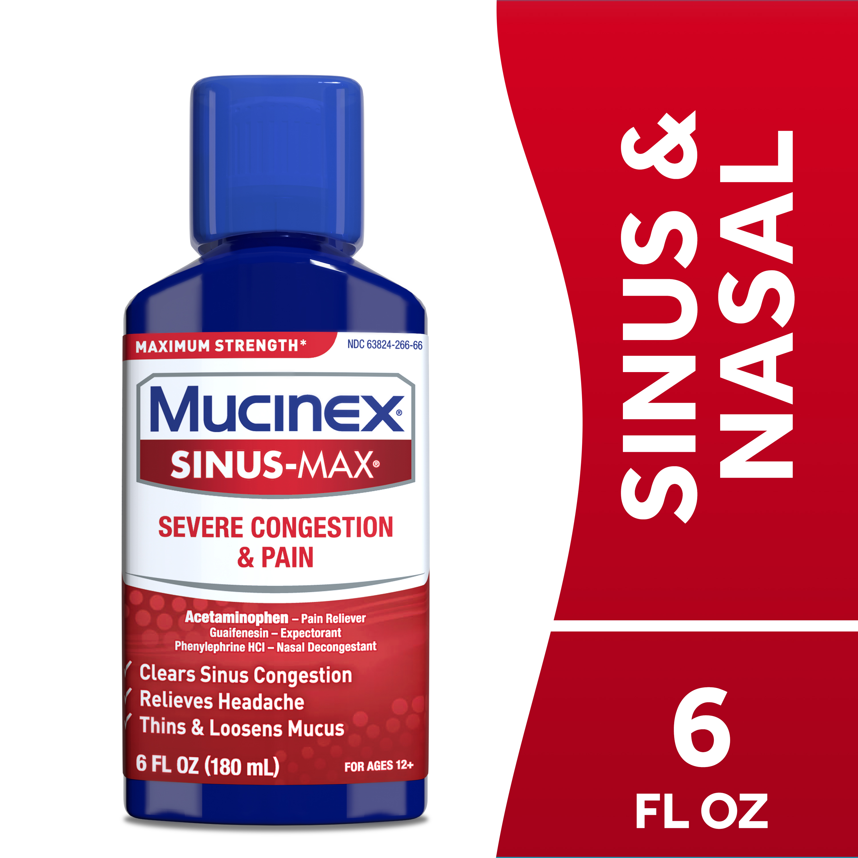 MUCINEX® SINUS-MAX® Adult Liquid - Max Strength Severe Congestion & Pain 6/6 oz.