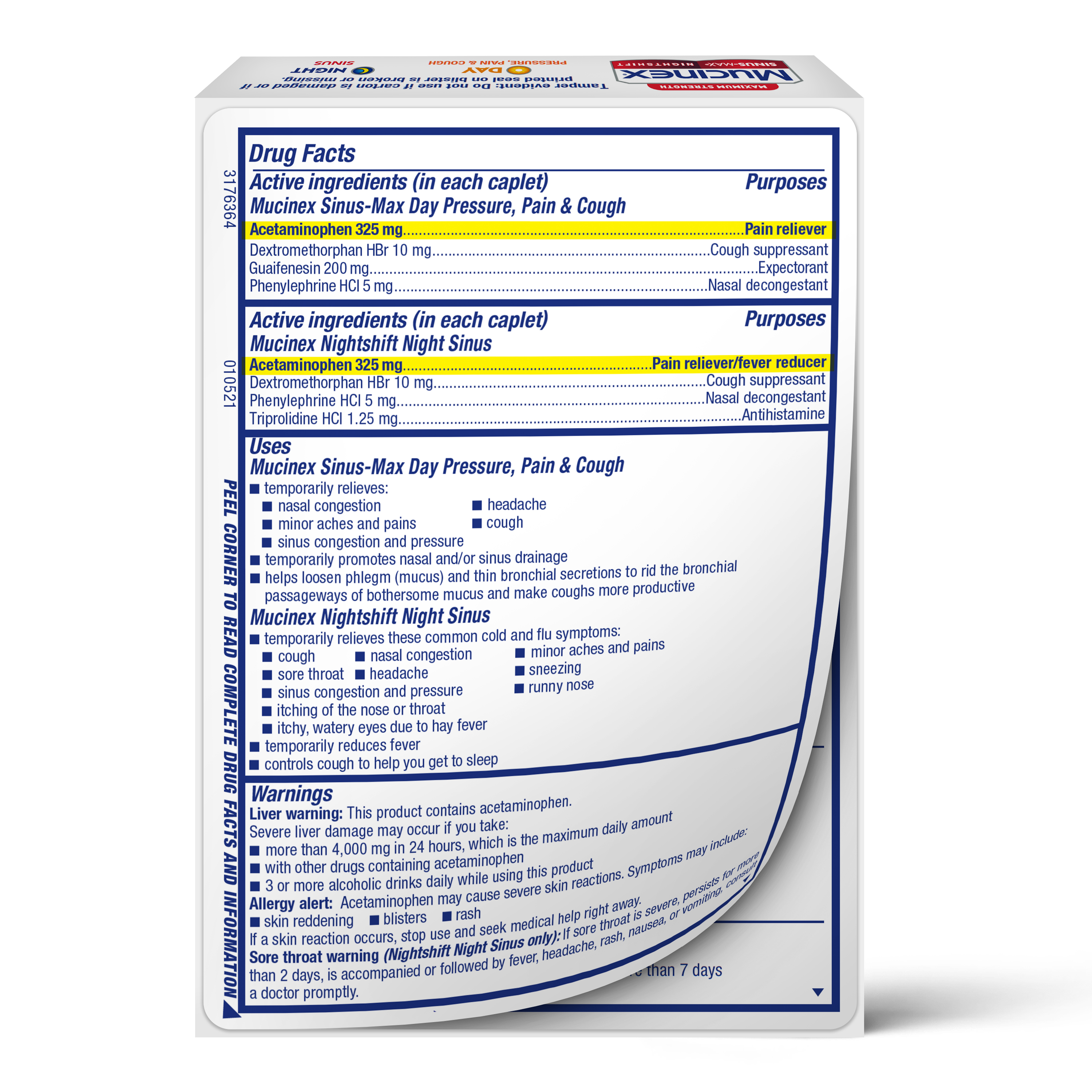 - NIGHT TIME MULTI-SYMPTOM RELIEF: Maximum Strength Mucinex Nightshift Sinus Caplets help to relieve pain, cough, reduce fever, sore throat, runny nose, sneezing & nasal congestion. Nighttime relief for a better morning!