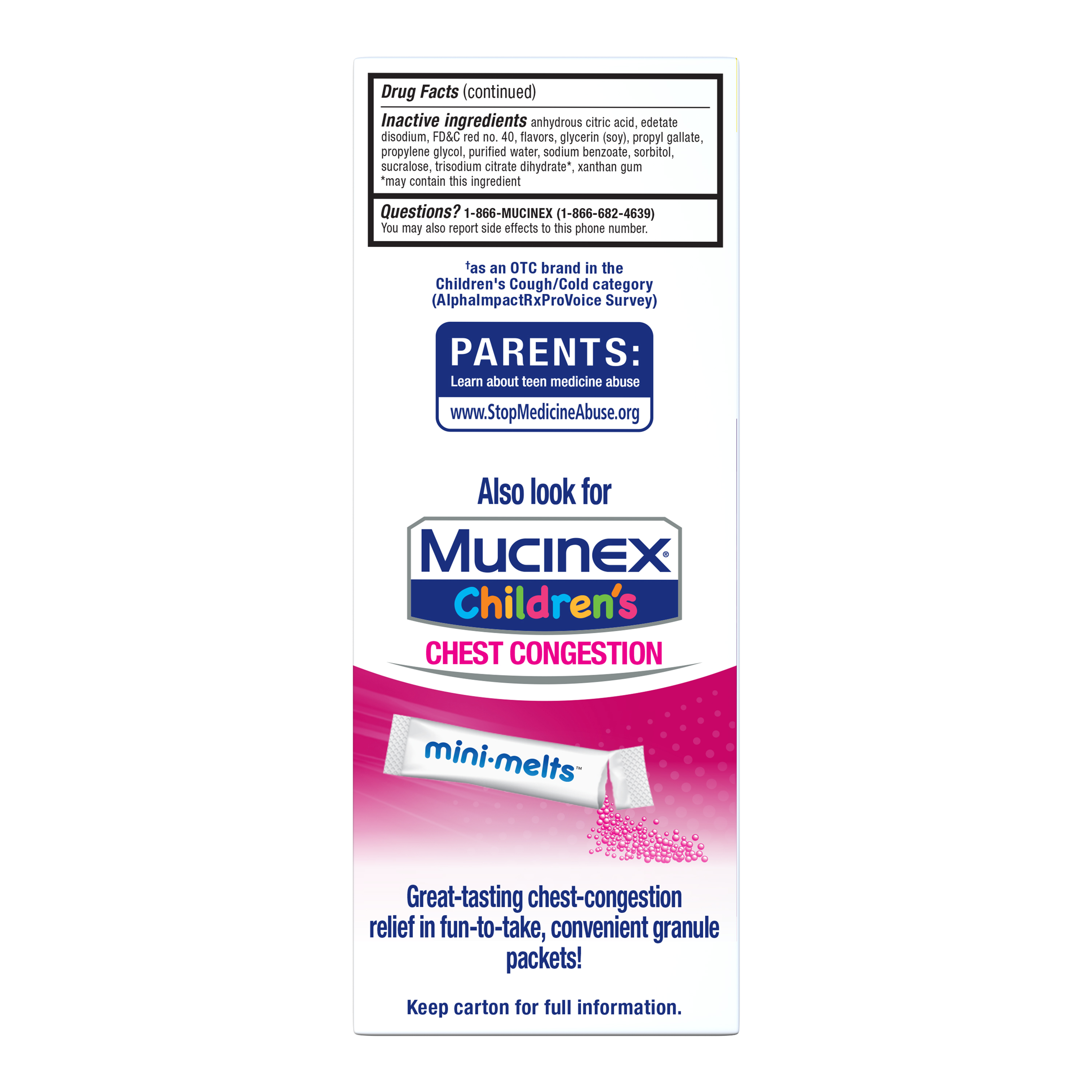 - #1 PEDIATRICIAN RECOMMENDED: Mucinex Children’s is the #1 Pediatrician Recommended Brand among Non-Homeopathic Children’s Cough / Cold OTC products