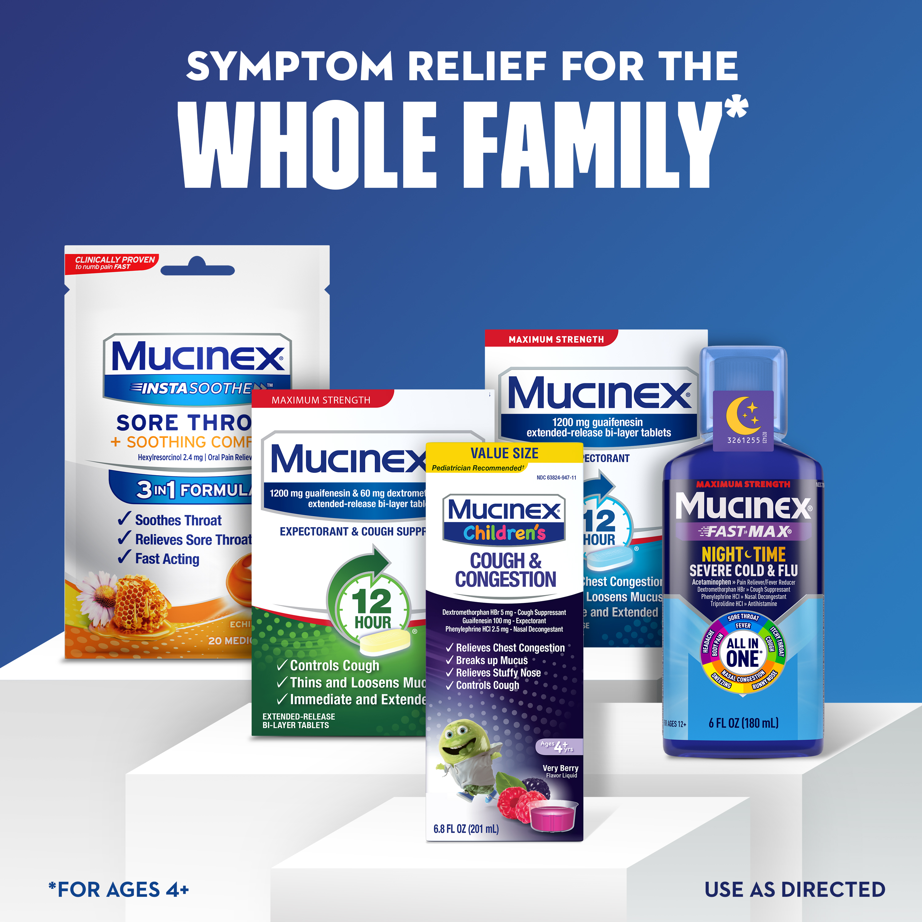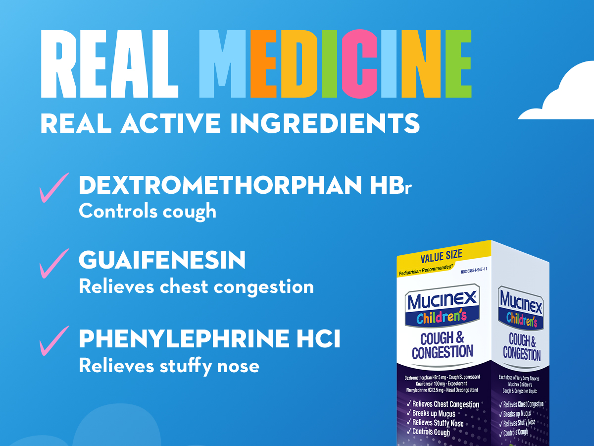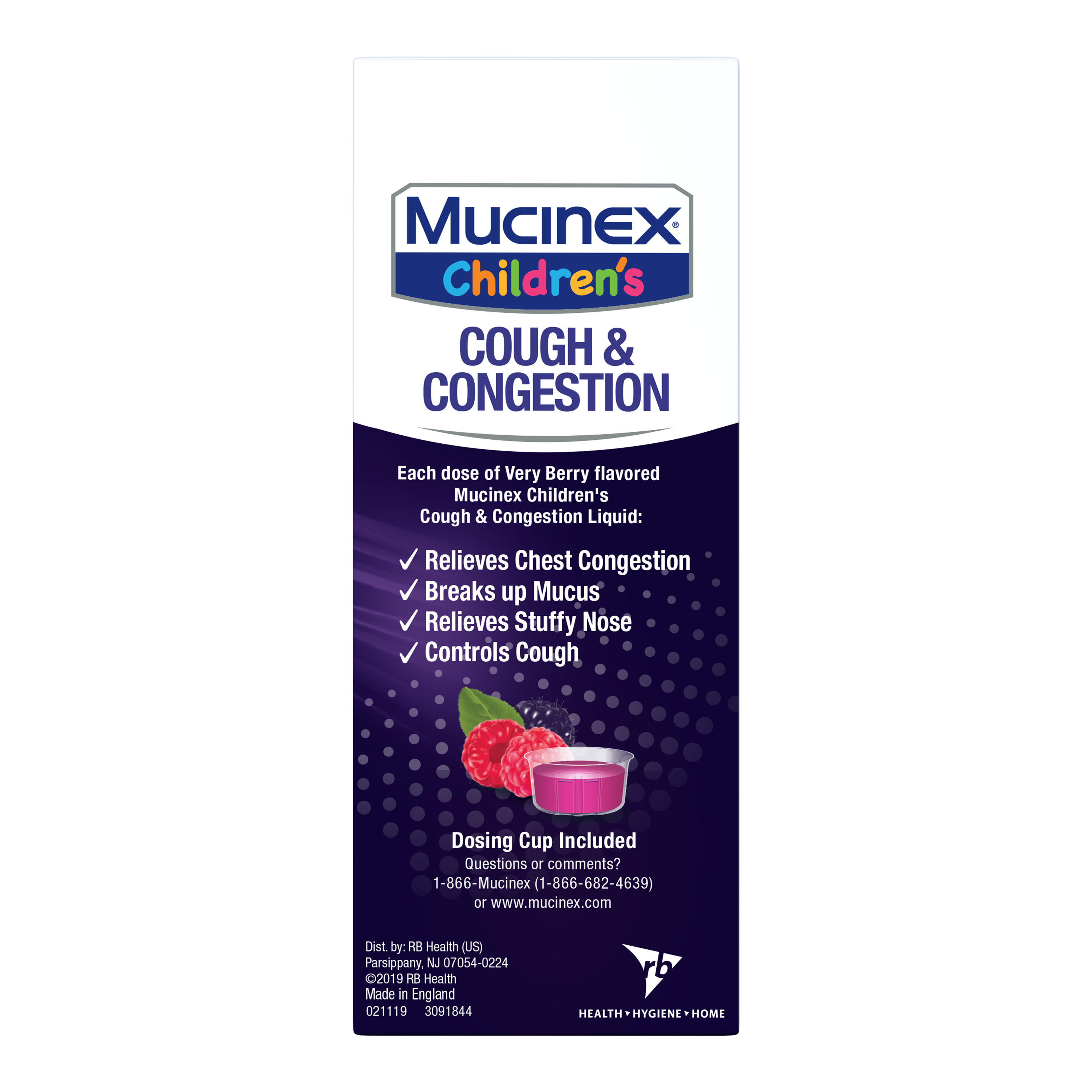 - MULTI-SYMPTOM RELIEF: Mucinex Children’s Cough & Congestion helps control cough, thins and loosens mucus, relieves chest congestion and stuffy nose