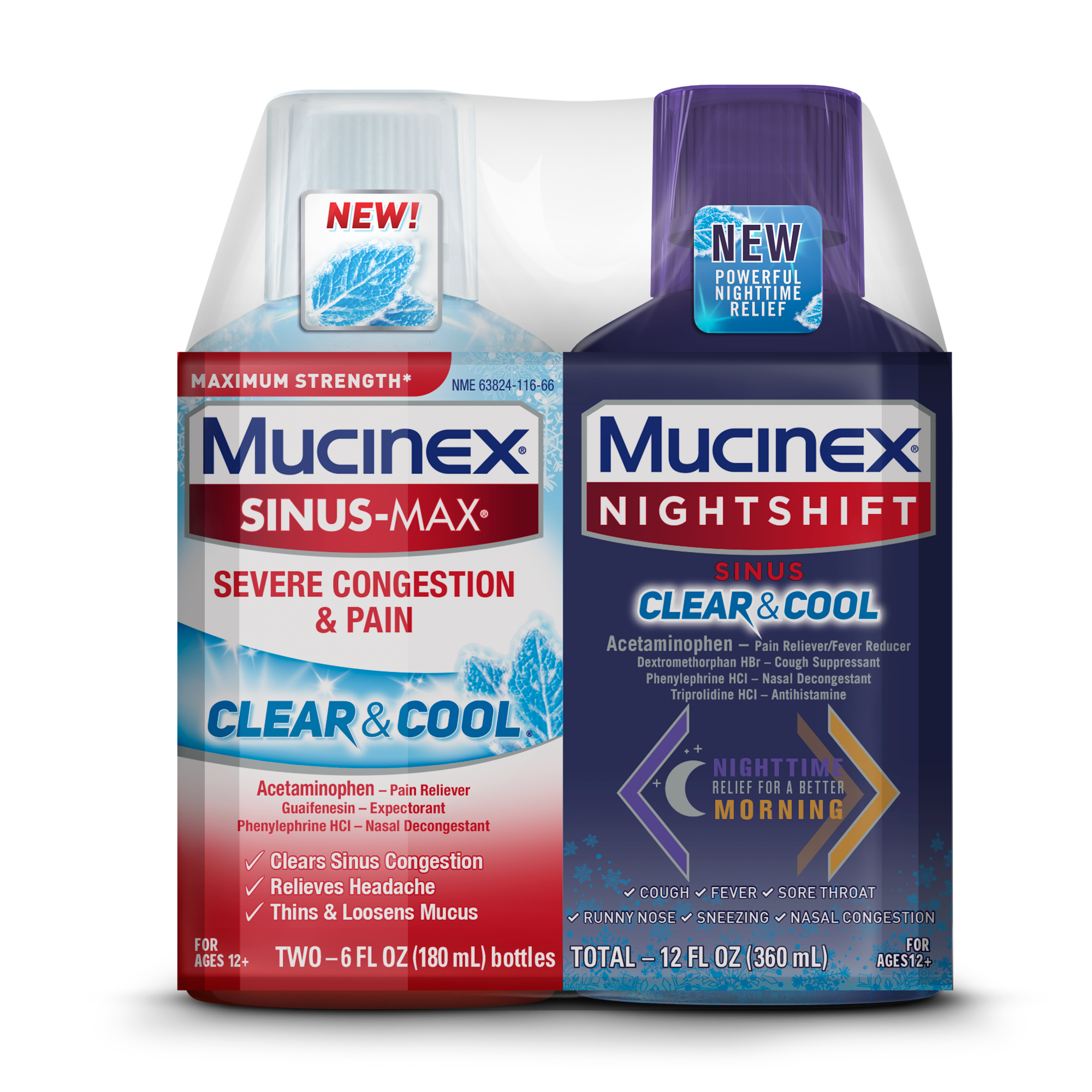 Maximum Strength* MUCINEX® SINUS-MAX® Severe Congestion & Pain & MUCINEX® Nightshift® Sinus Clear & Cool 3/(2x6) oz.