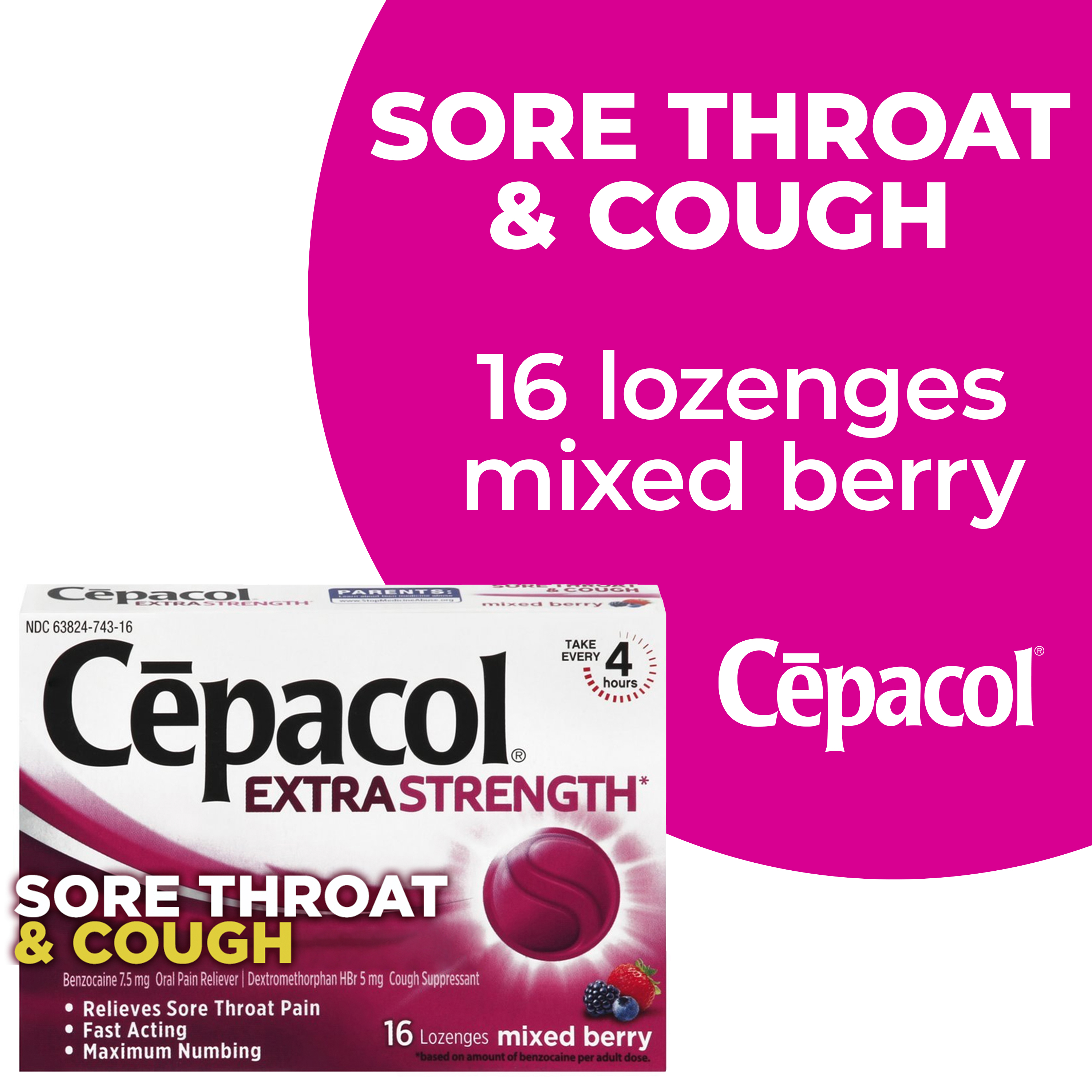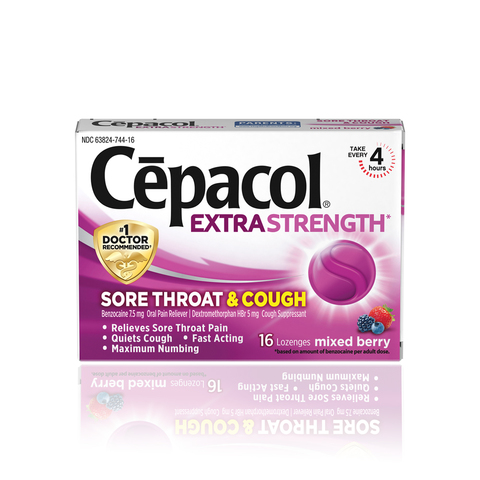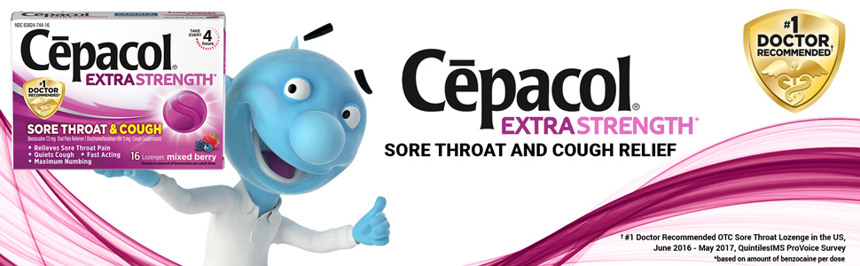 - EXTRA STRENGTH RELIEF: Cepacol Extra Strength helps quiet your cough and relieve your sore throat, mouth pain and canker sores