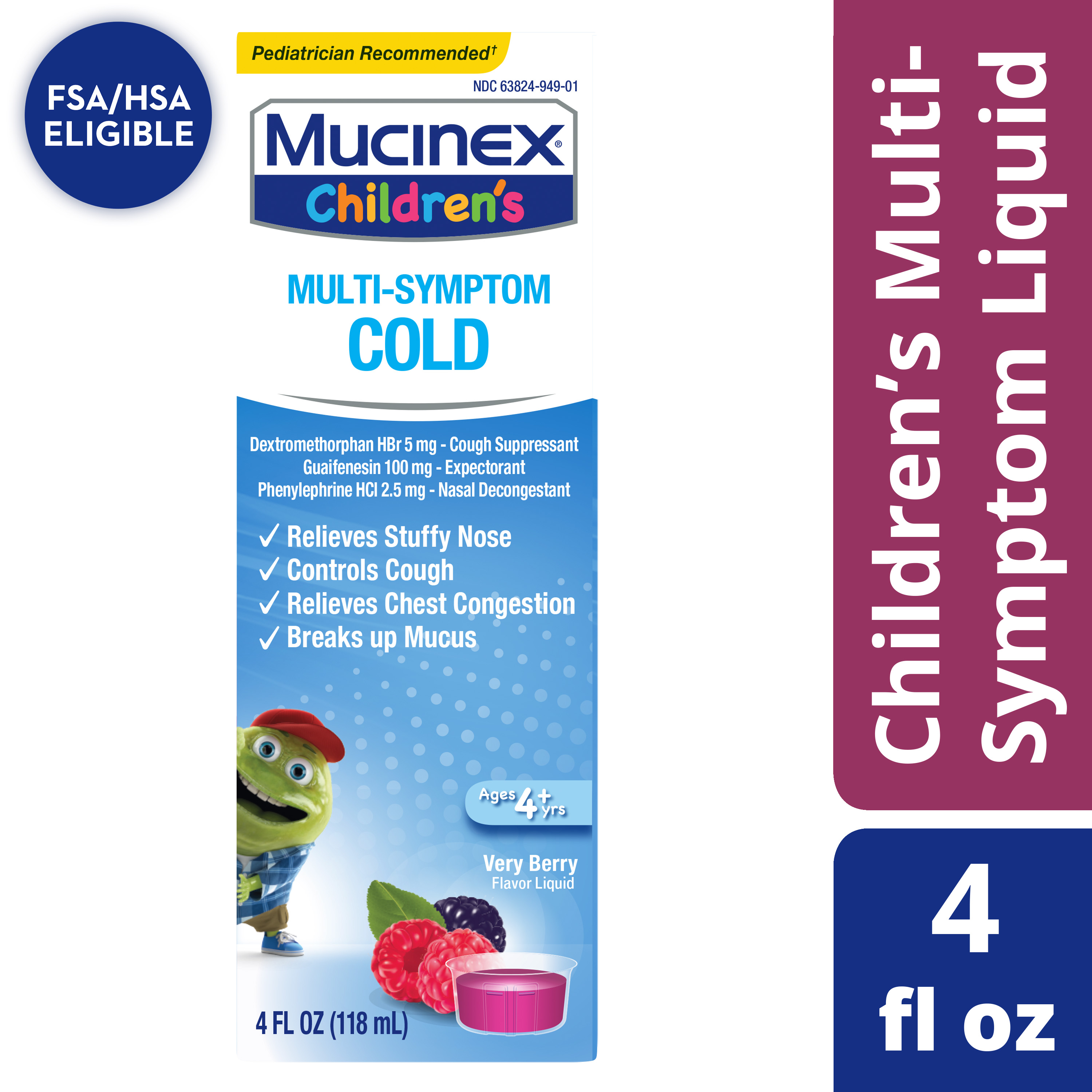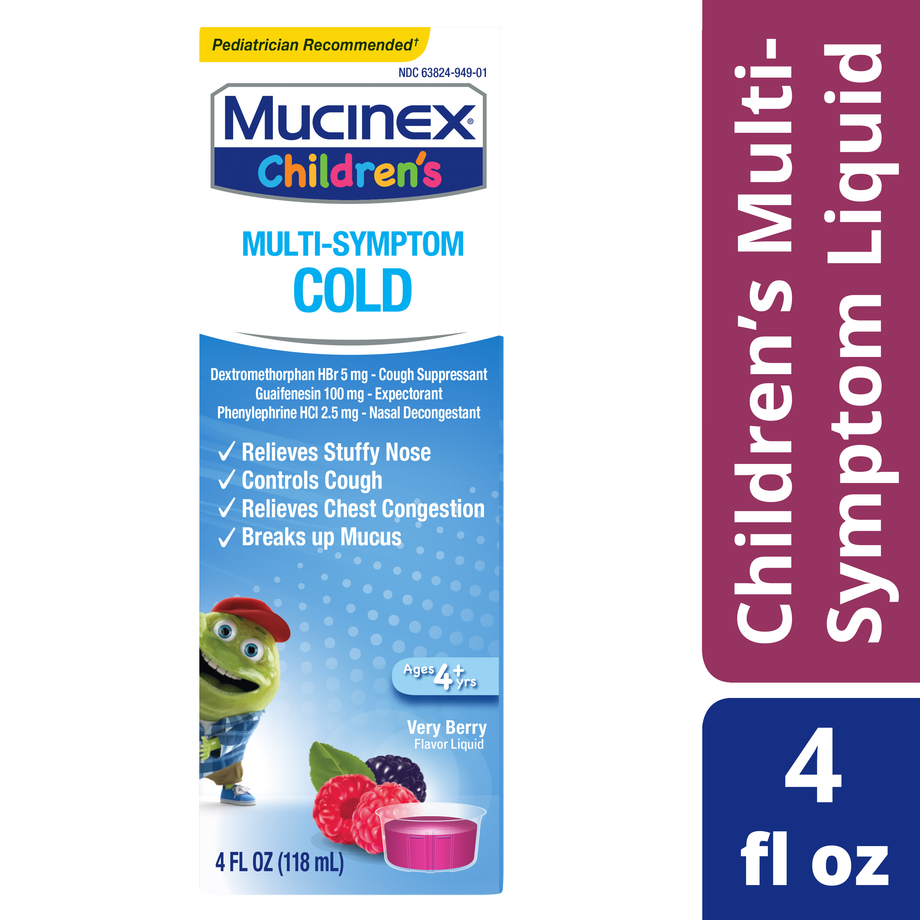 - BIG RELIEF FOR YOUR LITTLE ONE: Mucinex Children's Multi-Symptom Cold very berry flavored liquid is free of alcohol, sugar, and high fructose corn syrup