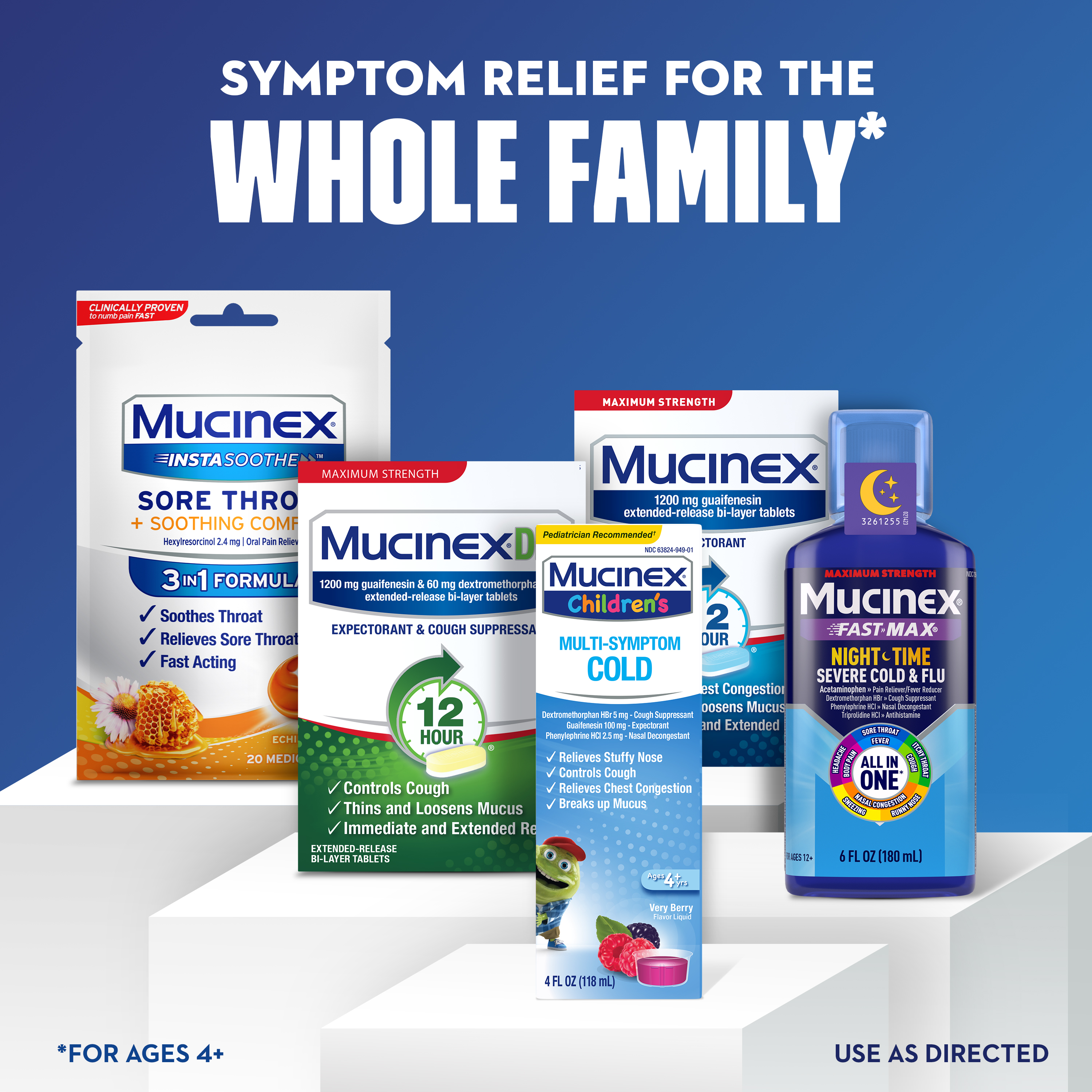 - MUCINEX CHILDREN'S LIQUID: Mucinex Children's Multi-Symptom Cold medicine is formulated for children 4 years of age and older; When your child is sick, give them real medicine for the symptom relief they deserve