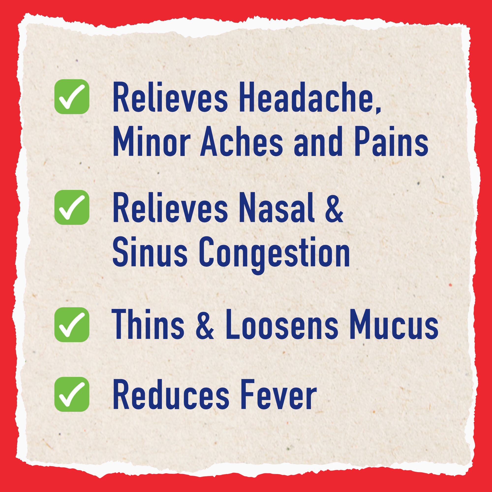 - EXPECTORANT: Contains Guaifenesin that thins and loosens mucus; relieves chest congestion