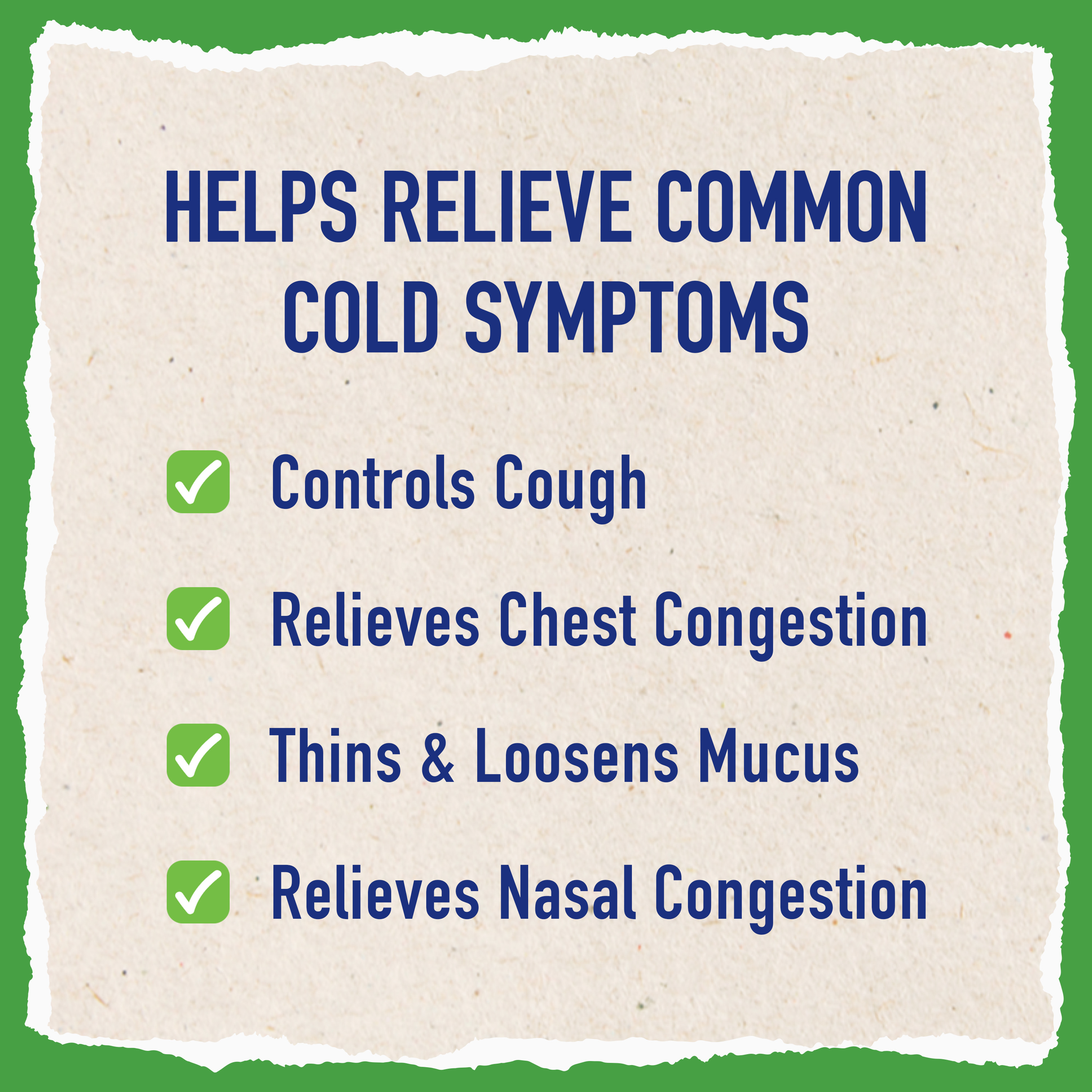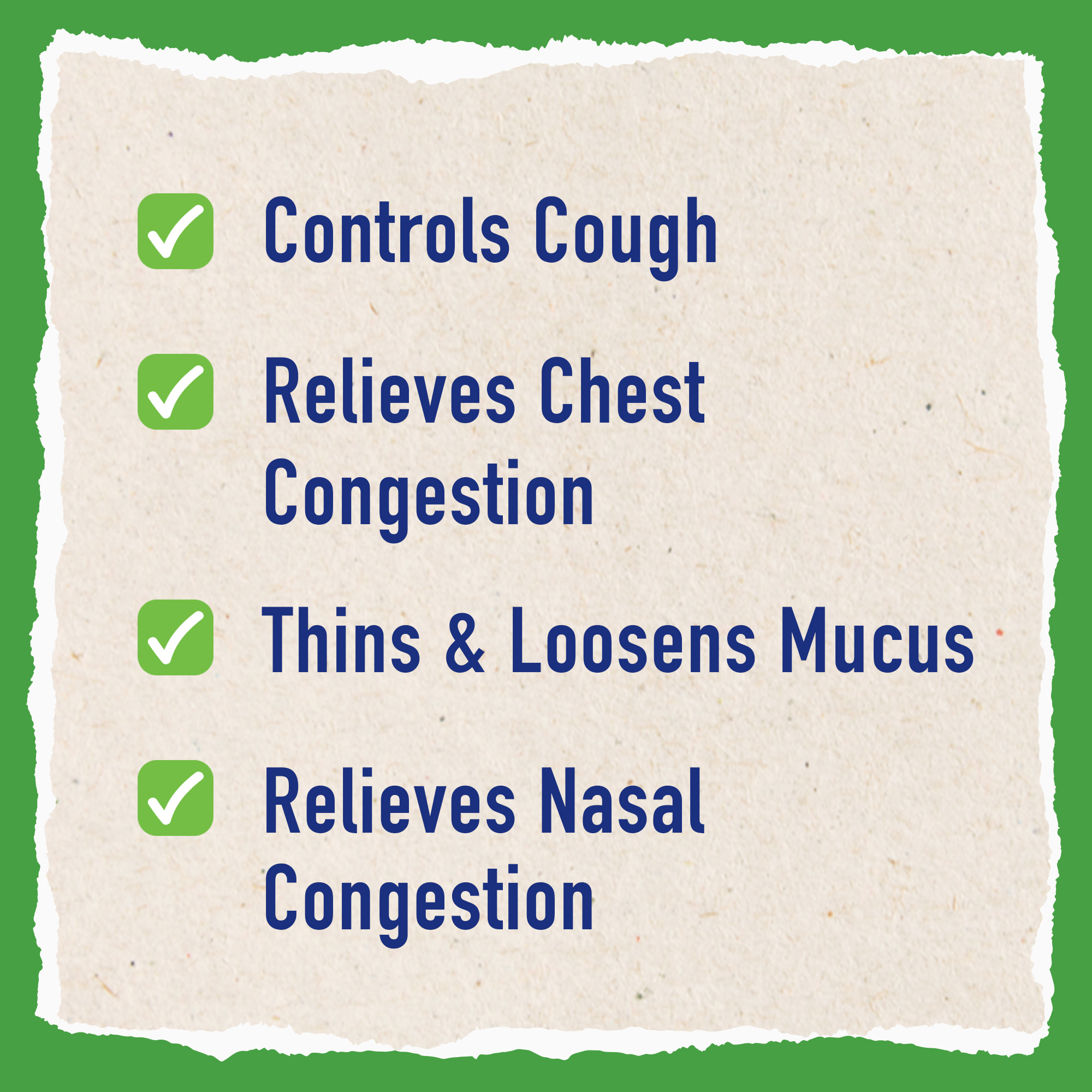 - EXPECTORANT: Contains Guaifenesin that thins and loosens mucus; relieves chest congestion