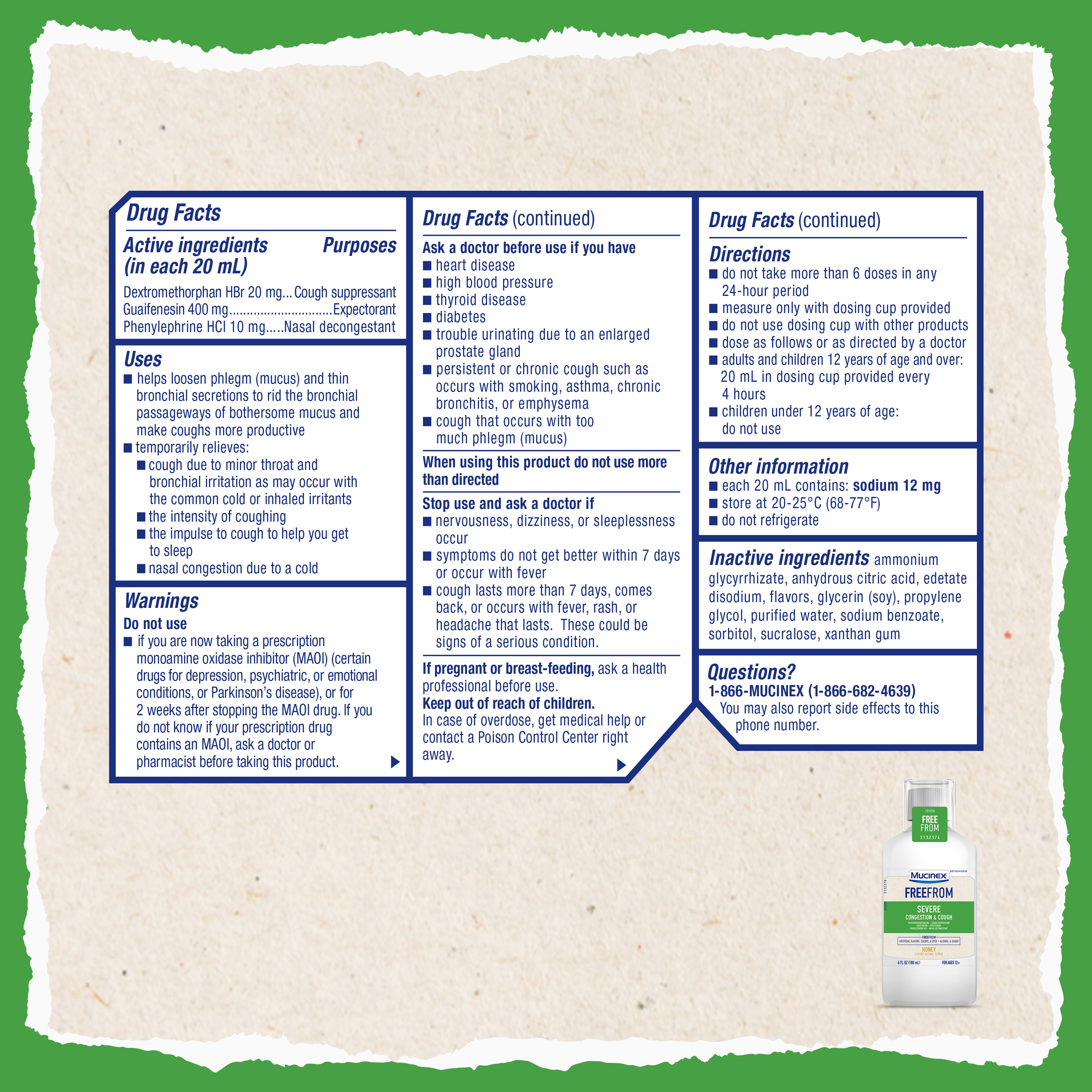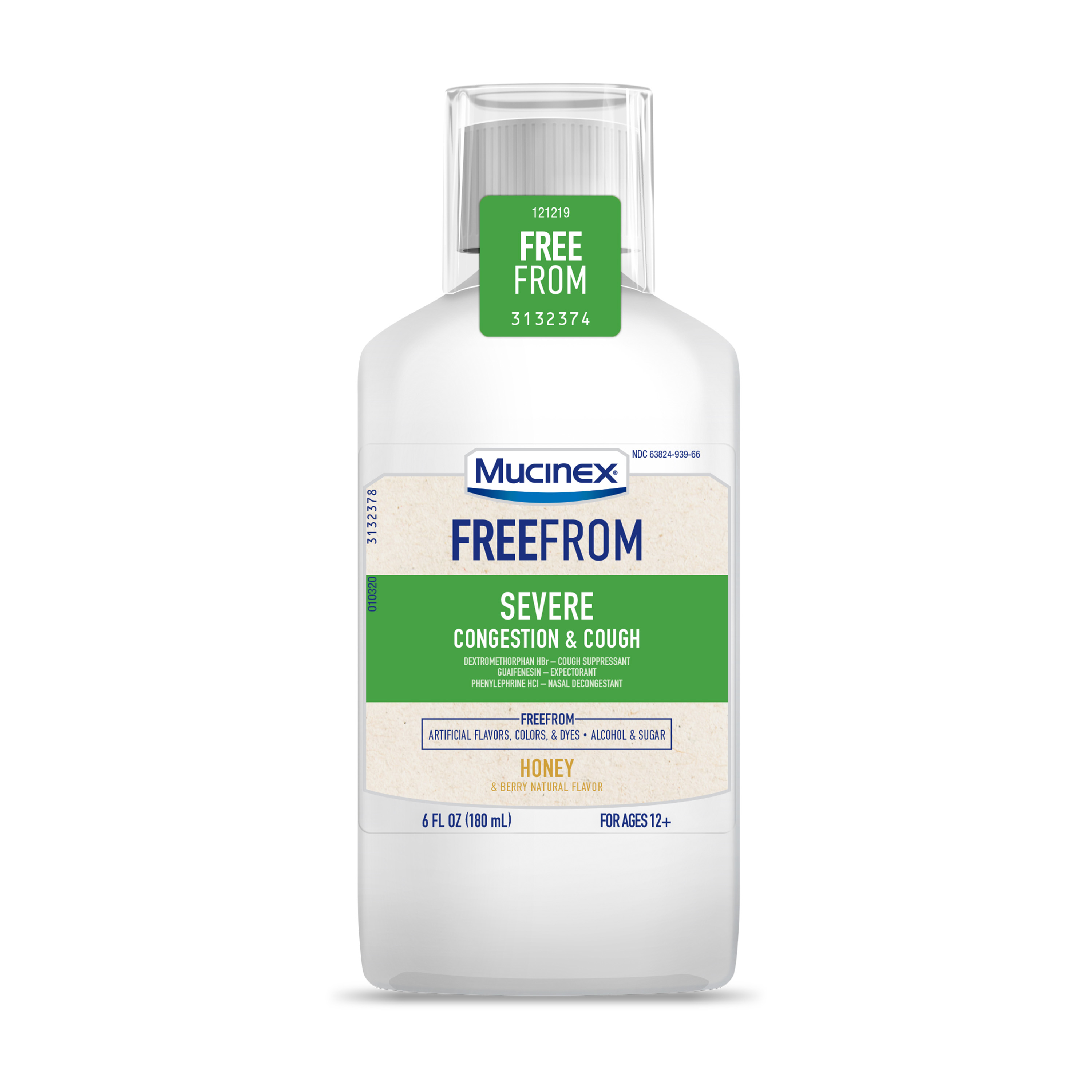 | Amazon Title | Mucinex FreeFrom Severe Congestion & Cough, Multi-Symptom Relief, Cough Suppressant, Expectorant and Nasal Decongestant, No Unwanted Additives, Honey & Berry Natural Flavor, 6 FL OZ |