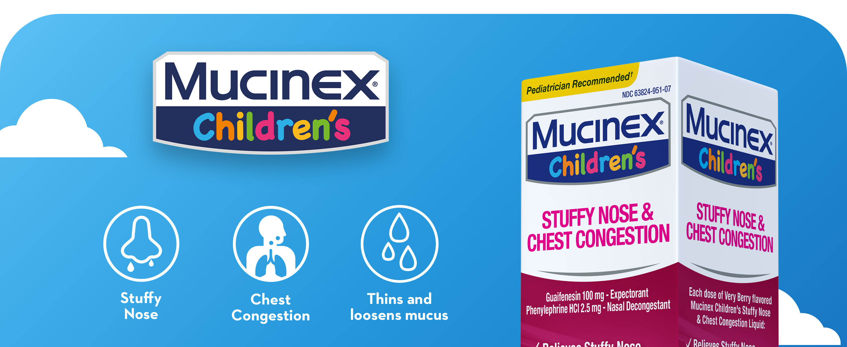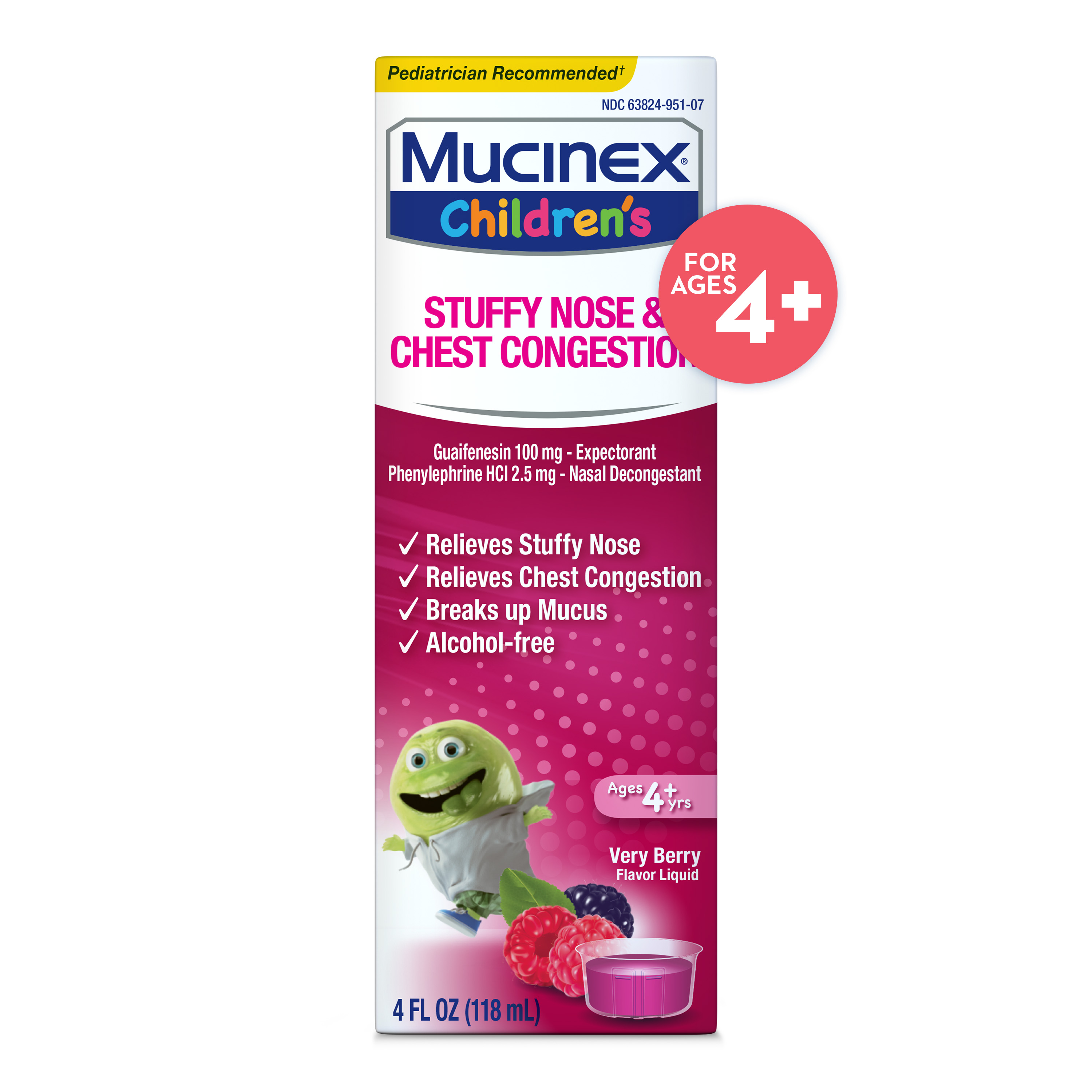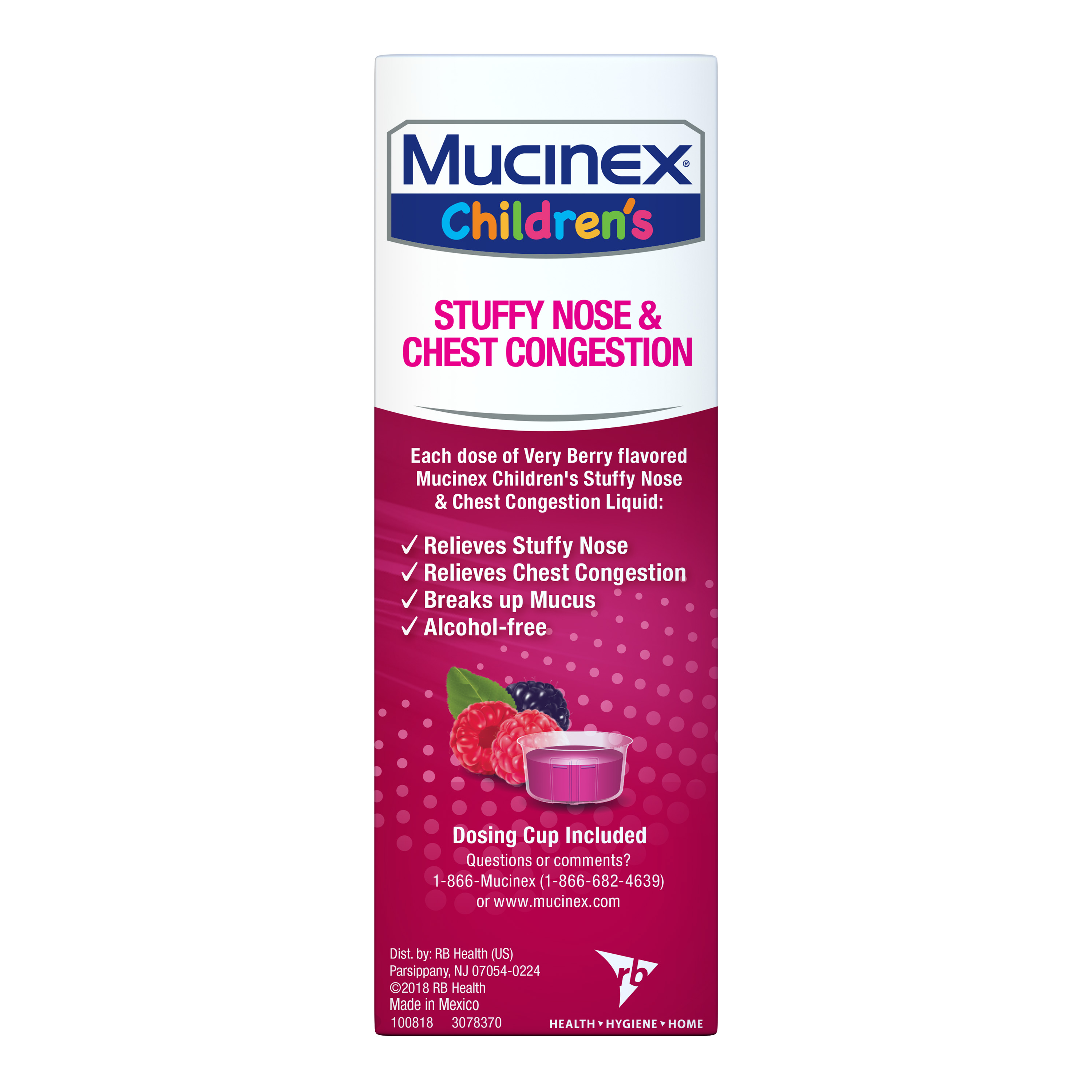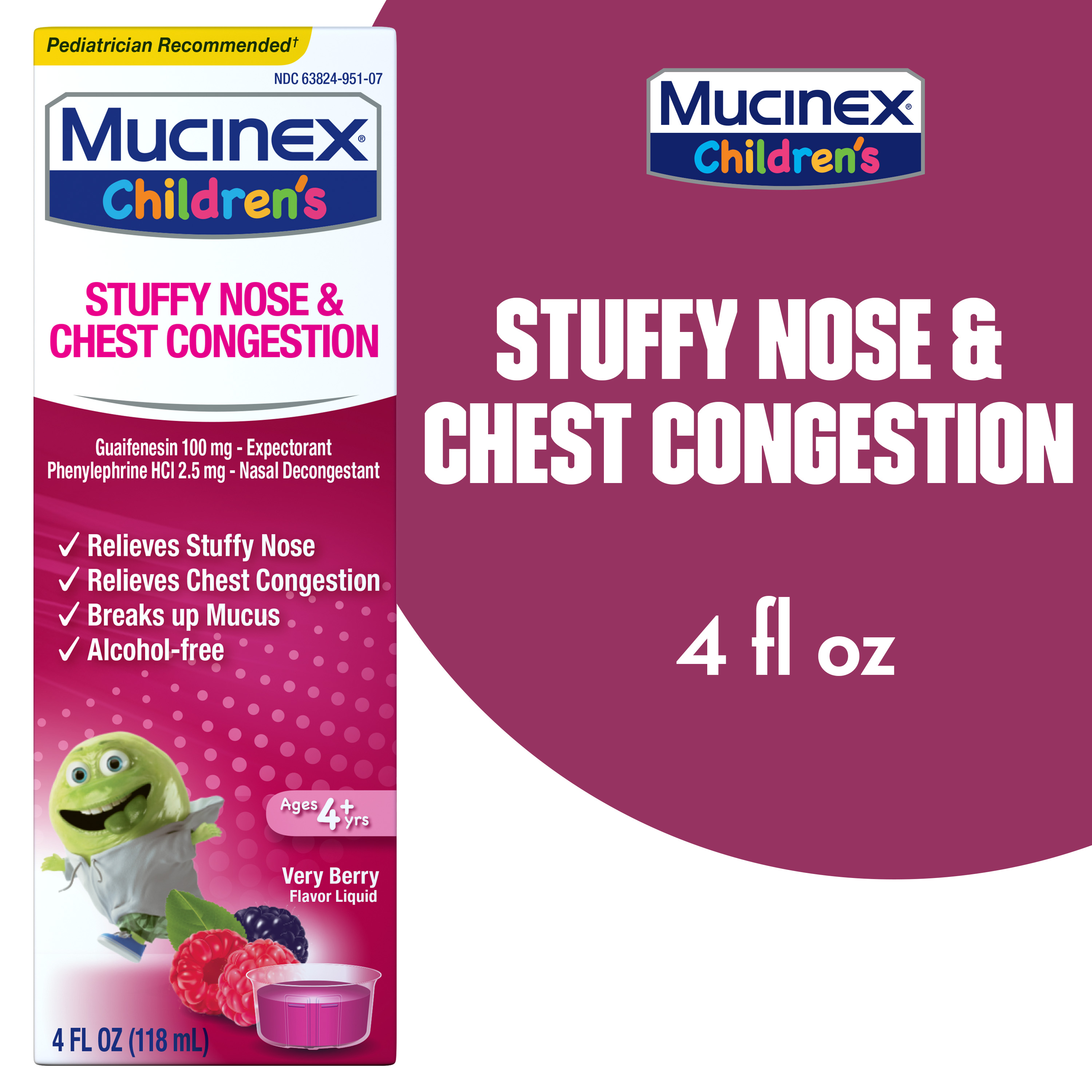 - MULTI-SYMPTOM RELIEF: Mucinex Children’s Stuffy Nose & Chest Congestion thins and loosens mucus, relieves chest congestion and stuffy nose