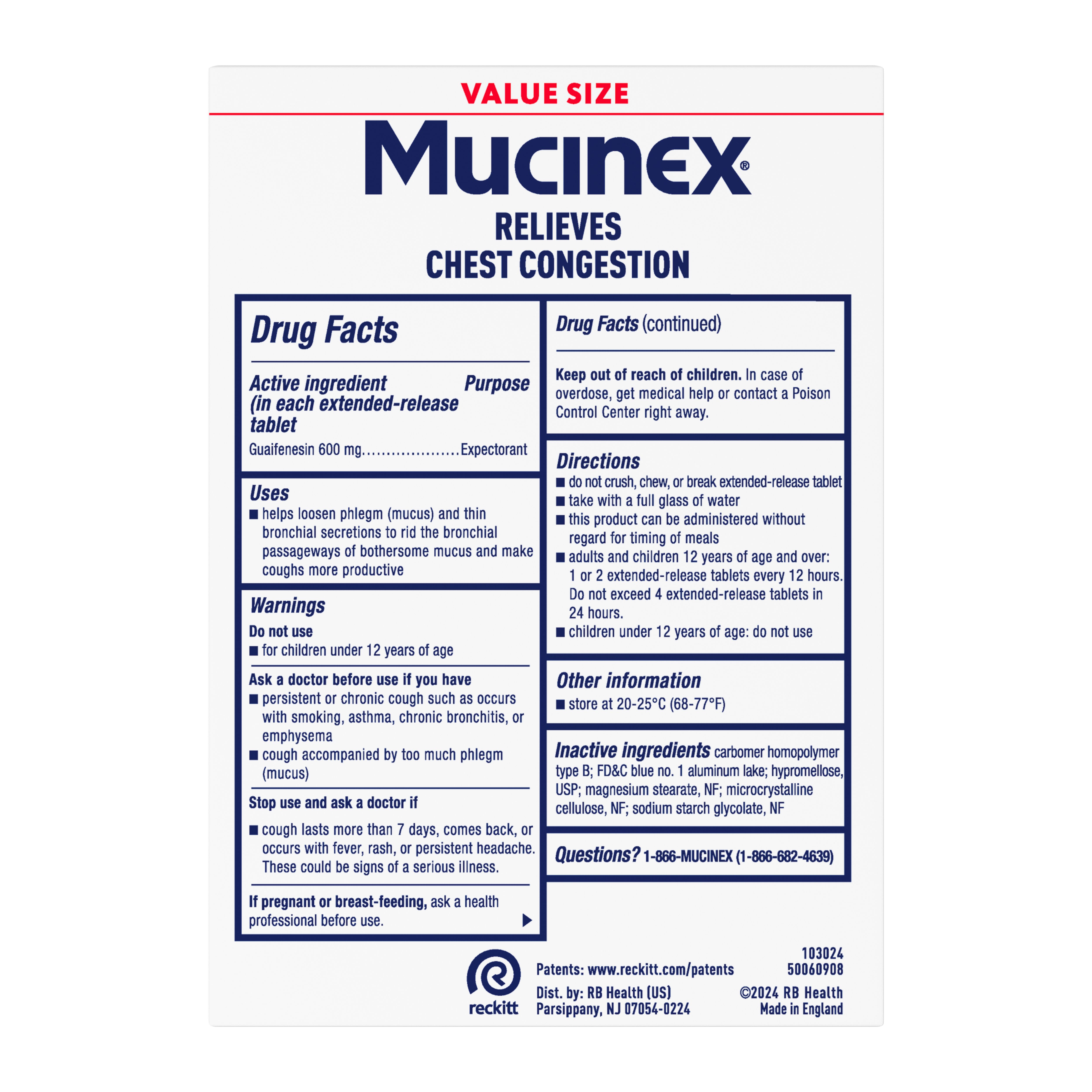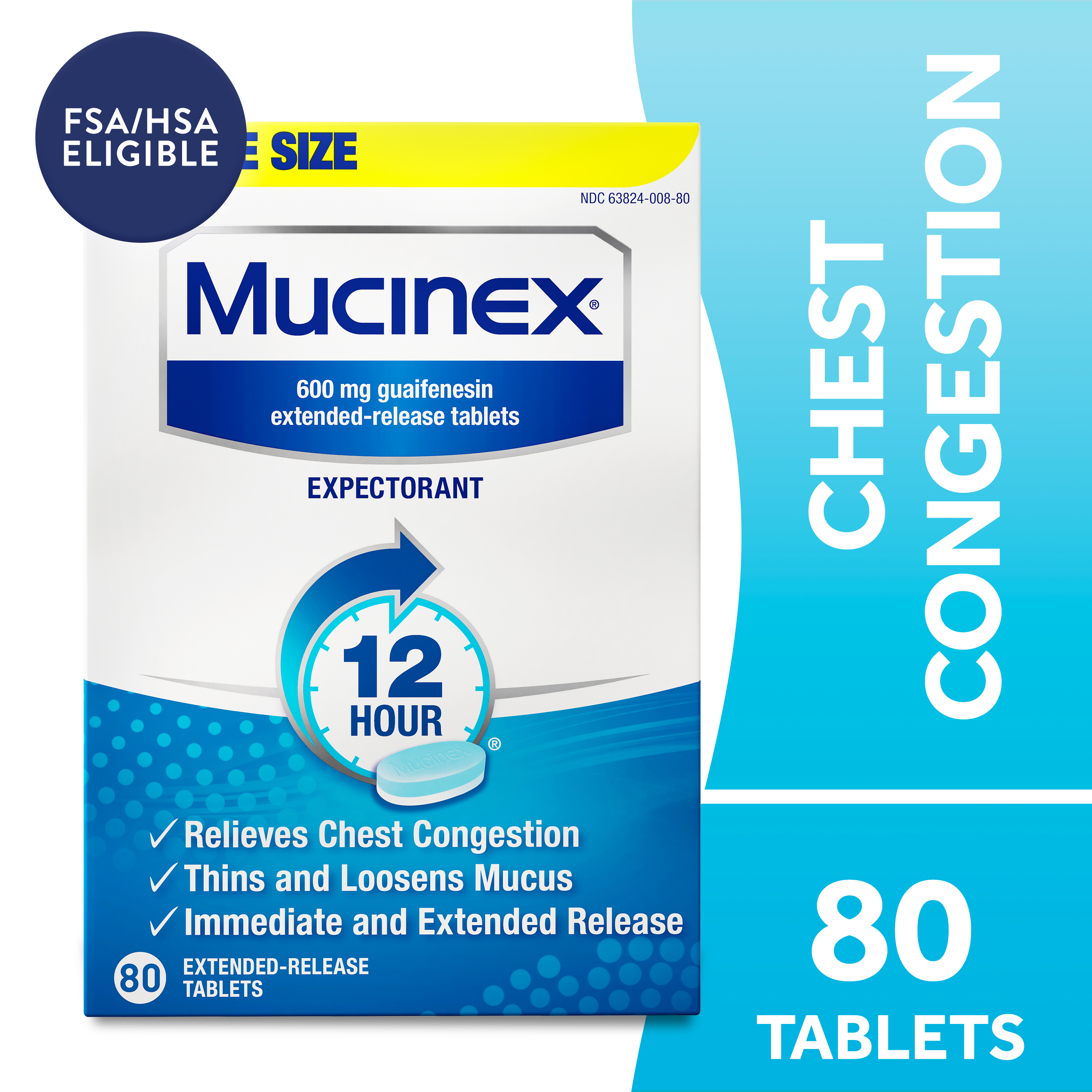 - EXCESS MUCUS RELIEF: Mucinex 12hr extended-release tablets pack a powerful punch with 600 mg guaifenesin expectorant, providing you with long-lasting chest congestion relief
