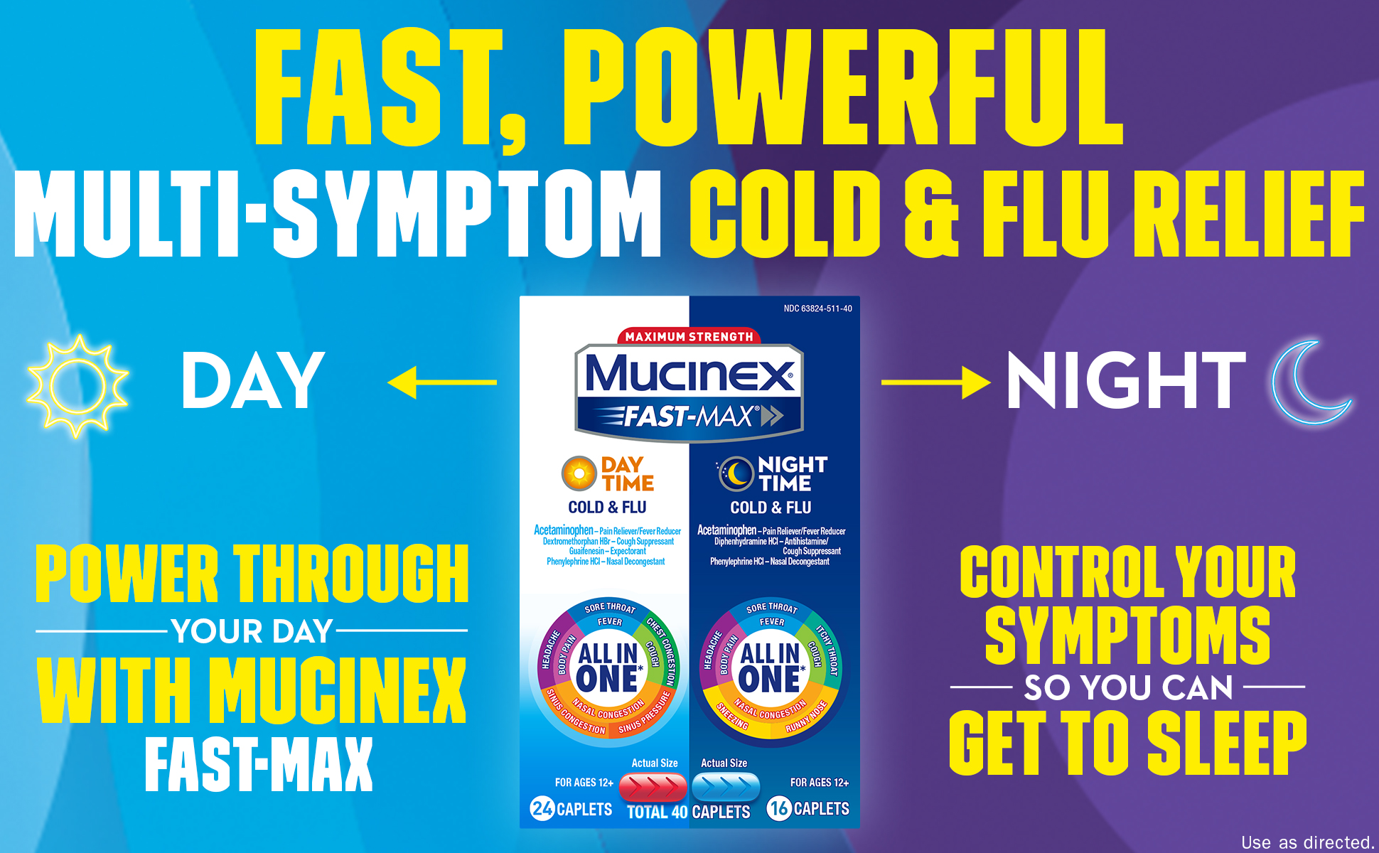 NIGHT TIME SYMPTOMS ALLEVIATED: Mucinex Fast-Max Night time Cold & Flu is All-in-One solution to relieve 9 symptoms - Fever, Cough, Nasal Congestion, Body pain, Sore Throat, Itchy Throat, Runny nose, Sneezing and Headache