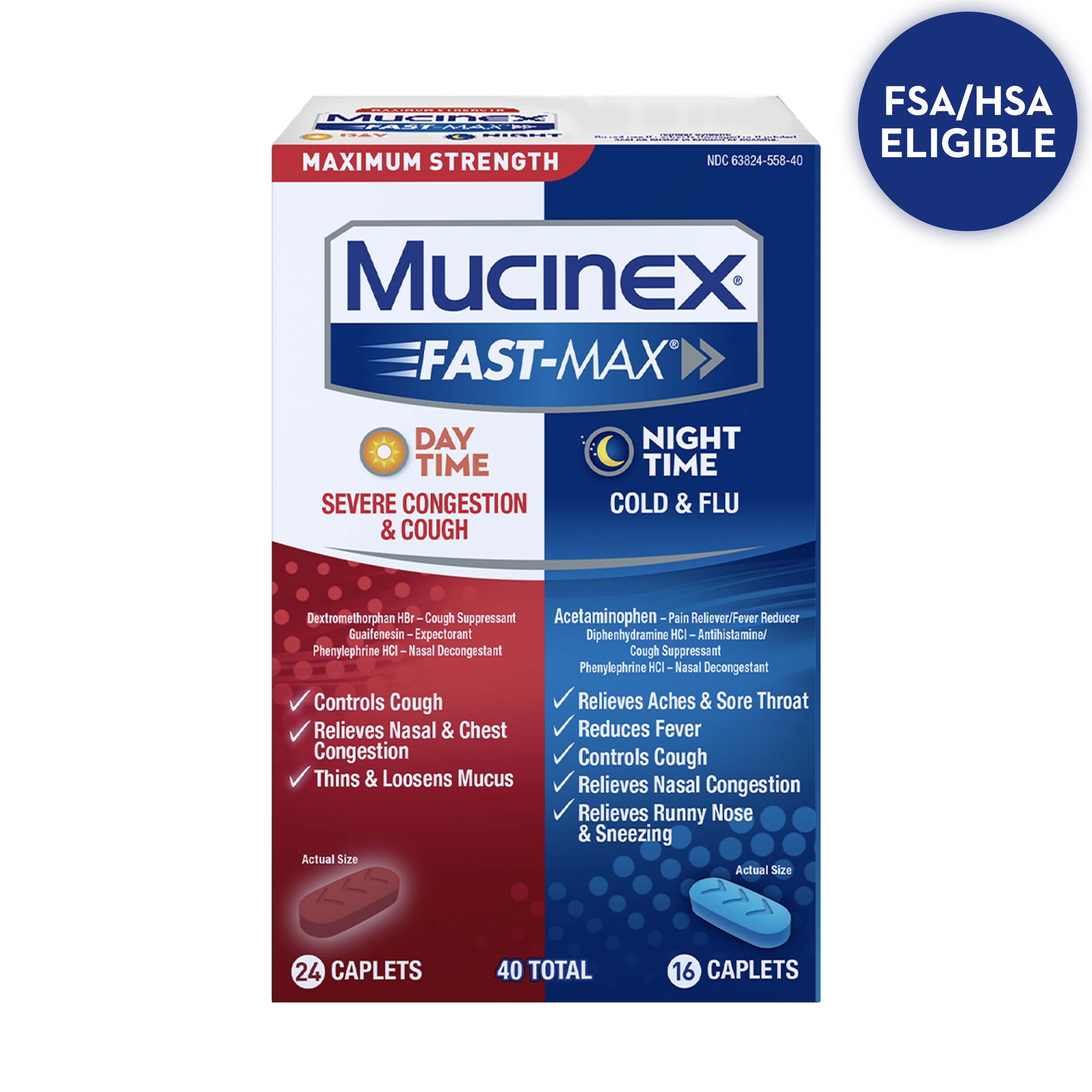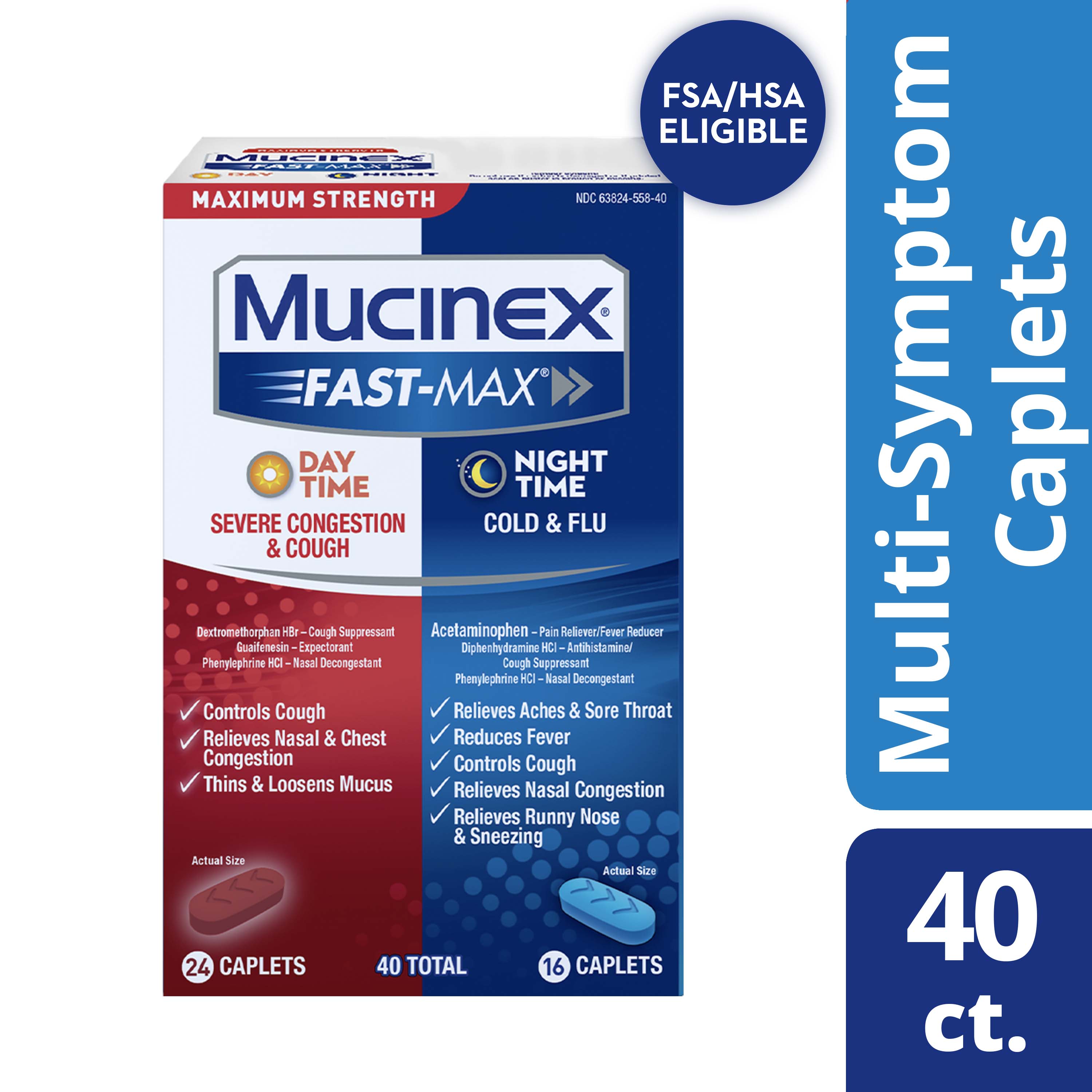 MUCINEX® FAST-MAX® Caplets - Day Night Severe Congestion & Cough/Cold & Flu 6/40 ct.