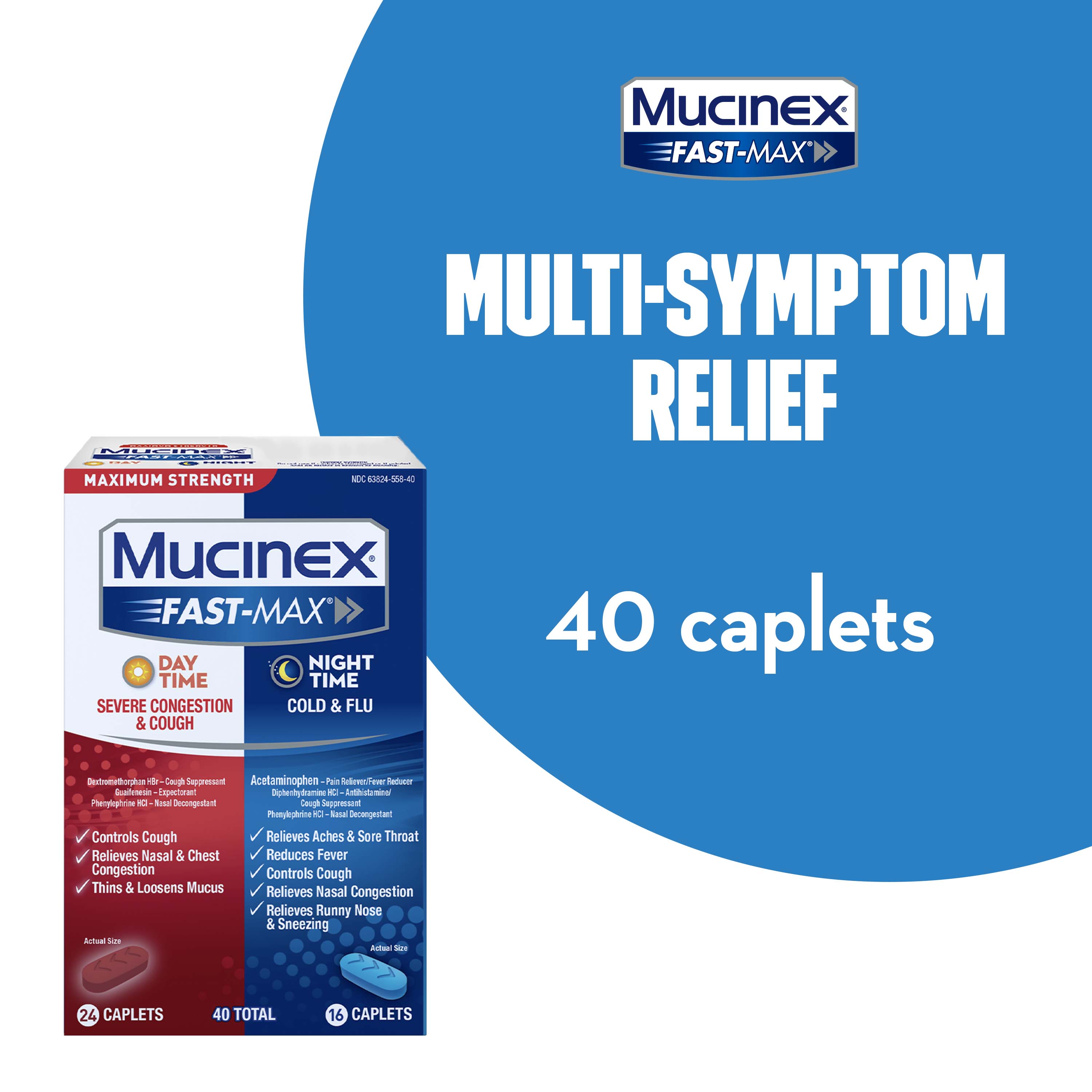 - MAXIMUM STRENGTH MUCINEX FAST-MAX: Multi-Symptom Relief medicine; get back to what’s important thanks to the fast, powerful medicine