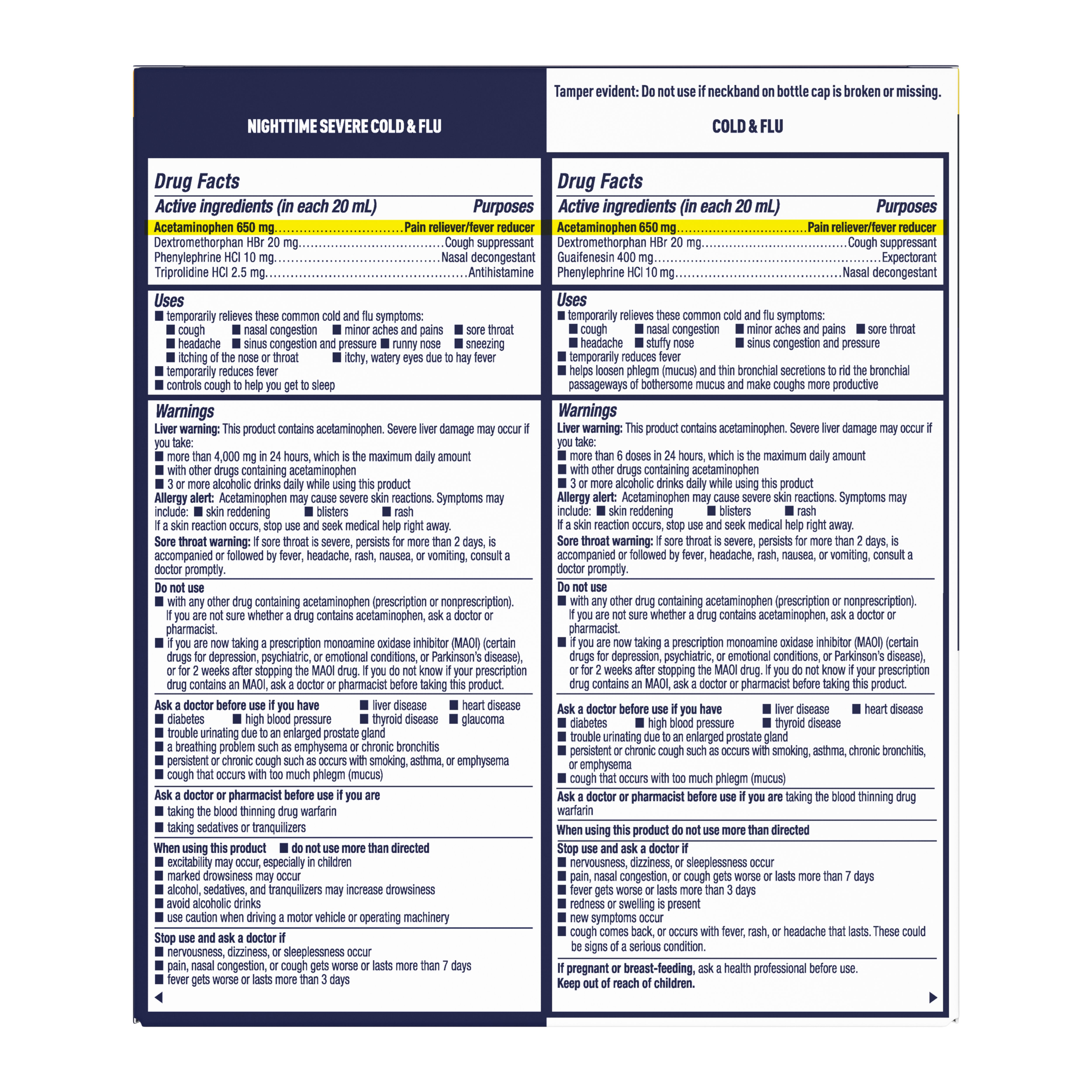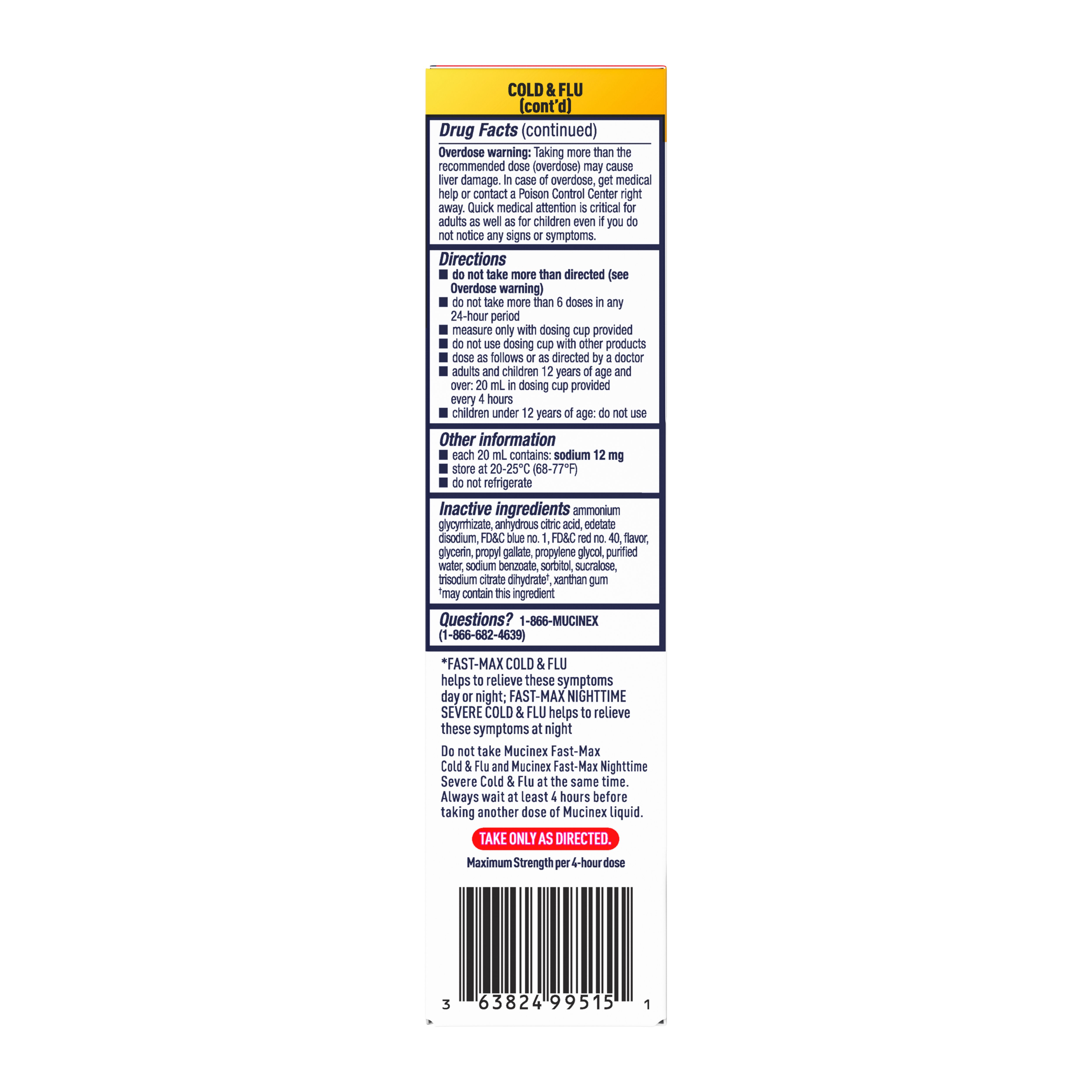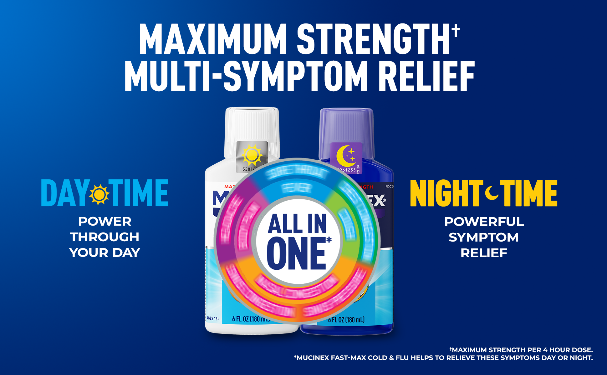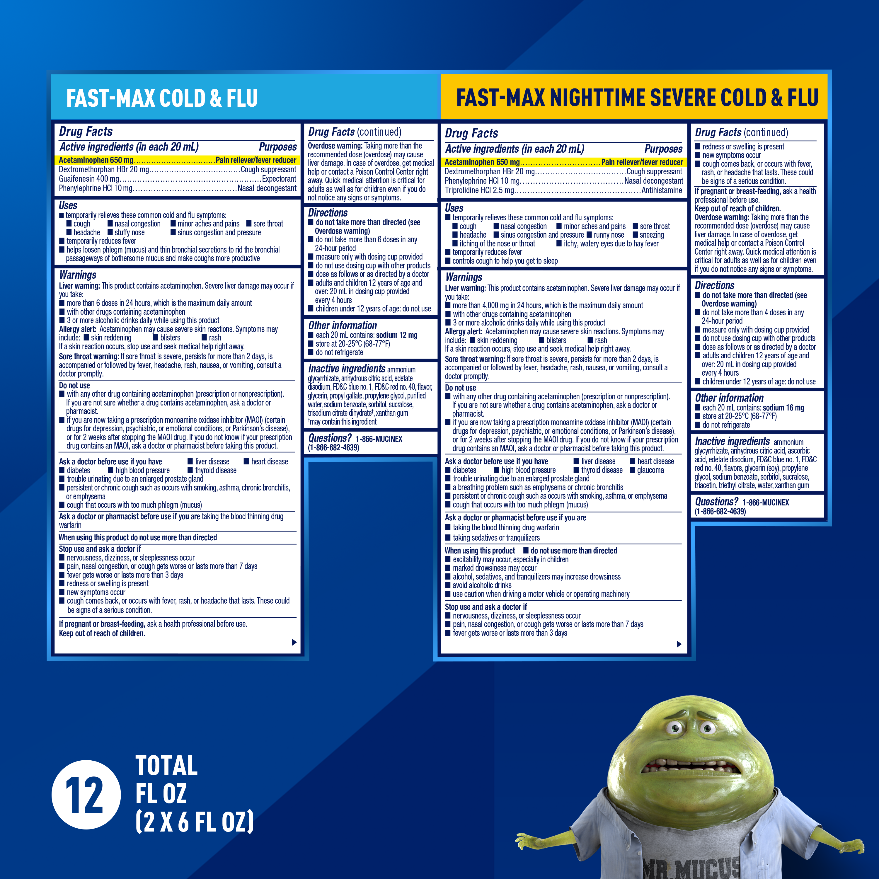 - COUGH COLD AND FLU MEDICINES FOR ADULTS: This combo pack of Maximum Strength Mucinex Fast-Max Cold & Flu and Nightshift Severe Cold & Flu provides powerful multi-symptom cold and flu relief for your worst cold and flu symptoms