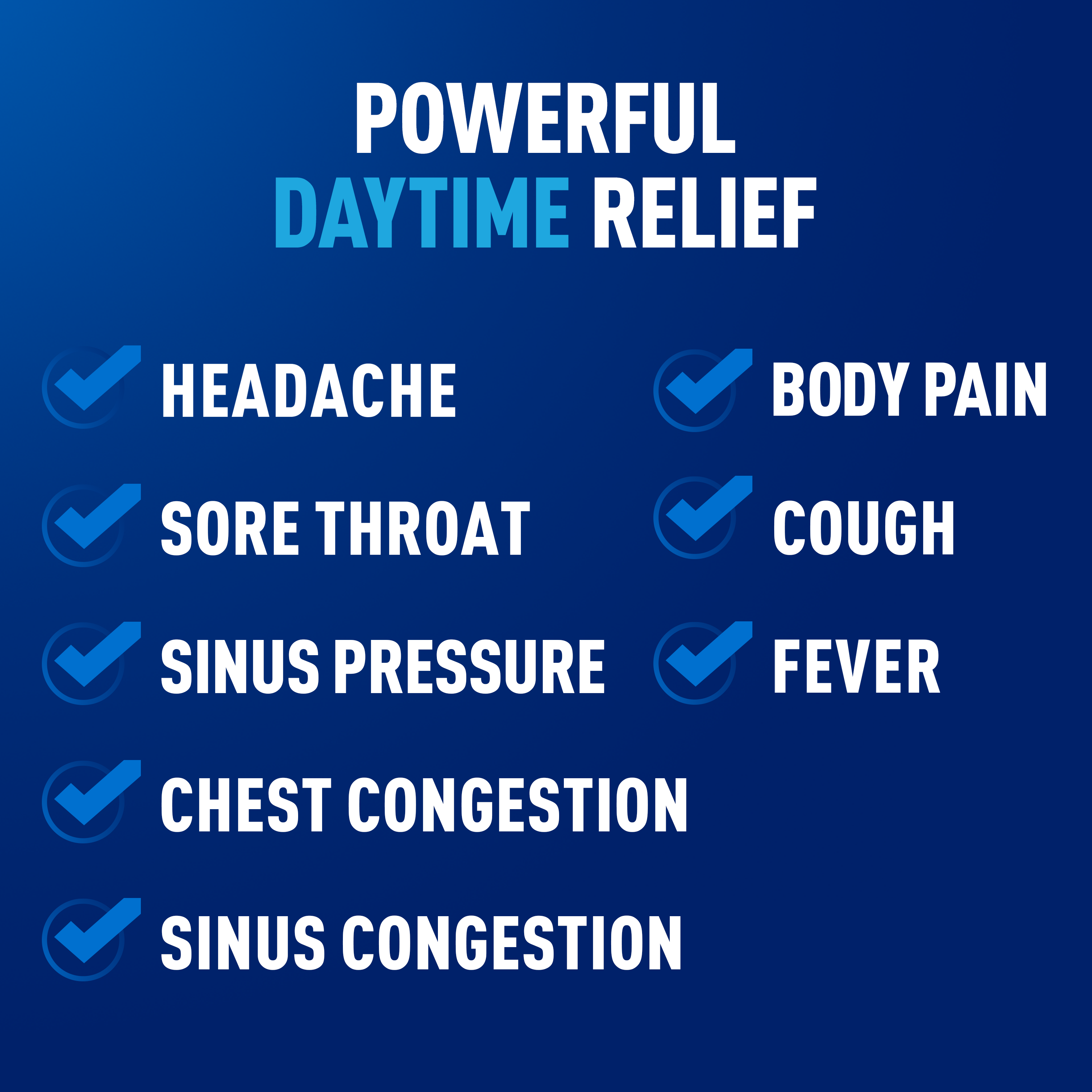 - CHEST CONGESTION RELIEF: Daytime liquid contains Guaifenesin, an expectorant, which helps relieve chest congestion and thins and loosens mucus