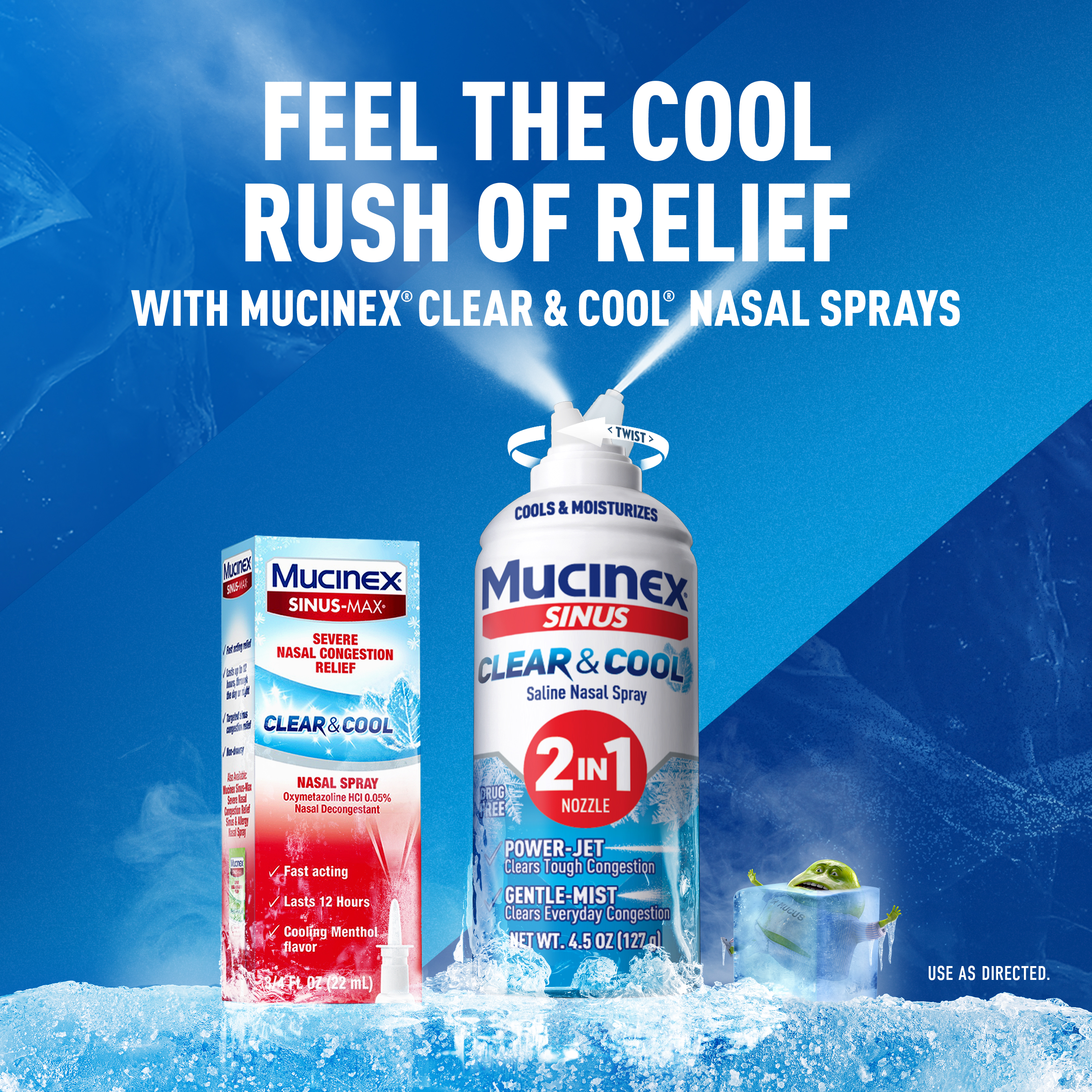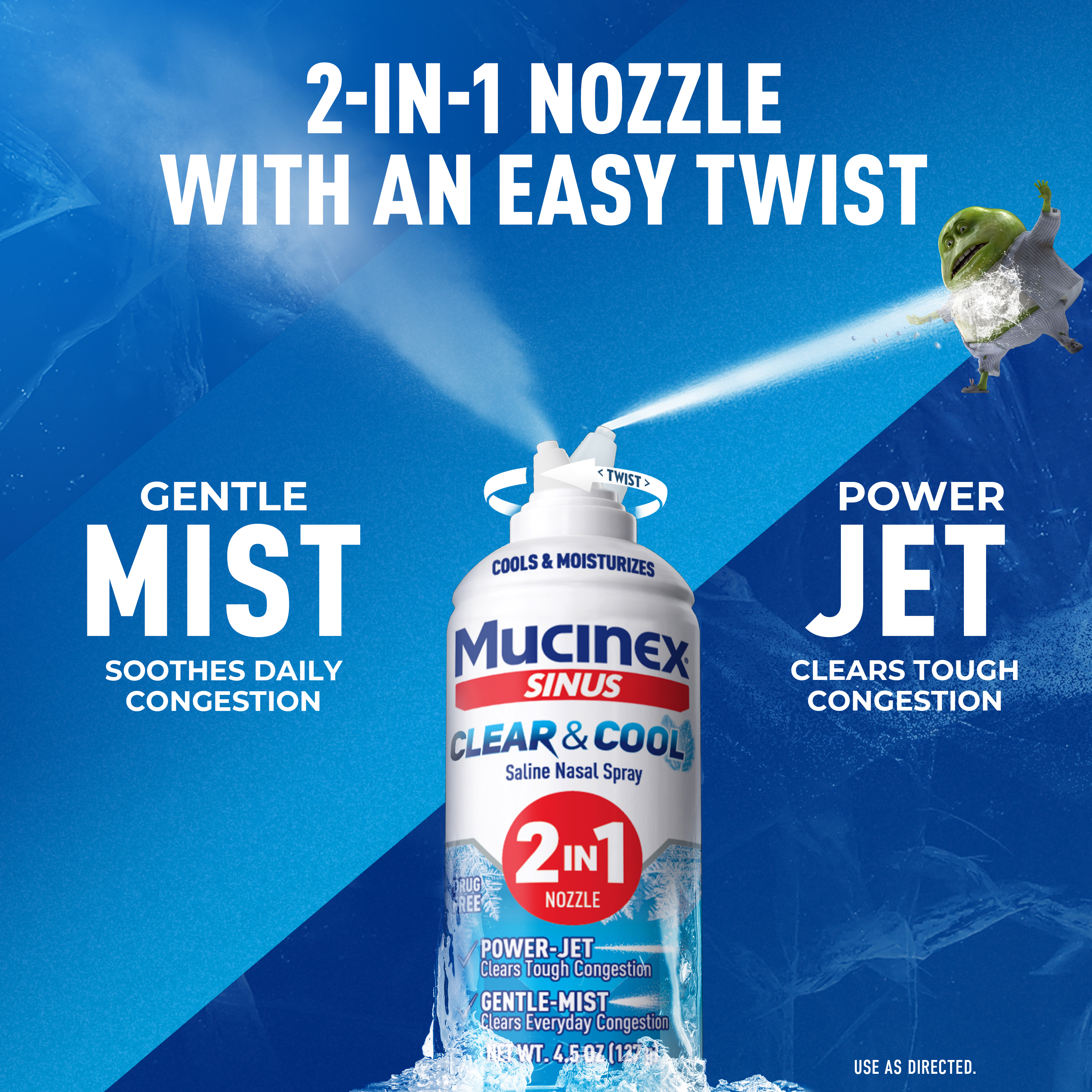 - SALINE NASAL SPRAY: Mucinex Sinus Clear & Cool Saline Nasal Spray helps clear congestion associated with colds & year-round allergies; Our unique 2-in-1 nozzle features a powerful jet for tough congestion & a gentle mist for everyday congestion