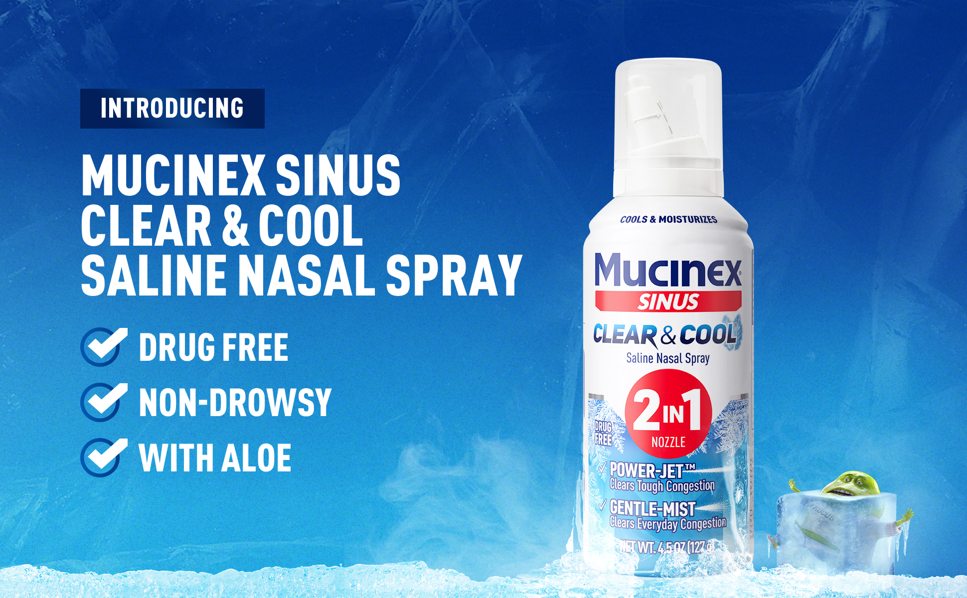 - COOLING NASAL CONGESTION RELIEF FOR ADULTS: Mucinex Sinus Clear & Cool Saline Nasal Spray contains menthol & aloe; Cools & soothes dry, irritated nasal passages