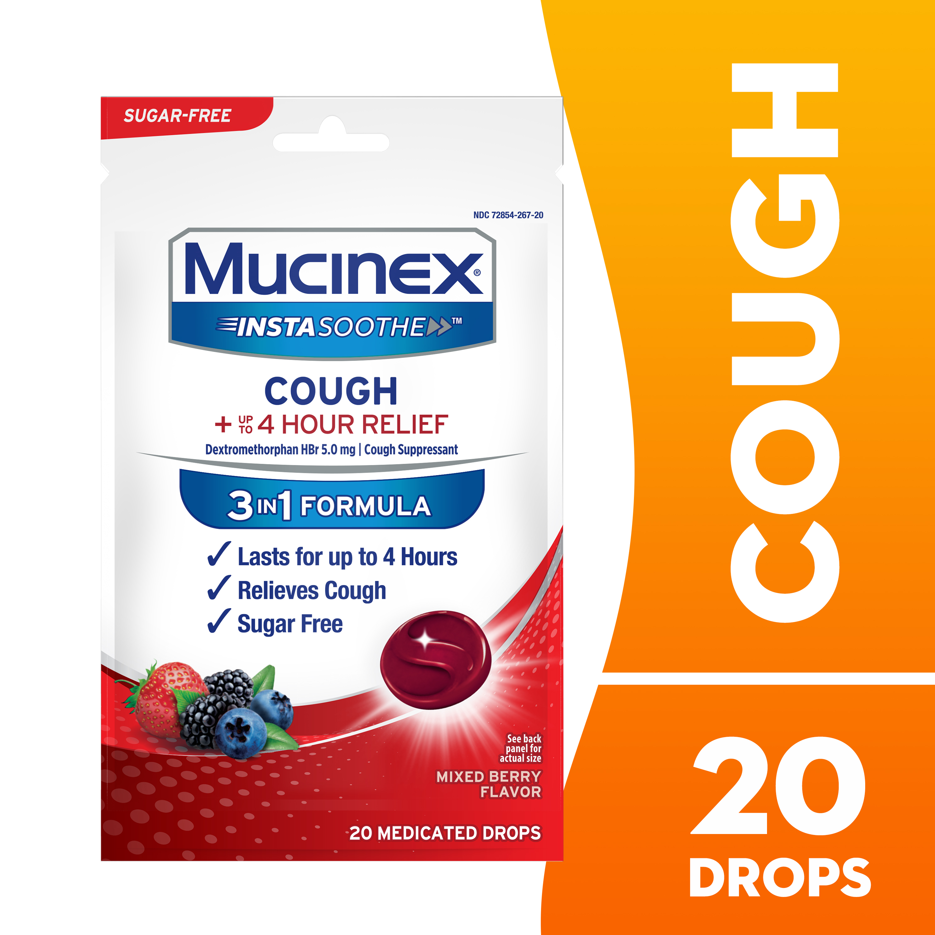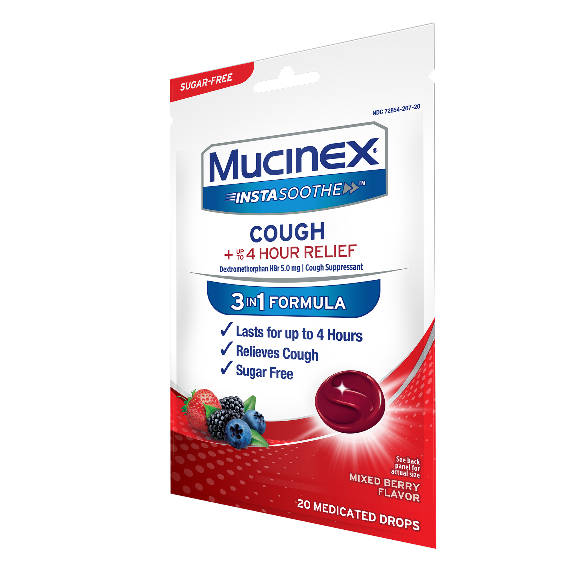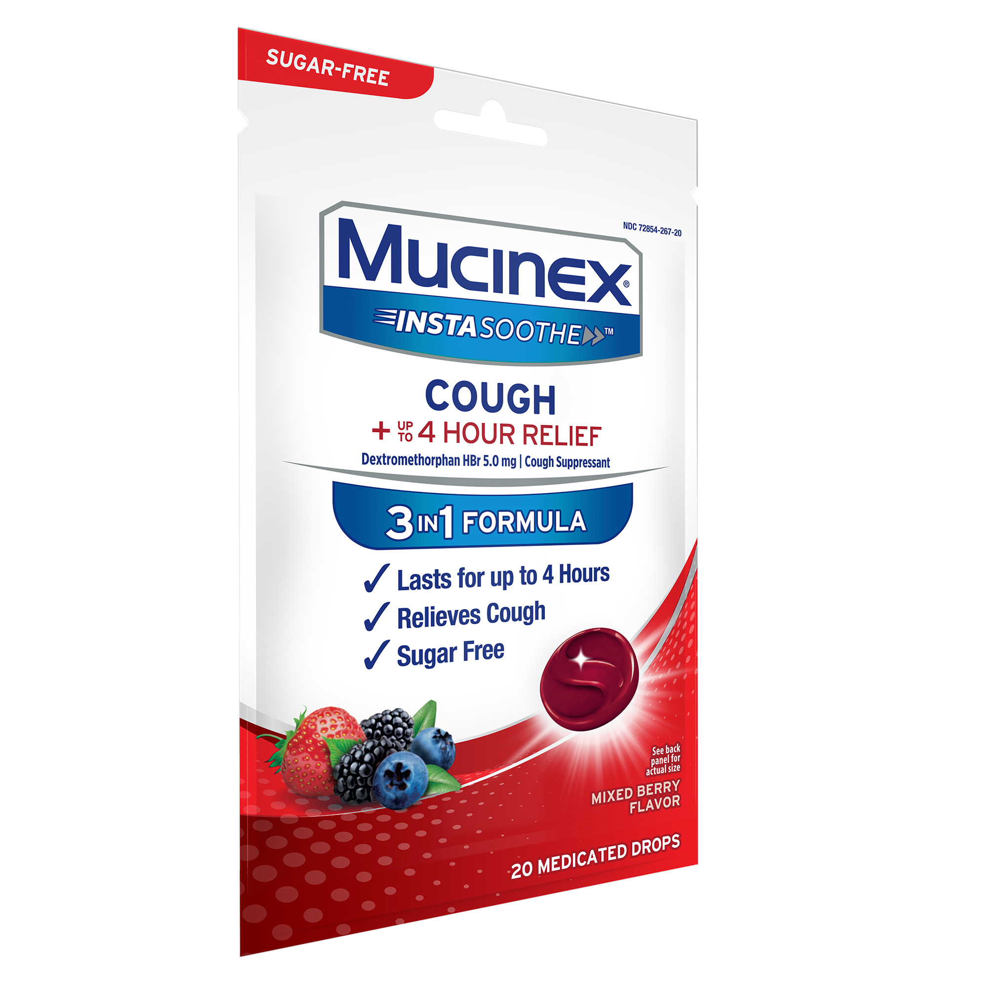 - SUGAR FREE COUGH DROPS: Mucinex Instasoothe Mixed Berry Medicated Cough Drops are sugar free and do not contain aspartame