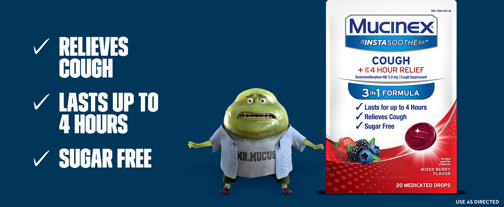 - BE PREPARED FOR COLD & FLU SEASON: Mucinex has a wide range of cough, cold and flu health care products to help your family get through cold & flu season, such as sore throat drops, sore throat spray, cold medicine, and cough medicine