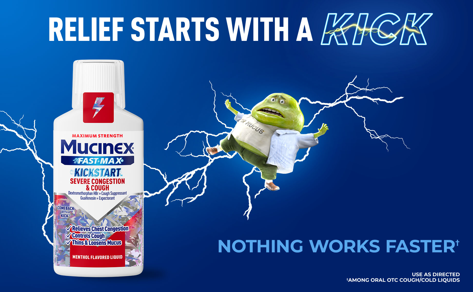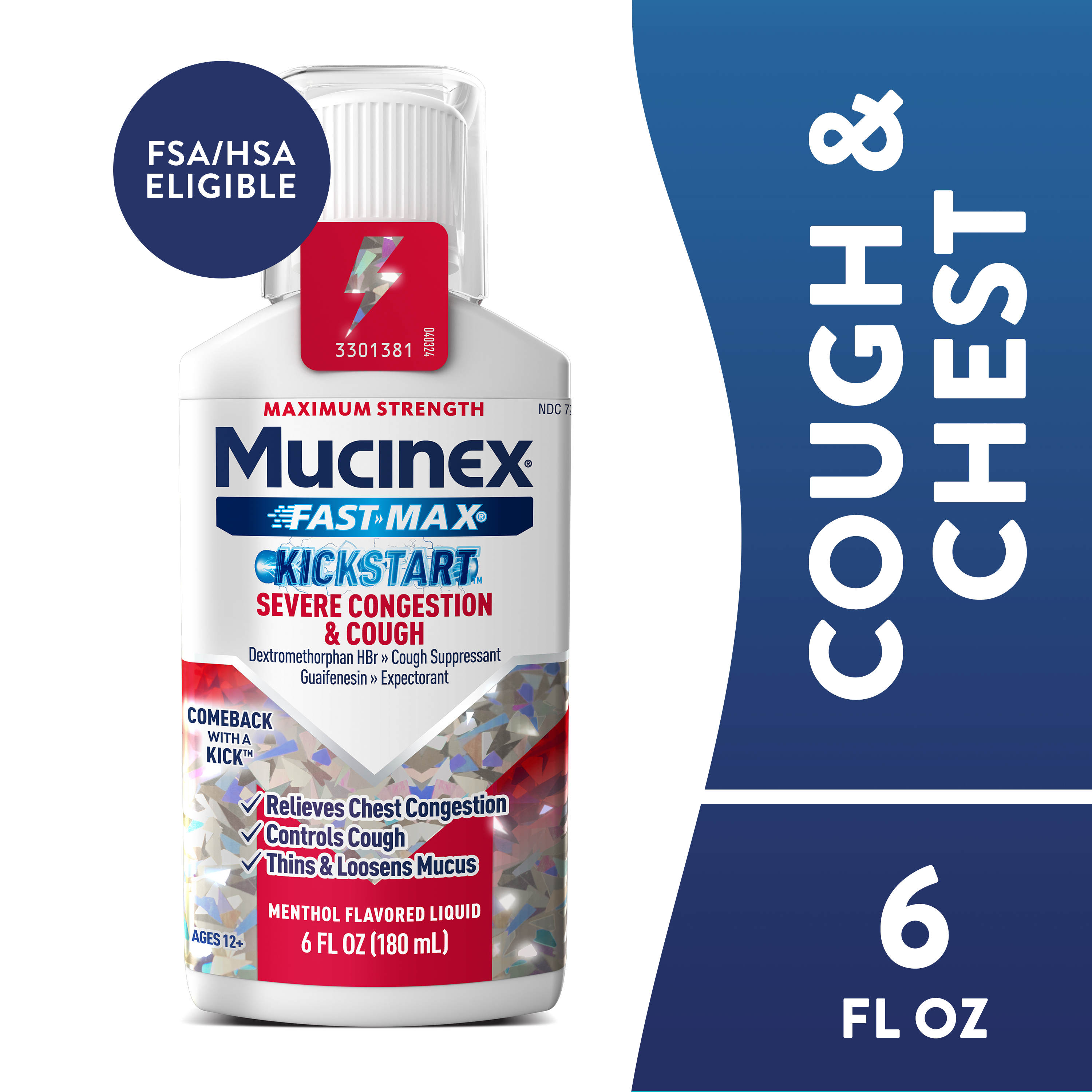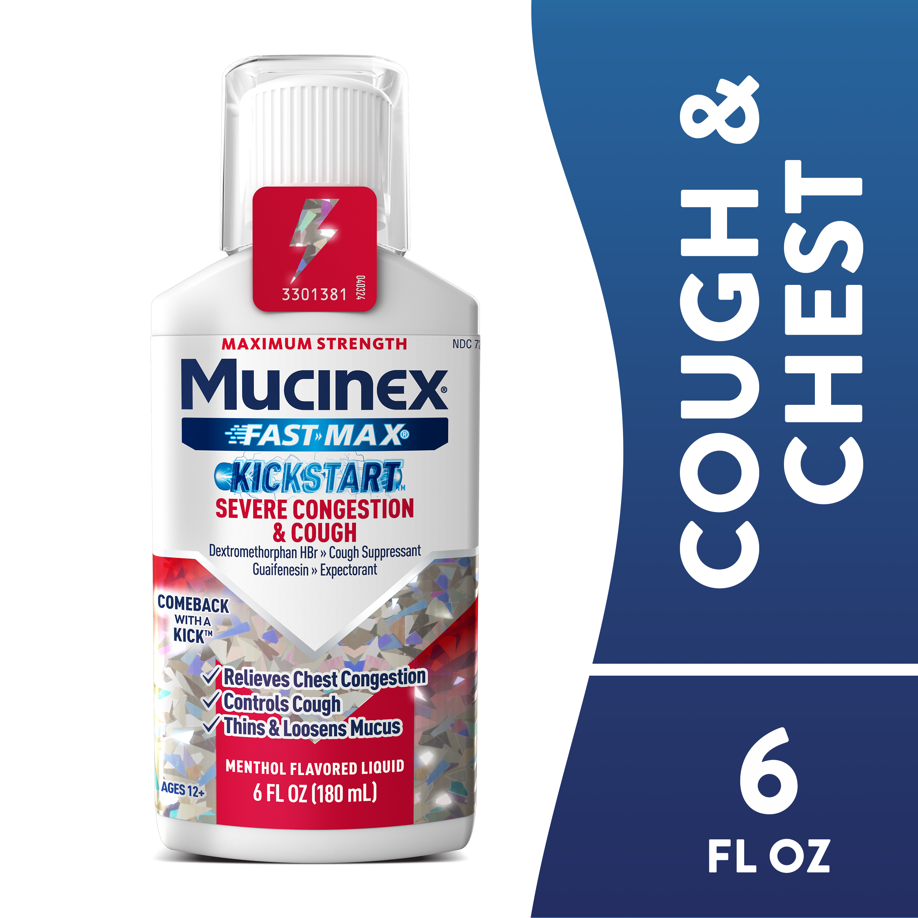 - OVER-THE-COUNTER MEDICATION: Mucinex® Fast-Max Kickstart Severe Congestion & Cough contains active ingredients to help you feel better; Dextromethorphan HBr is a cough suppressant and Guaifenesin is an expectorant; Use as directed; For ages 12+