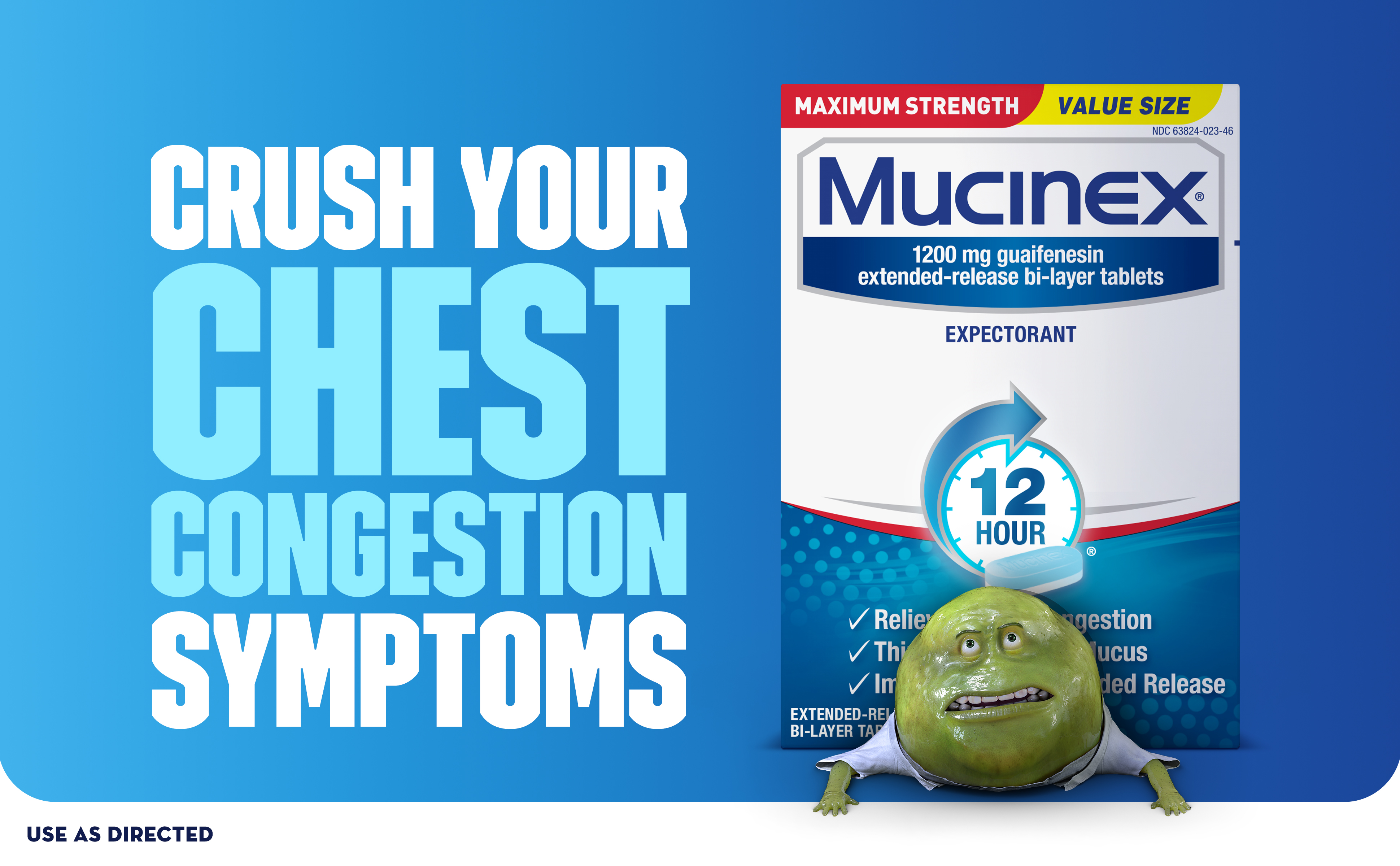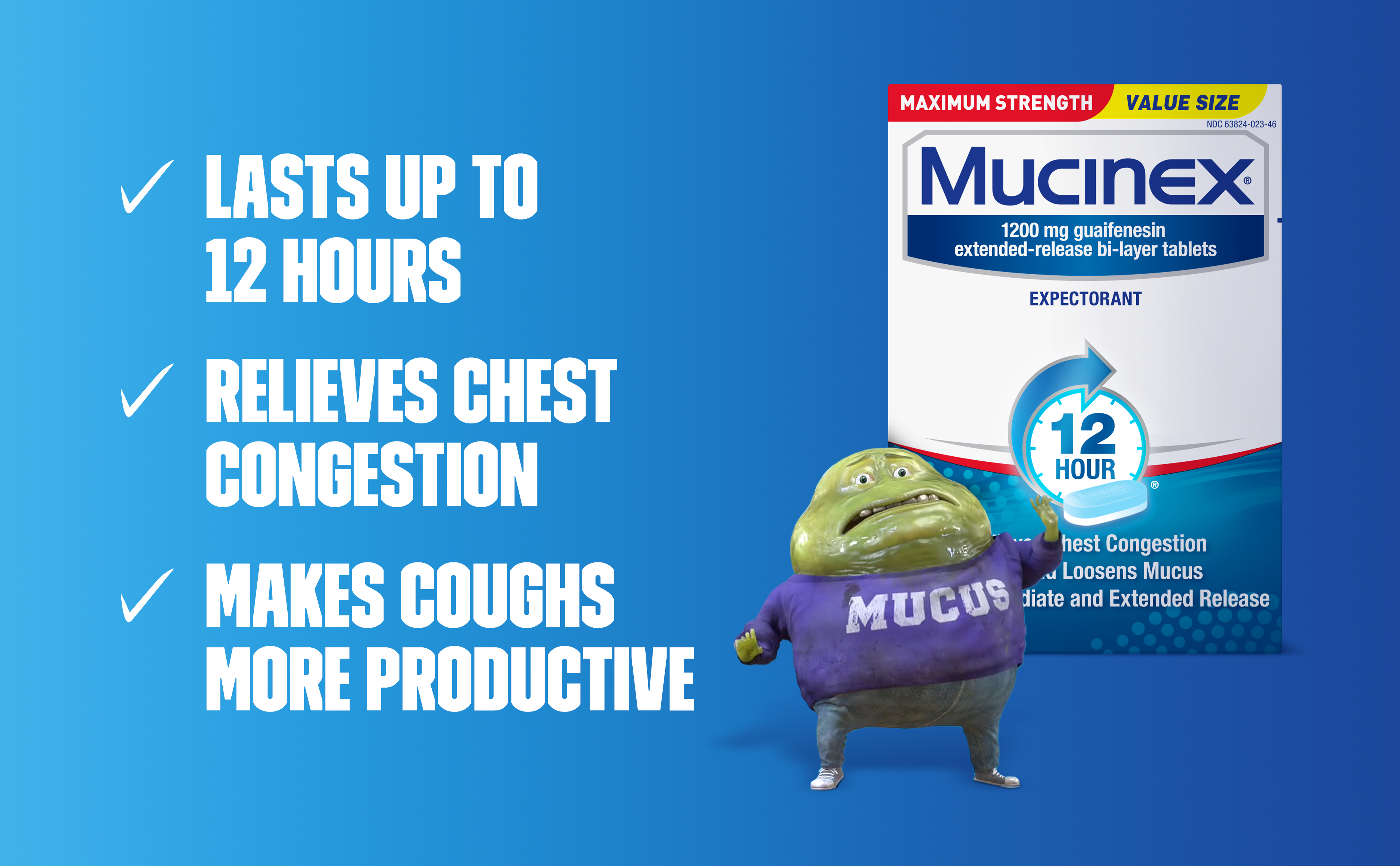 - EXPECTORANTS FOR ADULTS: Mucinex 12Hr helps clear lungs by thinning & loosening mucus; Say goodbye to excess mucus, say hello to chest congestion relief