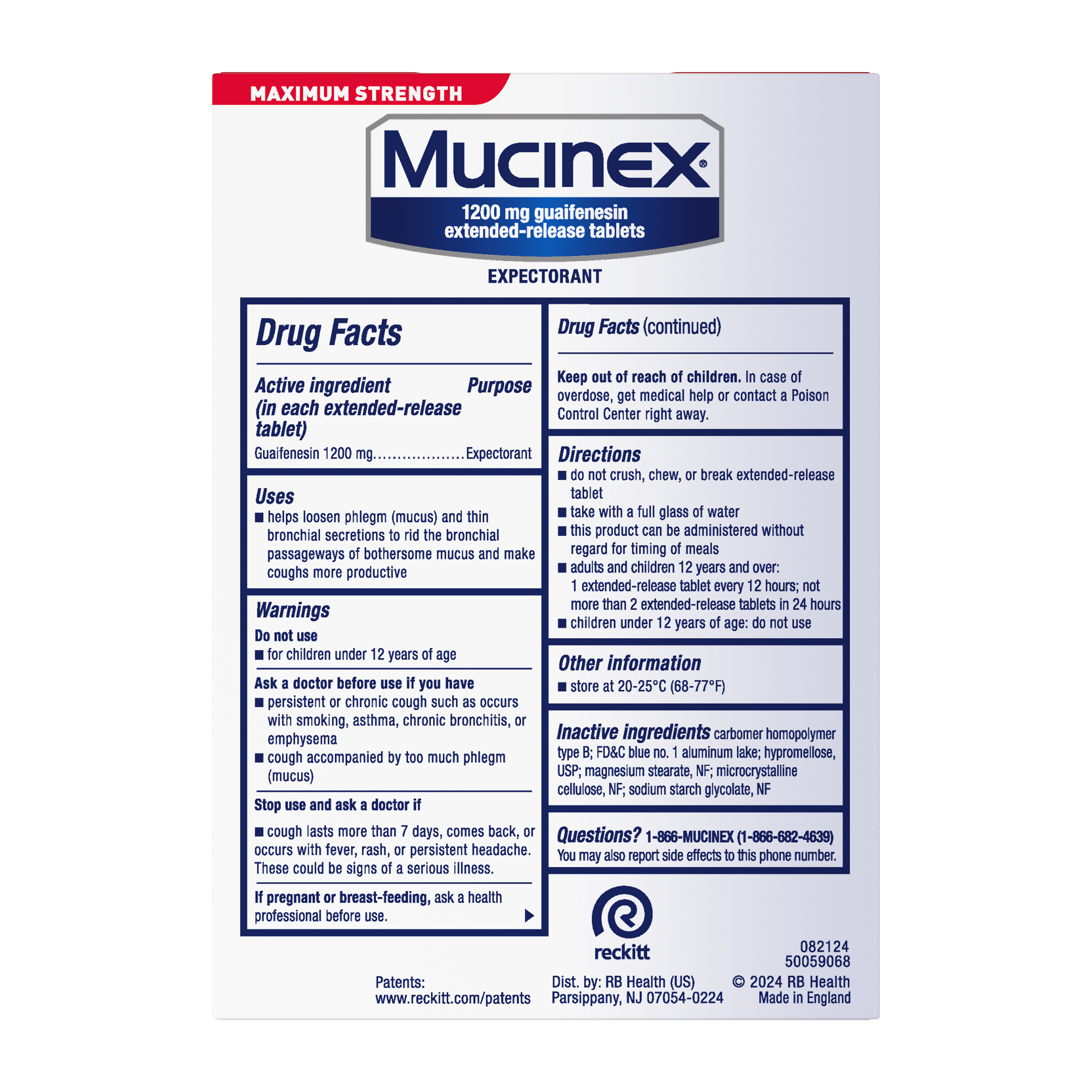 - EXCESS MUCUS RELIEF: Maximum Strength Mucinex 12hr extended-release tablets pack a punch with guaifenesin 1200mg extended release expectorant, providing long-lasting excess mucus relief