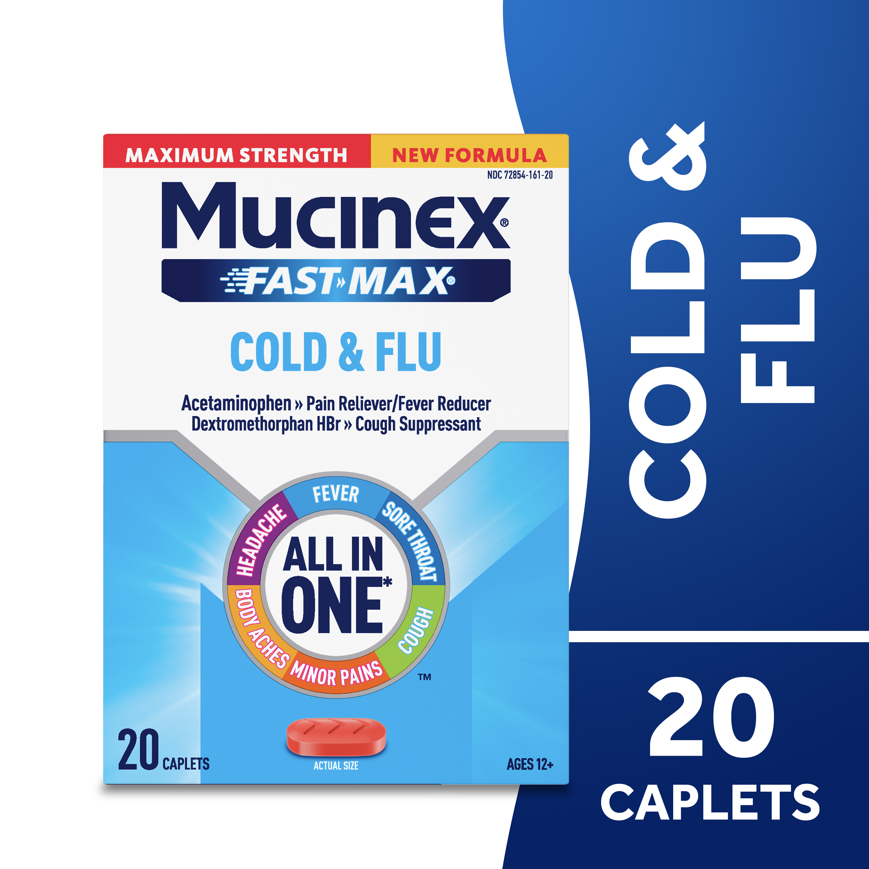 - COLD AND FLU MEDICINE: Mucinex Fast-Max Cold & Flu Caplets provide powerful relief for headache, sore throat, minor pains, fever, cough and body aches