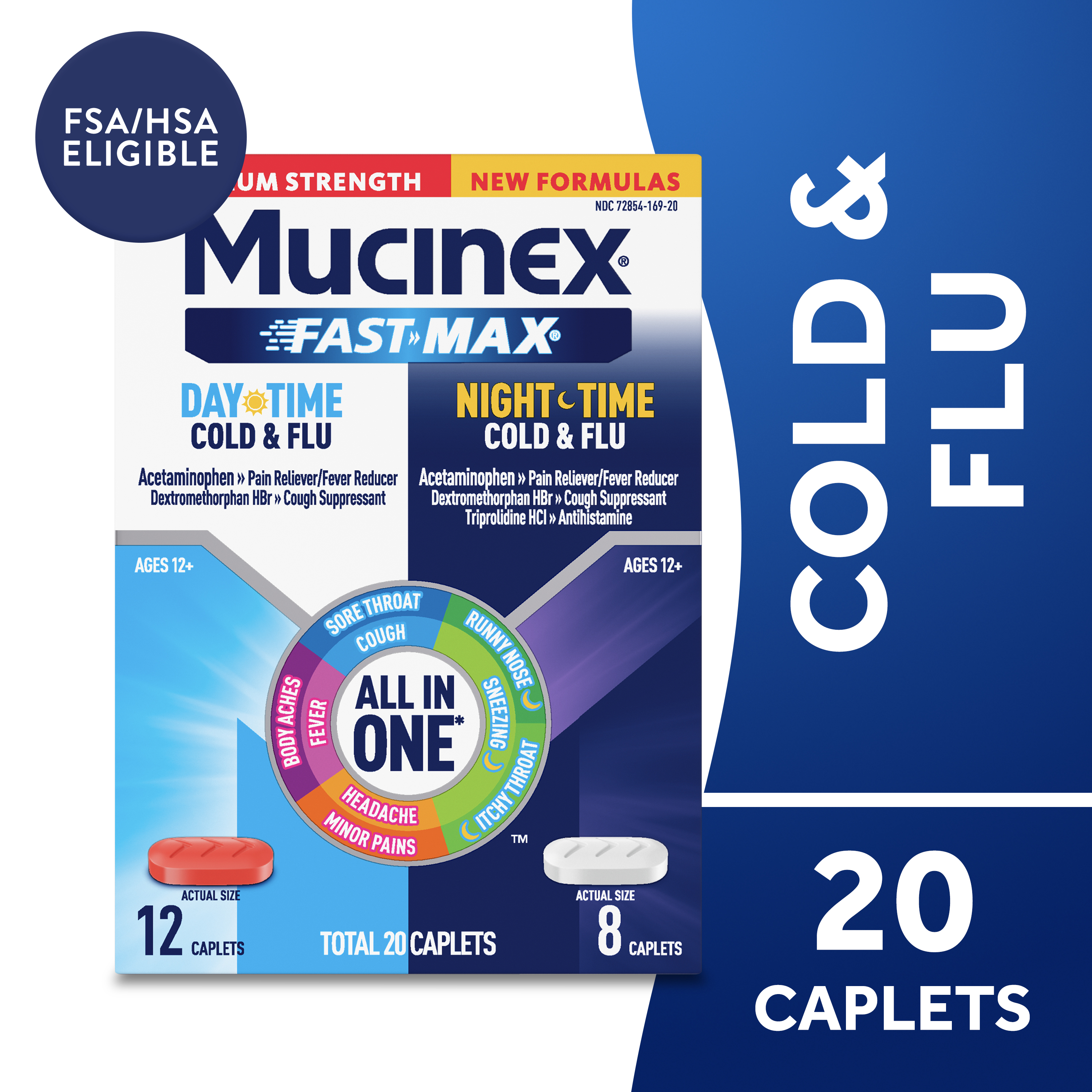 | Amazon Title | Mucinex Fast-Max Maximum Strength Day & Night Cold and Flu Medicine for Adults, Powerful Over-the-Counter Medication for Cold & Flu Symptoms, Fast Release Caplets, 20 count |