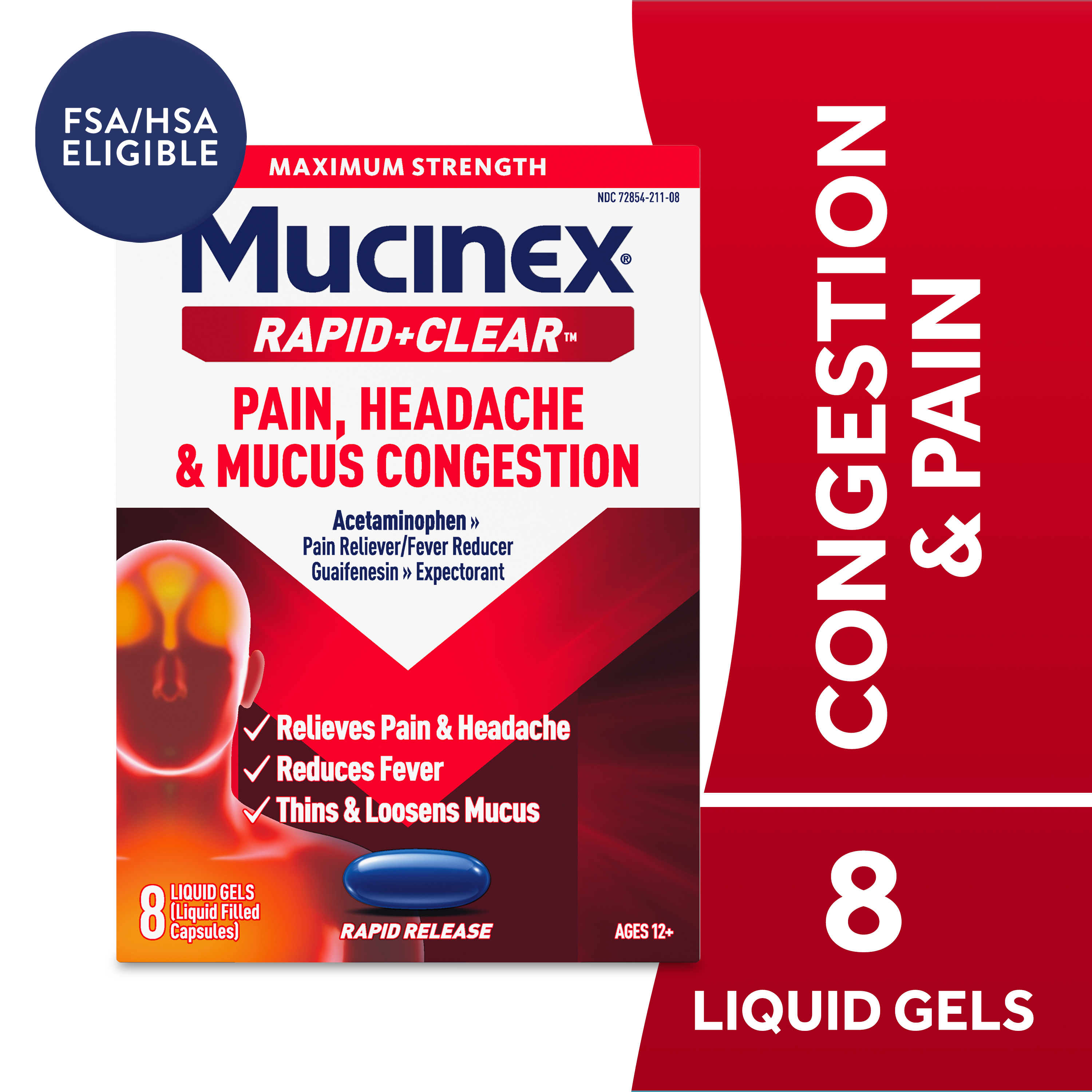MUCINEX® Rapid Clear® Pain, Headache & Mucus Congestion Liquid Gels 24/8 ct.