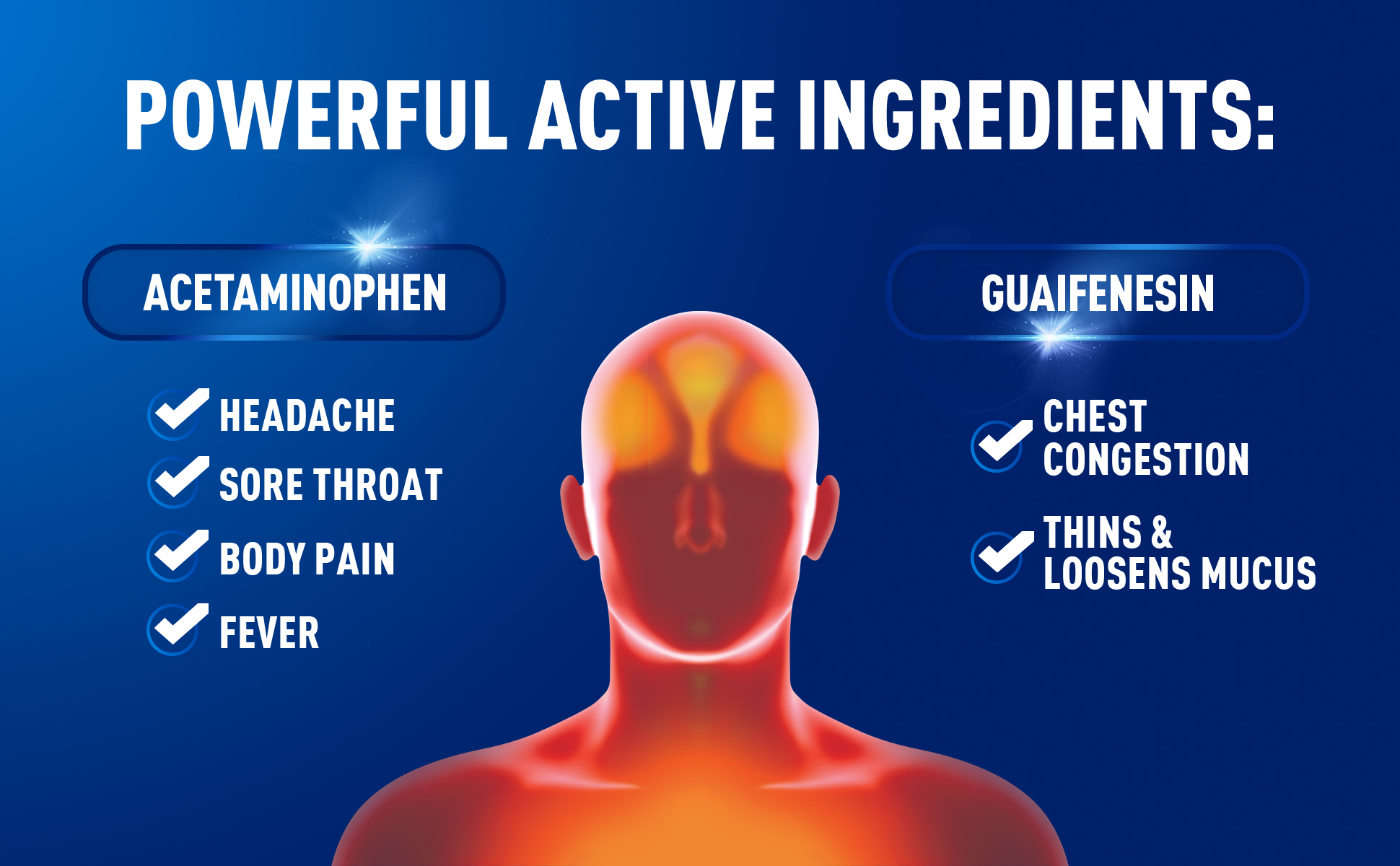- COLD MEDICINE: Mucinex Rapid Clear Pain, Headache, & Mucus Congestion is a trusted cold medicine for adults, offering comprehensive relief from cold and flu symptoms including fever, body pain, sore throat, headache, and excess mucus